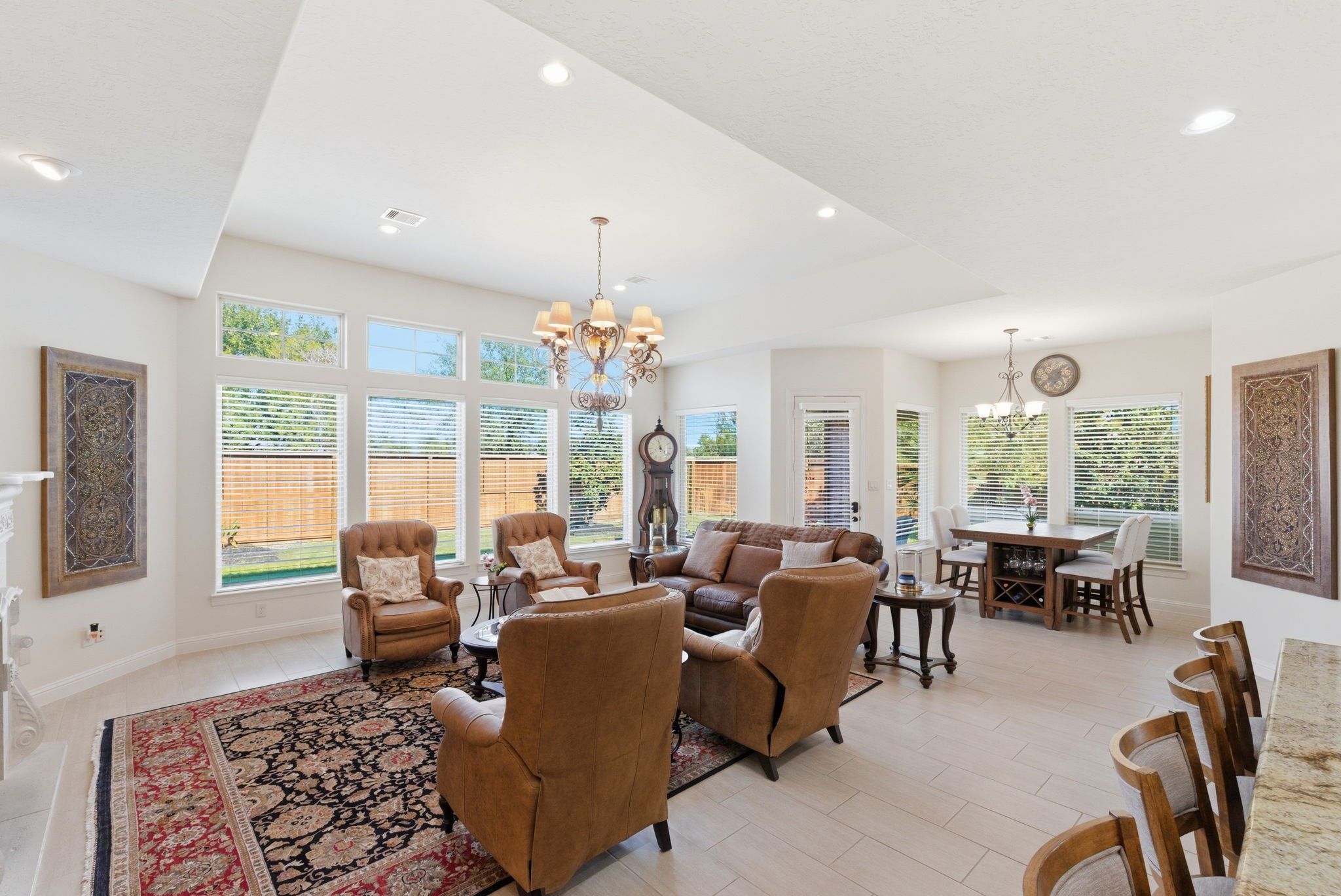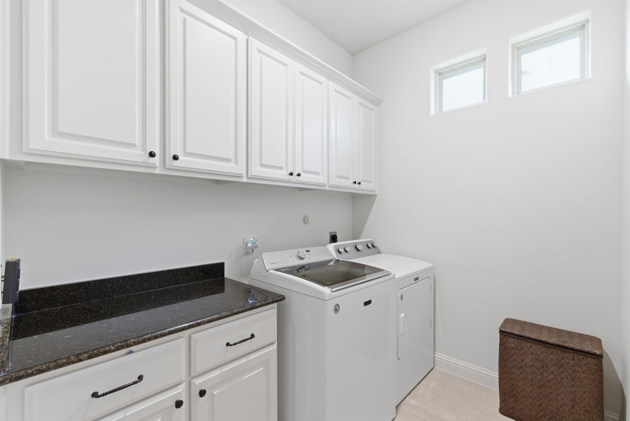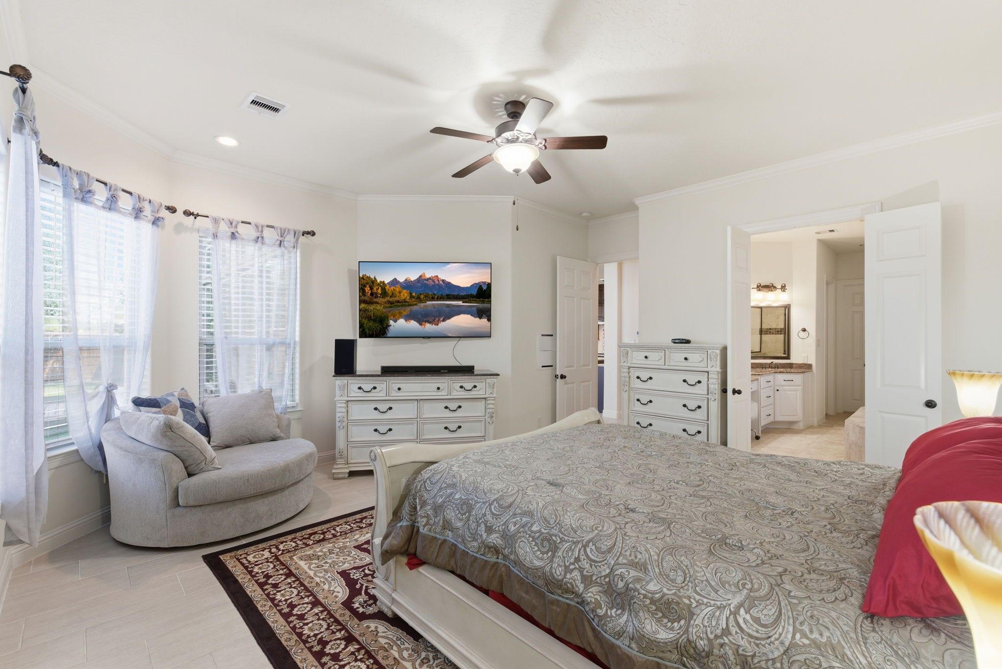 - Breakfast Bar, Double Vanity, Granite Counters, High Ceilings, Kitchen Island, Kitchen/Family Room Combo, Bath in Primary Bedroom, Pantry, Soaking Tub, Separate Shower, Tub Shower, Walk-In Pantry, Window Treatments, Ceiling Fan(s), Loft, Programmable Thermostat
