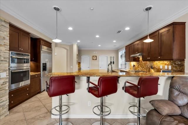 - Built-in Features, Dry Bar, Wired for Sound, Recessed Lighting, Open Floorplan, High Ceilings, Cathedral Ceiling(s), Crown Molding, Butler Pantry, Living Room, Formal Entry, Family Room, Dressing Area, Walk-In Closet(s), Primary Suite, Retreat Room, Main Level Primary, Bedroom on Main Level