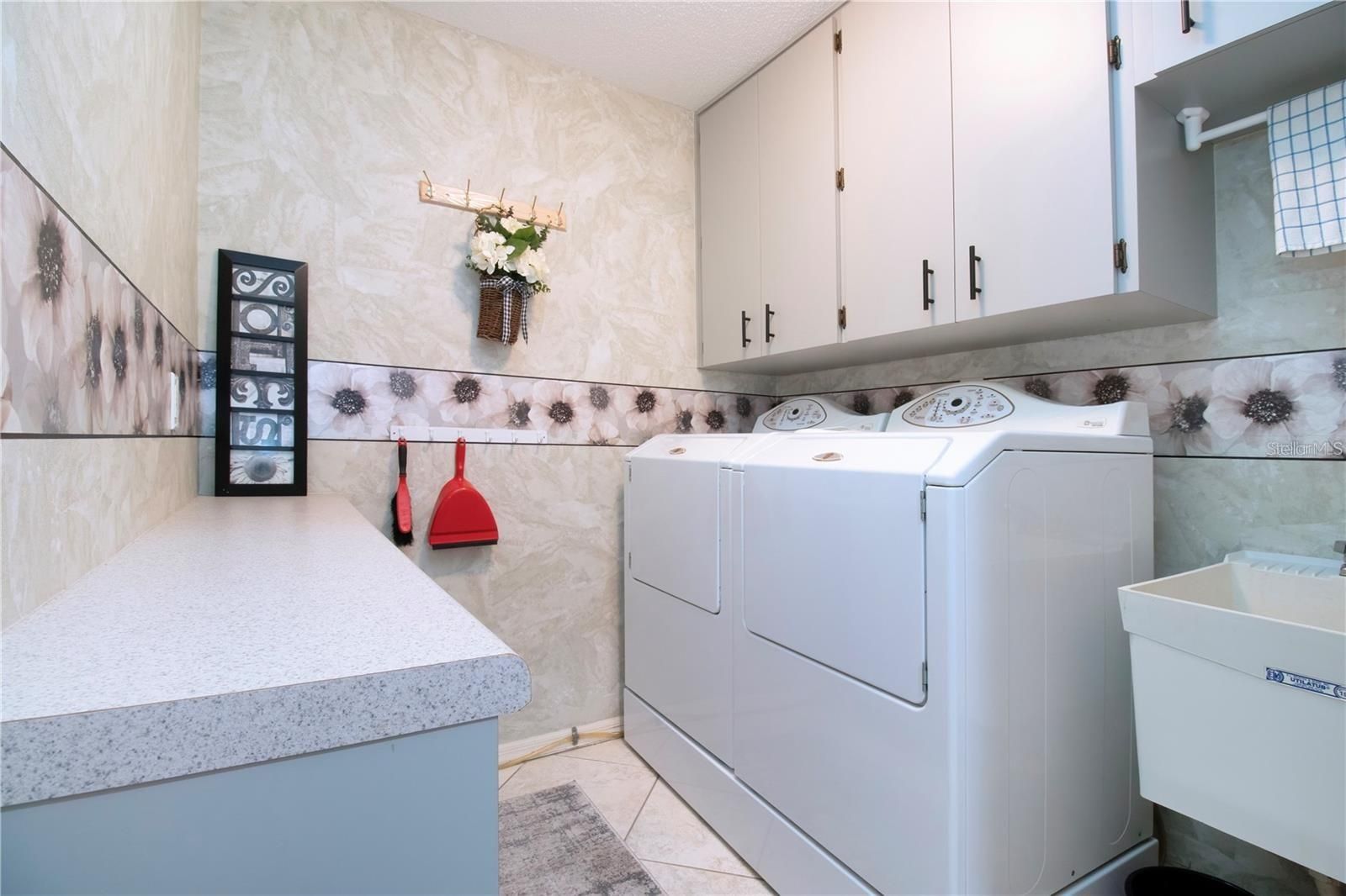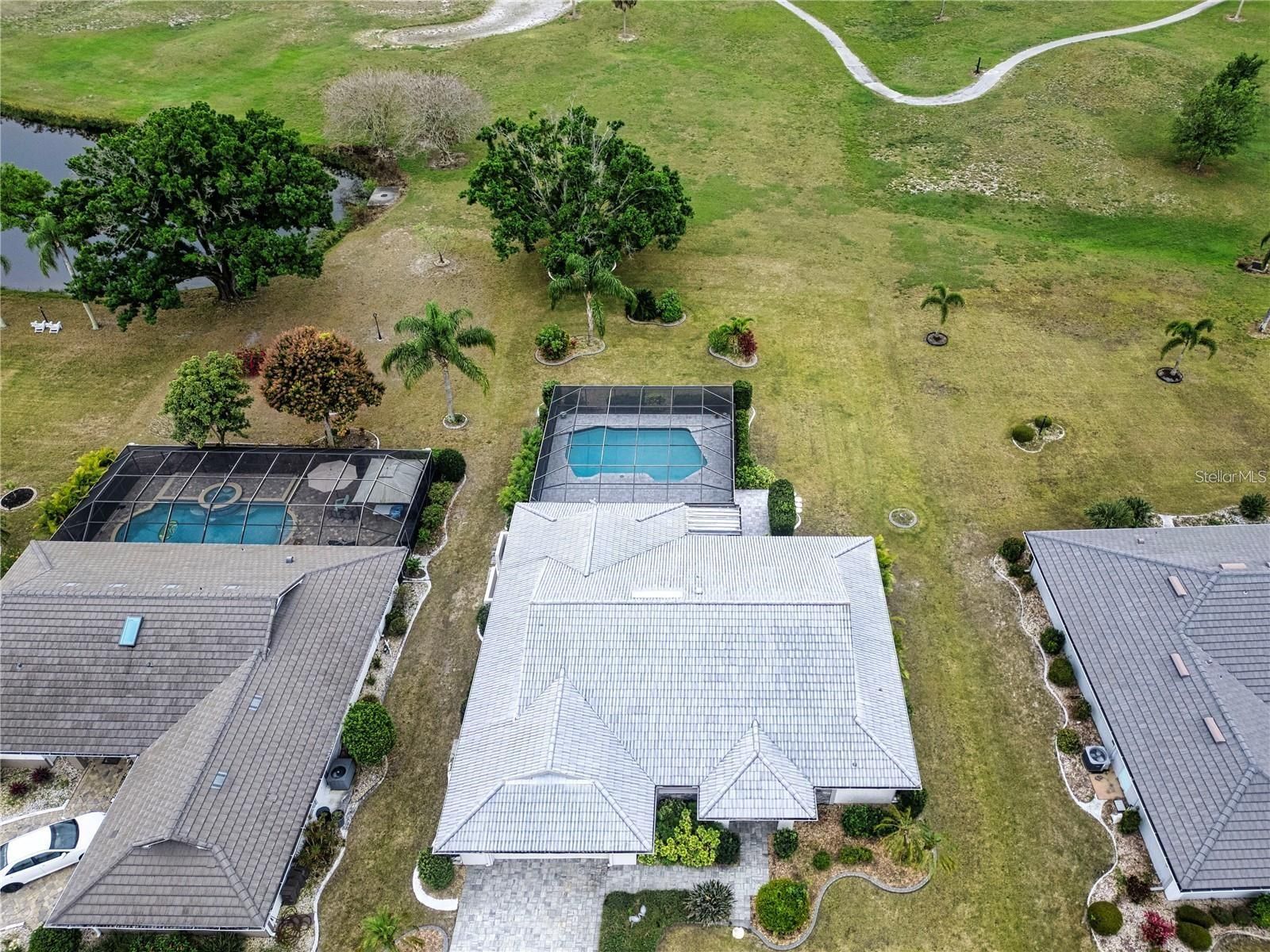 Live the Florida dream in this elegantly designed pool home, offering over 2,500 square feet of thoughtfully curated living space, perfect for entertaining and everyday enjoyment. From the moment you arrive, the home’s inviting curb appeal stands out with a tile roof, paver driveway and walkways, and a welcoming entry framed by mature landscaping and decorative poured concrete borders. This beautifully appointed 3-bedroom, 2-bath residence is ideal for both entertaining and everyday living. Multiple living areas include a formal dining room, living room, sitting area, and a generous family room featuring a wet bar—creating the perfect setting for hosting guests or enjoying quiet evenings at home. The well-designed kitchen serves as the heart of the home, complete with granite countertops, stainless steel appliances, two pantries, ample cabinetry, and an oversized space perfect for casual dining or serving. A charming coffee bar and built-in desk enhance both convenience and character. Numerous recent upgrades add modern style and peace of mind, including Lifeproof luxury flooring (9/22), updated outlets, switches, ceiling fans, and lighting (9/22), fresh interior and exterior paint (10/22), new vinyl blinds and shutters (10/22), new ductwork (11/22), and a new irrigation pump (5/23) drawing water from the nearby lake. The indoor laundry room is conveniently positioned adjacent to the two-car garage and features abundant storage along with a utility sink—ideal for projects and everyday tasks. Outside, your private backyard oasis awaits. The expansive pool area was completely refreshed in December 2022 with new paver decking, resurfaced pool, updated tile, and new screening. Relax and take in peaceful views of the spacious backyard, open green space, and two tranquil ponds. Situated in the desirable Sun City Center 55+ active community, residents enjoy an exceptional array of amenities including indoor and outdoor pools, a fitness center, community hall, library, dining options, arts and crafts, and a wide variety of outdoor activities. Everyday necessities such as shopping, banking, medical offices, and the local hospital are just minutes away—many easily reached by golf cart.