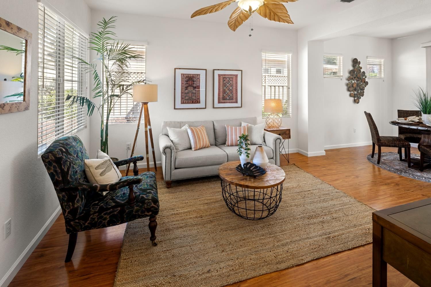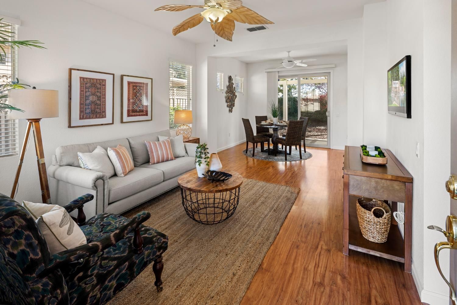 Who knew you could have a Sun City Lincoln Hills home at this amazing price! Let me introduce you to the Meadow Floorplan which is a 1 bedroom 1 bath and den at 900 square feet! This original owner was devoted to carefully maintaining and upgrading this Del Webb floorplan. The kitchen looks out onto the most beautiful backyard and the large picture window washes beautiful natural light onto the workspace. The kitchen also includes tasteful stainless steel refrigerator, microwave and range. Home is so easy to clean with mostly solid surface flooring sans the main bedroom. Jack and Jill bathroom and an extra flex space for overnight guests or a den/office/sewing room! Newish Heating Ventilation and Air system and a tankless water heater. You can eat off the floor of this amazing garage with epoxy surface on the flooring and lots of cabinetry! Also, don't miss the Cherry finish built-in closet system off the main bedroom! This is the lowest priced detached home in Sun City Lincoln Hills! Don't miss this chance to Live the Dream in Sun City! Complimentary tours available!