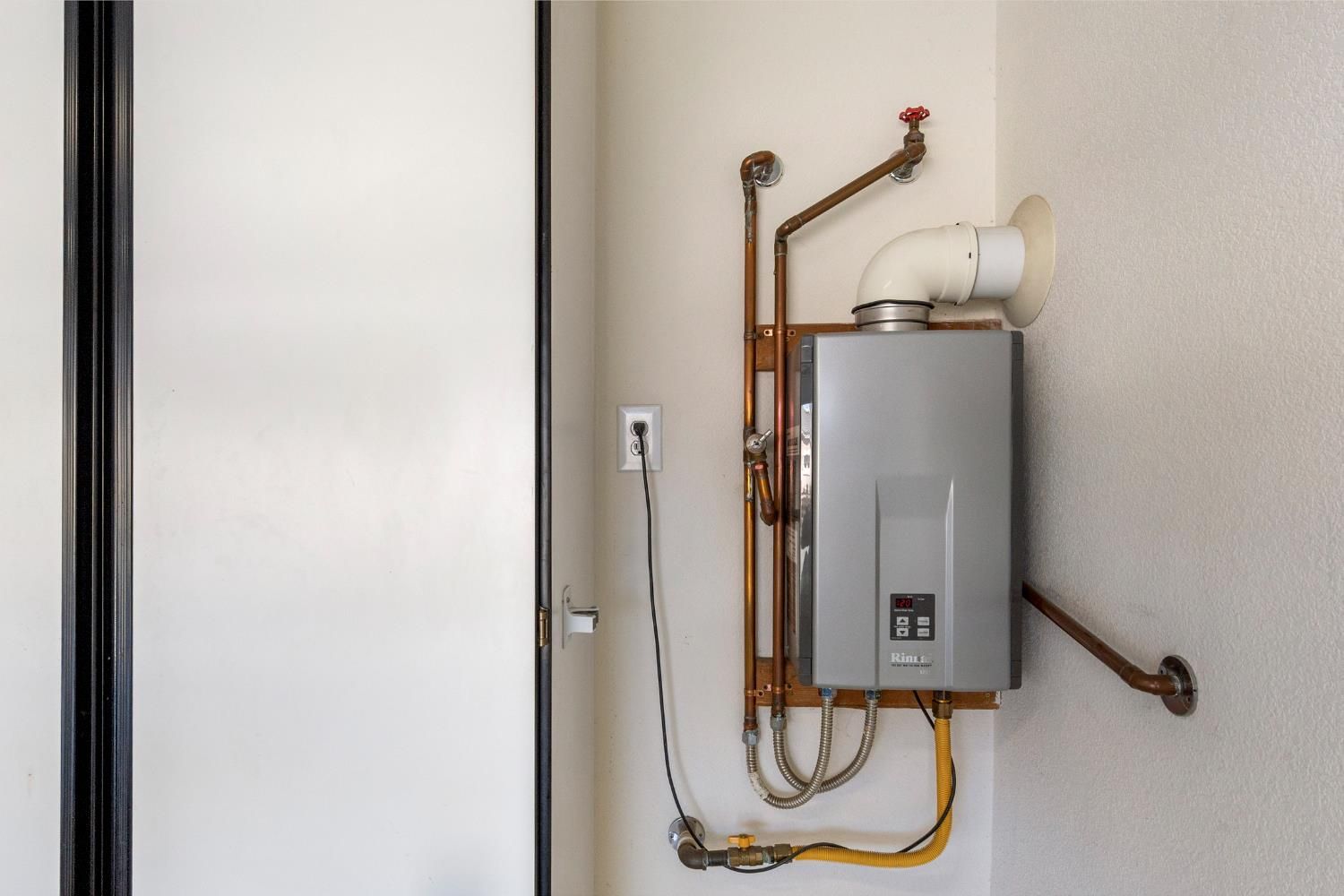 - Free-Standing Gas Range, Free-Standing Refrigerator, Range Hood, Ice Maker, Dishwasher, Microwave, Tankless Water Heater