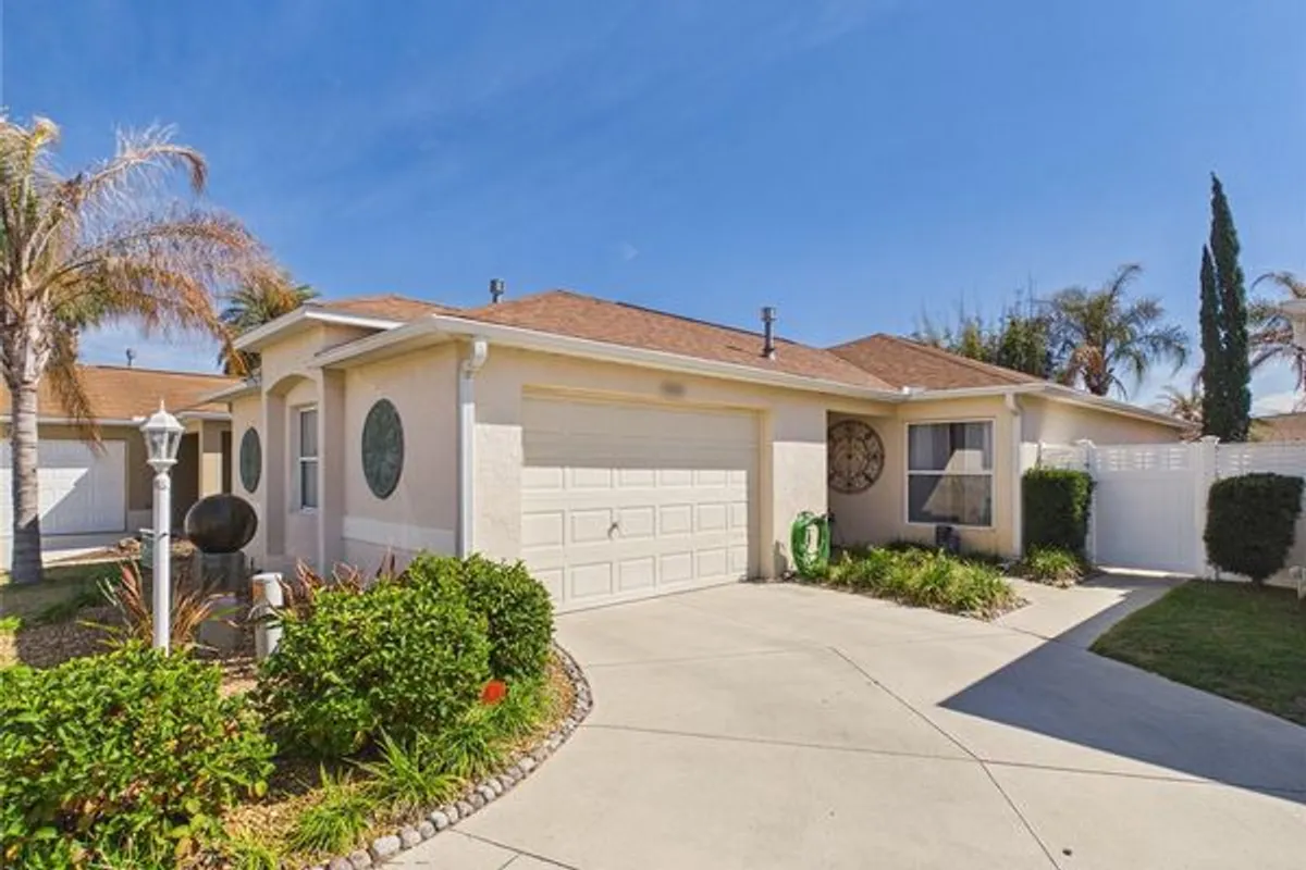 The Woodlawn Courtyard model is beautifully designer-finished and move-in ready, offering stylish upgrades and exceptional comfort throughout. Both bathrooms have been completely renovated with brand-new showers, including a stunning primary suite bath and an updated secondary bath, creating spa-like spaces you’ll enjoy every day. The spacious primary suite also features a large walk-in closet, while the second bedroom feels like its own private suite—perfect for guests. New contemporary lighting enhances the home’s modern appeal, and with No Bond and 5 year old roof, you’ll enjoy added financial peace of mind. Step outside to a spacious backyard and side area complete with a covered sitting space, ideal for relaxing or entertaining. Available for immediate closing, this home is ready for you to start your next chapter right away. Ideally located just off Canal Street with easy access to Sumter Landing, this villa is also conveniently close to Bacall Pool, championship golf, and multiple nearby golf courses, making it the perfect blend of style, comfort, and prime location.