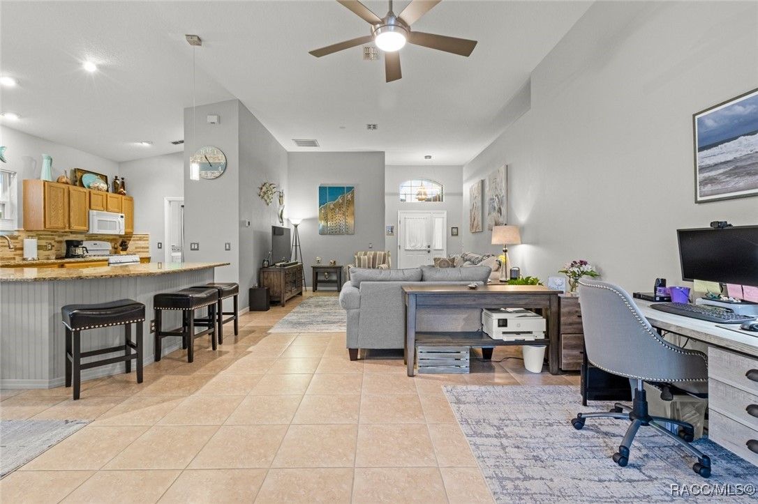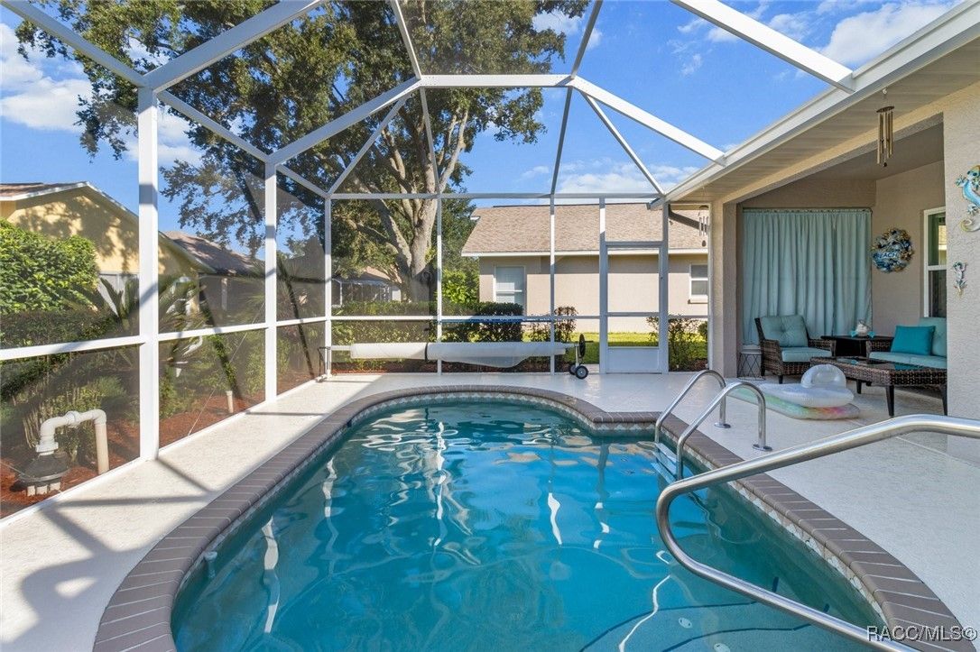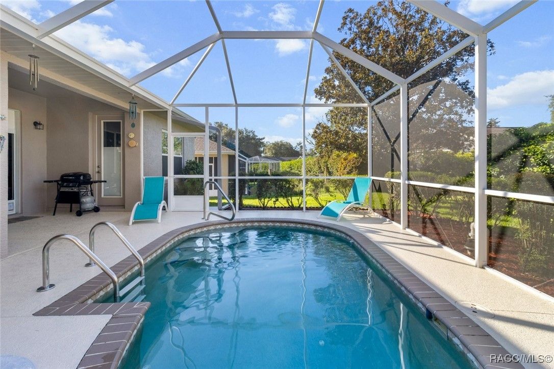 Charming contemporary Villa in Citrus Hills. Welcome to your turnkey retreat in Brentwood Villas at Citrus Hills, a highly sought-after community in Lecanto, Florida. This meticulously maintained one-story home, built in 2004, offers seamless indoor-outdoor living and an enviable maintenance-free lifestyle. 3 bedrooms, 2 full bathrooms conveniently arranged in a light-filled open floor plan. 1,729 square feet of living space with stylish tile floors and neutral finishes throughout. A modern kitchen equipped with granite counter tops, storage, gas cooktop oven, refrigerator, and a large center breakfast bar is well-suited for entertaining. This home boast of a screen-enclosed inground pool with heated solar cover, designed for relaxing or hosting summer evenings with privacy and ease. Many updates including roof, windows, hvac, landscaping, and paint. This villa offers a maintenance-free lifestyle for full-time living, winter residence, or travelers. Whether you are downsizing, investing in a winer retreat, or starting a new chapter, this home delivers effortless living in a peaceful, amenity-rich setting.
