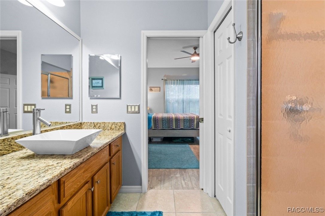 - High Ceilings, Main Level Primary, Primary Suite, Open Floorplan, Pantry, Stone Counters, Tub Shower, Vaulted Ceiling(s), Walk-In Closet(s), Window Treatments, First Floor Entry, Sliding Glass Door(s)