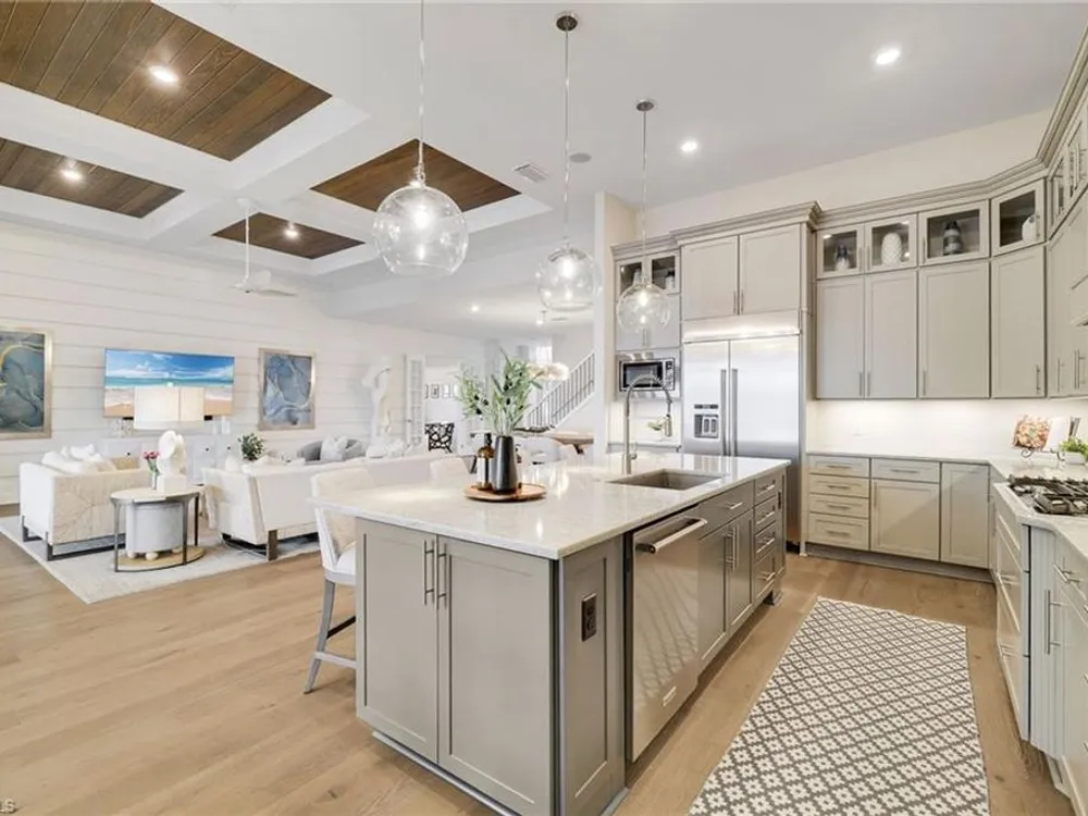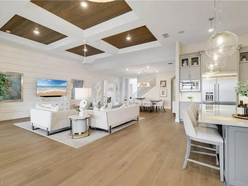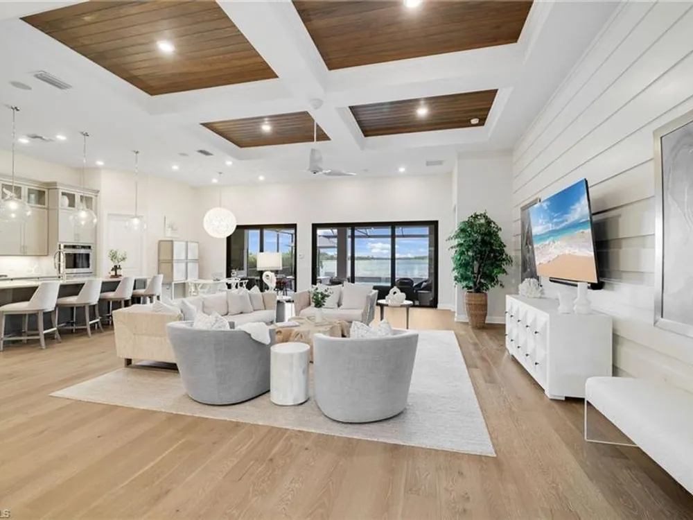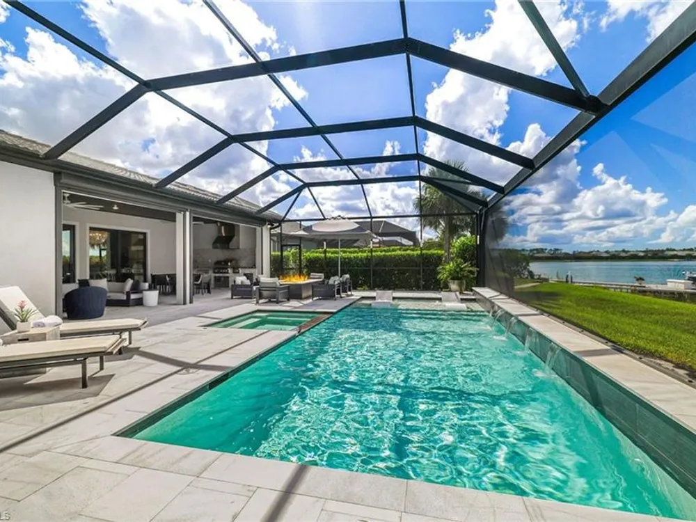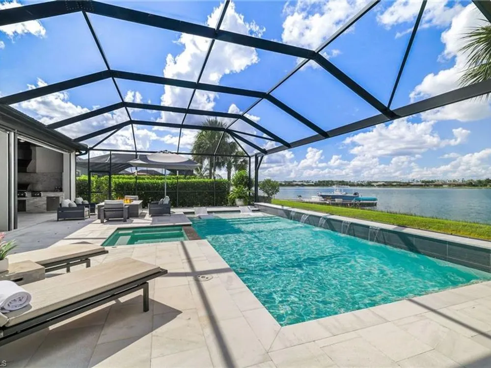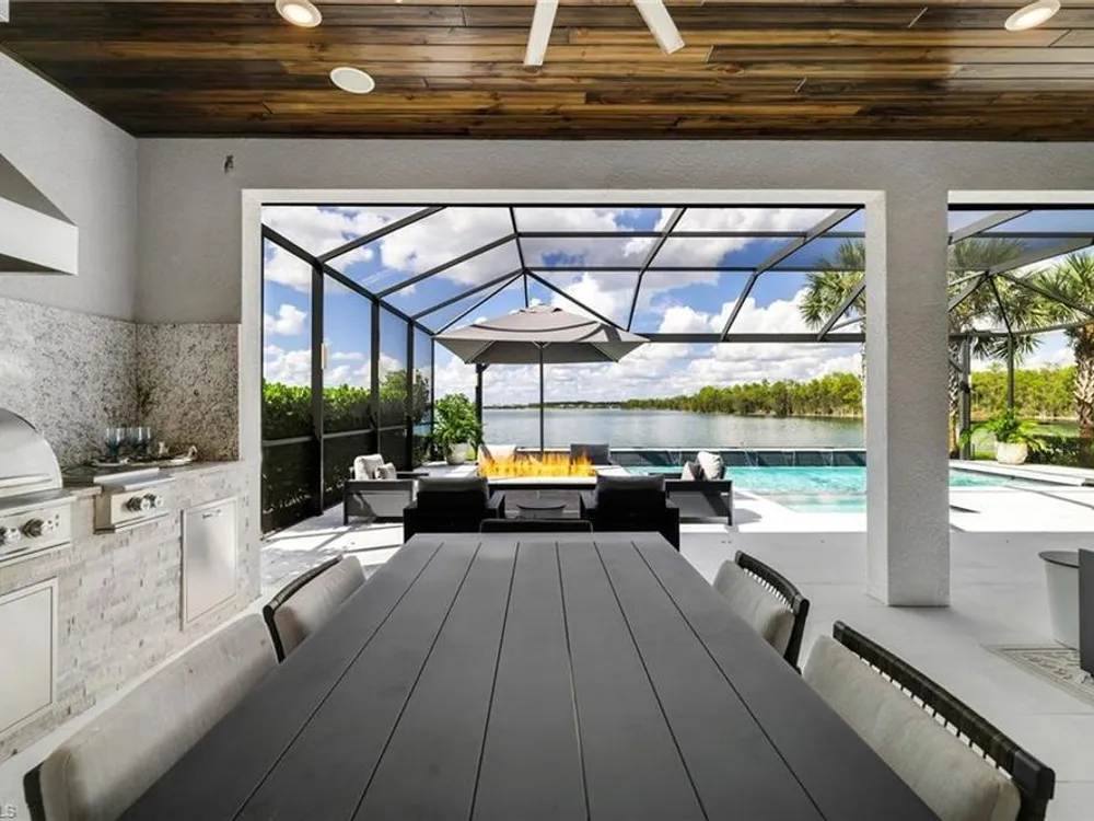 This stunning WildBlue Property with 3,890 sq. ft!! Home offers luxury living inside and out, 4 bedrooms, 4 bath, den/game room plus separate office, custom chef's kitchen featuring large island, double ovens, a built-in steamer, wine and beverage refrigerator and walk-in pantry. The open design flows seamlessly to spacious living area with hardwood floors, a dedicated office, oversized bedrooms and a bonus game room with wet bar. Outside, enjoy resort-style amenities including a sparkling saltwater pool and spa, full outdoor kitchen, and whole-home generator for peace of mind. The garage is fully finished with custom cabinets and epoxy flooring. Perfectly situated on a quiet cul-de-sac overlooking a large boating lake, this property is part of a private gated community with access to a member only-club, marinas, water skiing, boating, pickleball, tennis, fishing, private dinning and outside resort pool and bar, you can add your own private boat dock to this lot.