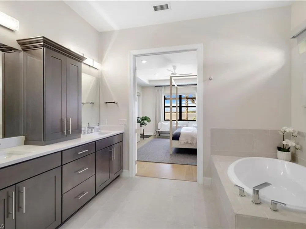- Cable TV Hookup, Coffered Ceiling(s), Entrance Foyer, French Door(s)/Atrium Door(s), Internet Available, Pantry, Pull Down Attic Stairs, Smoke Detector, Wired for Sound, Walk-In Closet(s), Den, Family Room, Great Room, Guest Room, Home Office, Laundry Facility, Media Room, Main Level Primary, Split Bedrooms, Breakfast Bar, Breakfast Room, Family/Dining Room, Gas Appliance Hookup, Kitchen Island, Walk-In Pantry, Dual Sinks, Bathtub, Separate Shower, Impact Glass