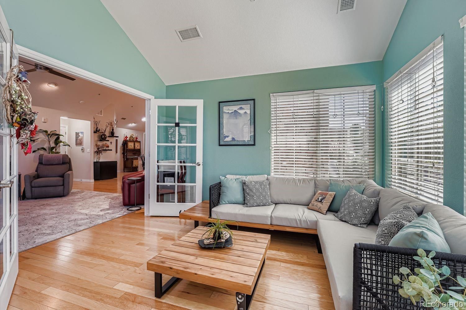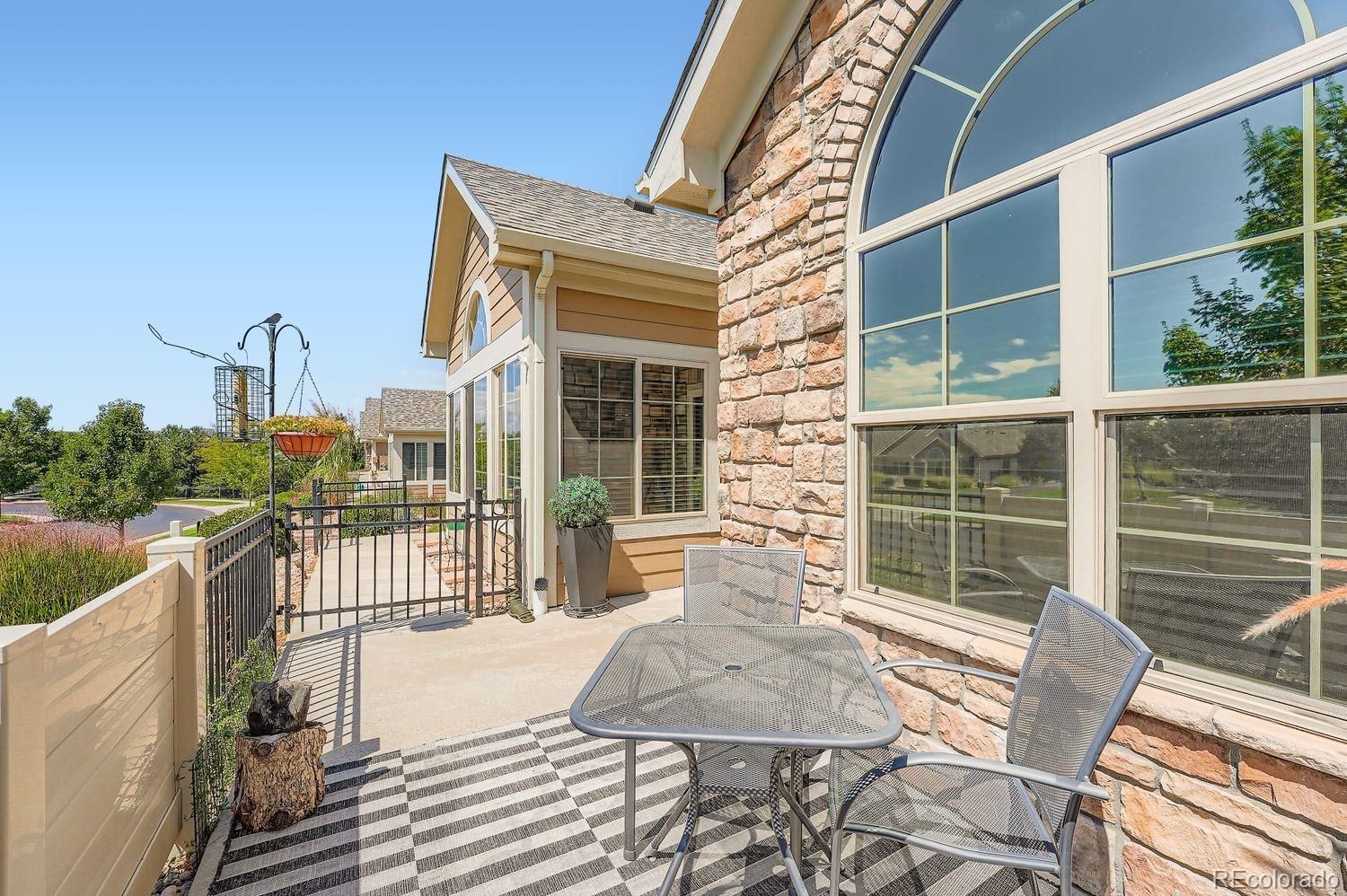 Welcome to this beautifully maintained ranch-style patio home with 2-beds and 2-baths in a desirable Aurora community. Featuring vaulted ceilings, LVP floors, and abundant natural light, this home offers an open and inviting layout perfect for everyday living and entertaining. The updated kitchen boasts granite countertops, stainless steel appliances, and ample cabinet space, opening seamlessly to the dining and living areas. A cozy fireplace anchors the vaulted living room, while the sun-filled bonus room with French doors provides the perfect spot to relax year-round. The spacious primary suite includes a walk-in closet and a primary bath with dual sinks and separate shower. Main bath includes a spa-like soaking tub with jets. Additional bedrooms and a flexible sunroom offer plenty of options for family, guests, or working from home. Enjoy convenience with a large laundry/mudroom, an attached two-car garage, and no-maintenance landscaping. Located close to shopping, dining, parks, and major roadways, this home blends style and practicality in an established neighborhood. Don’t miss your chance to make this move-in-ready Aurora gem yours!