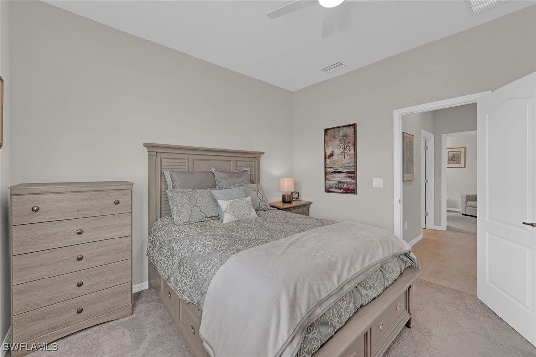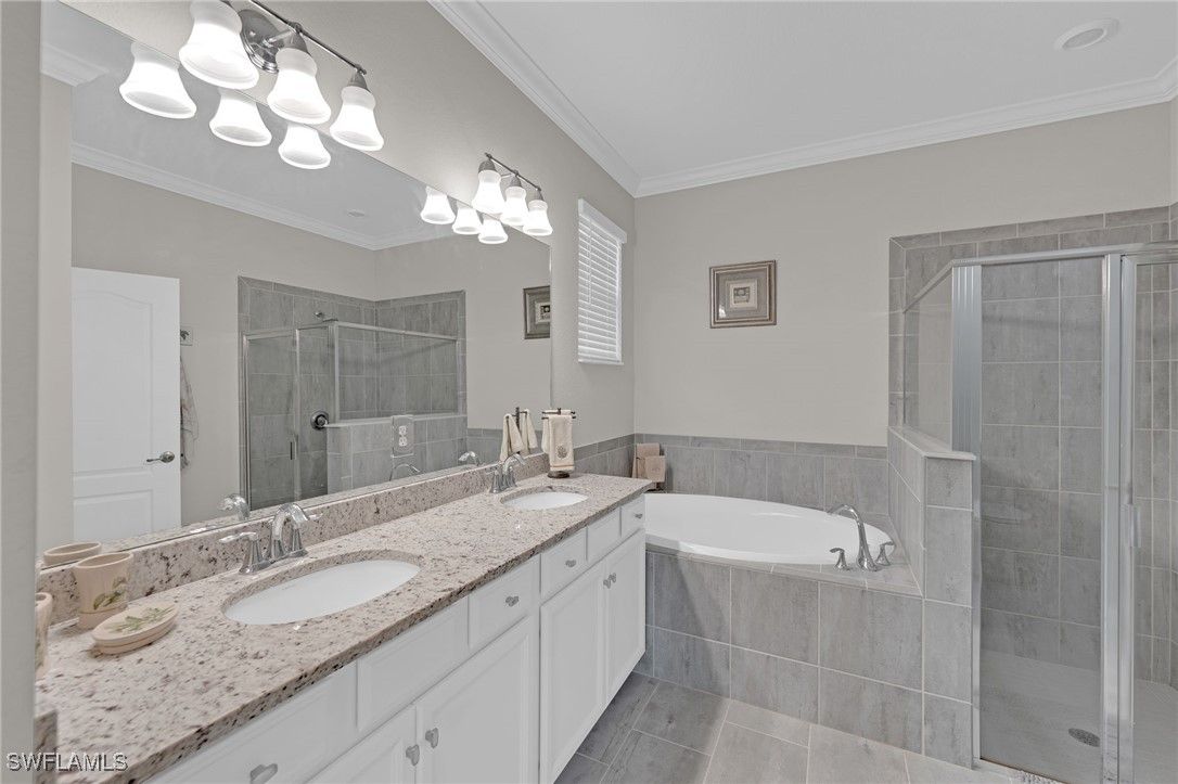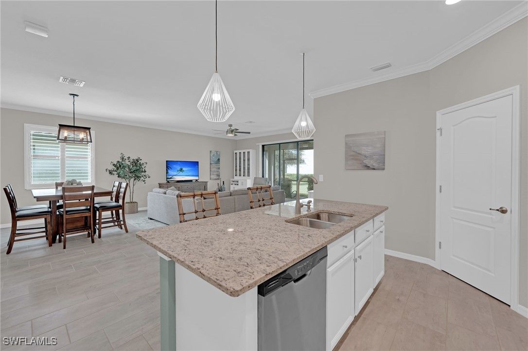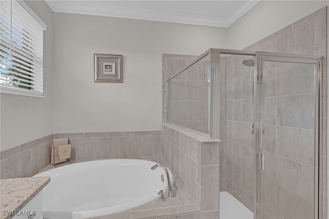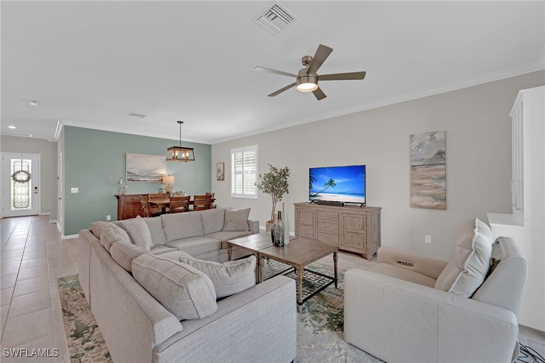 This beautifully maintained “Trevi” model offers 4 spacious bedrooms, 3 bathrooms, and is perfectly situated on a desirable CORNER LOT with a partial LAKE VIEW in the highly sought-after, resort-style community of The Place at Corkscrew. Step inside to find a FRESHLY PAINTED interior with stylish upgrades throughout, including CROWN MOULDING, PLANTATION SHUTTERS on every window, and LUXURY VINYL PLANK FLOORING in the primary bedroom. The open-concept living area is complemented by ceiling fans throughout, creating a comfortable and inviting atmosphere. The modern kitchen features WHITE CABINETS, a beautiful GLASS TILE BACKSPLASH, and WALK IN PANTRY, and plenty of space for entertaining. The primary suite serves as a serene retreat, featuring dual sinks, a SOAKING TUB, a separate shower, and TWO generously sized WALK-IN CLOSETS for ample storage. Additional upgrades include a GLASS ENTRY DOOR, whole-home SECURITY SYSTEM, RING DOORBELL, KEYLESS Eufy front entry, and BRAND NEW SAMSUNG WASHER & DRYER. For peace of mind, the home is equipped with a GENERATOR HOOK-UP and comes with a Westinghouse 9500DF dual-fuel GENERATOR that can run on gas or propane. The garage features durable EPOXY flooring, offering both functionality and style. Outdoor living is effortless with shades on the lanai and slider, plus LANAI FURNITURE IS INCLUDED (with the exception of the painted table). Living in The Place at Corkscrew means every day feels like a vacation. Enjoy world-class amenities including a lagoon-style pool with waterfalls, 100-foot waterslide, splash pad, state-of-the-art fitness center, café, and a full-service restaurant and bar offering both indoor and outdoor seating. The community also features tennis, pickleball, bocce, basketball, and sand volleyball courts, plus a playground, dog park, and plenty of green space for outdoor enjoyment. Located just 1 mile from a brand-new Publix Plaza, 10 minutes from shopping and dining at Miromar Outlets and Gulf Coast Town Center, 15 minutes from RSW Airport, and only 30–40 minutes to the beautiful Gulf Coast beaches, this home offers the perfect blend of resort-style living and everyday convenience. Experience the best of Southwest Florida living at The Place at Corkscrew—where luxury, comfort, and convenience come together beautifully.