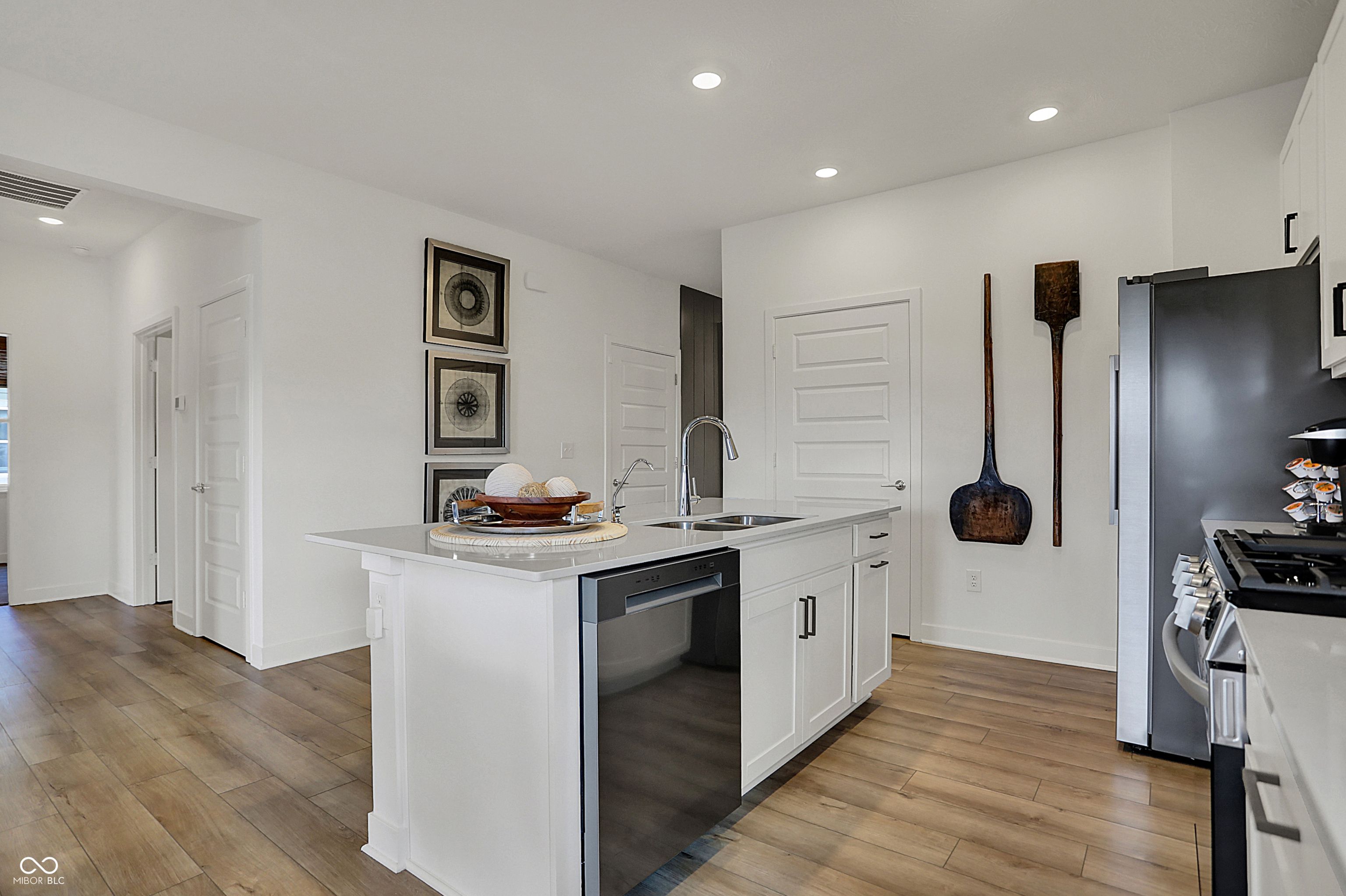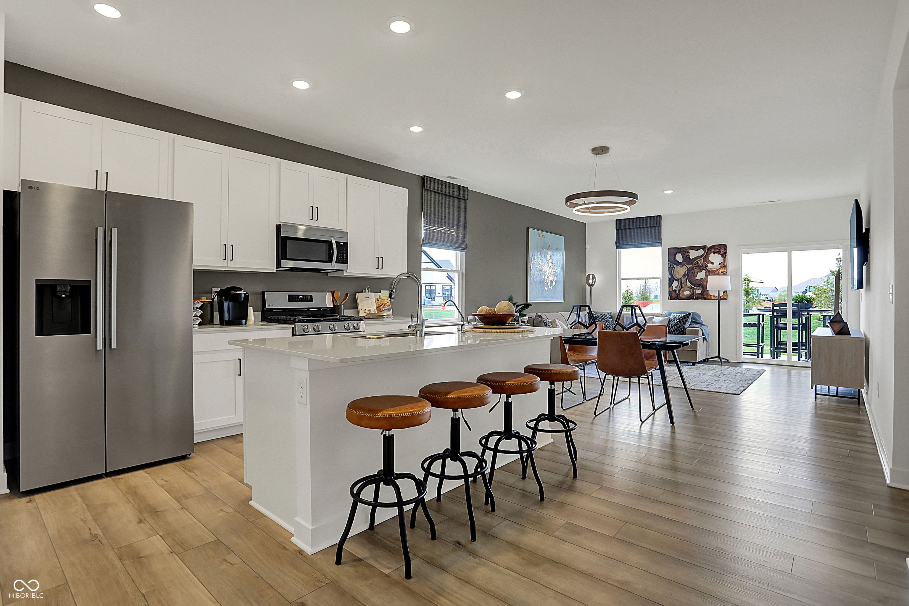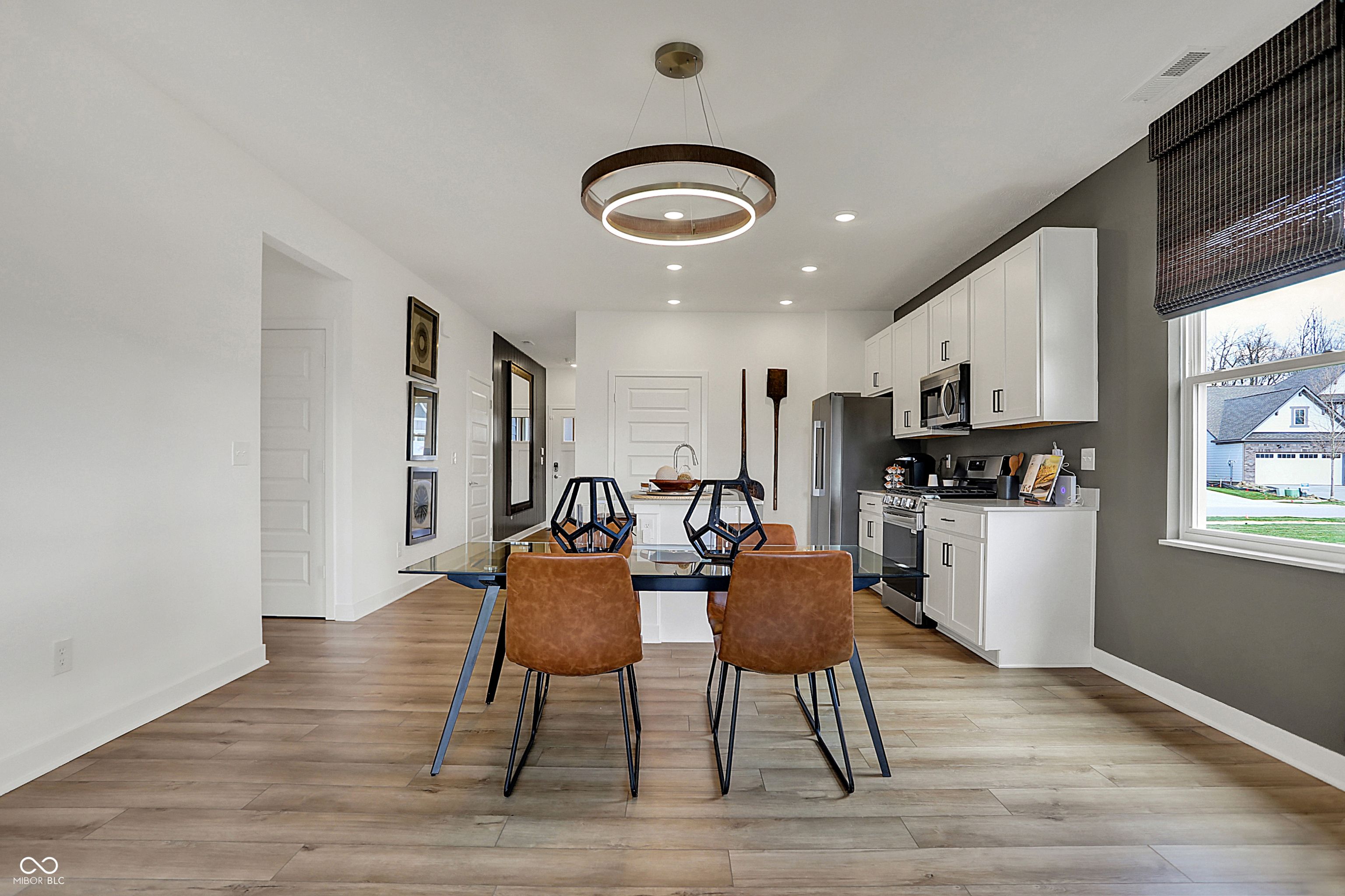 Designed for effortless living and everyday elegance, this Briarwood former model home in Osborne Trails showcases a modern take on low-maintenance 55+ living. The open-concept layout connects the kitchen, dining nook, and great room, creating a warm, welcoming flow ideal for both entertaining and relaxing at home. Designer lighting, accent paint, and detailed trim work throughout bring a refined touch to every space. A private flex room retreat offers the versatility to serve as a sitting room or study, enhanced with floating wood shelves and accent wall detailing that make it both stylish and functional. The primary suite impresses with vertical board-and-batten trim, a statement chandelier, and designer finishes that feel truly custom, while the guest bedroom adds charm with its own vertical shiplap accent wall. Outdoors, a covered rear patio extends the living space and offers the perfect spot to unwind. Premium landscaping, a full irrigation system, and a three-car garage add ease and everyday convenience, while the home's model-level craftsmanship ensures every detail shines. Life at Osborne Trails means access to resort-style amenities, including the 9,000+ sq. ft. Retreat Clubhouse with a bar, game room, library, and fitness center-plus pickleball courts, walking trails, a resort-style pool, and outdoor kitchens. With a full calendar of resident events led by an on-site lifestyle director, every day offers new ways to stay active, inspired, and connected.