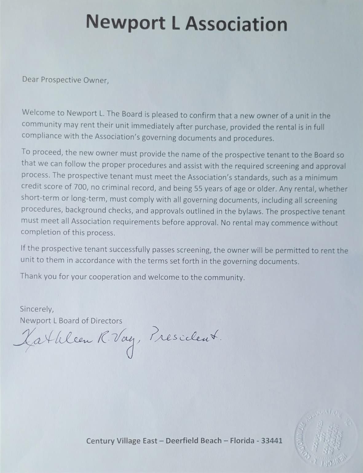 PLEASE SEE ATTACHED SIGNED BY THE BOARD, OK TO RENT IMMEDIATELY. First-floor condo located in the heart of Newport, just steps from the pool & tennis courts. Enjoy the convenience of a ground-level entry, with a spacious and bright interior. One of the few associations that allows FIRST FLOOR OUTSIDE BRICK PATIOS,—perfect for extending your outdoor living space, WIDE OPEN GARDEN VIEW. The unit features ample closet space, updated bathrooms, tile flooring, and NO popcorn ceilings. Freshly painted with modern light fixtures. Ideally situated near the Powerline entry and shopping plaza, and just under 4 miles from the beach. Located in a vibrant 55+ lifestyle community offering an impressive range of free amenities. Vacant and easy to show—don't miss this opportunity! (unfurnished)