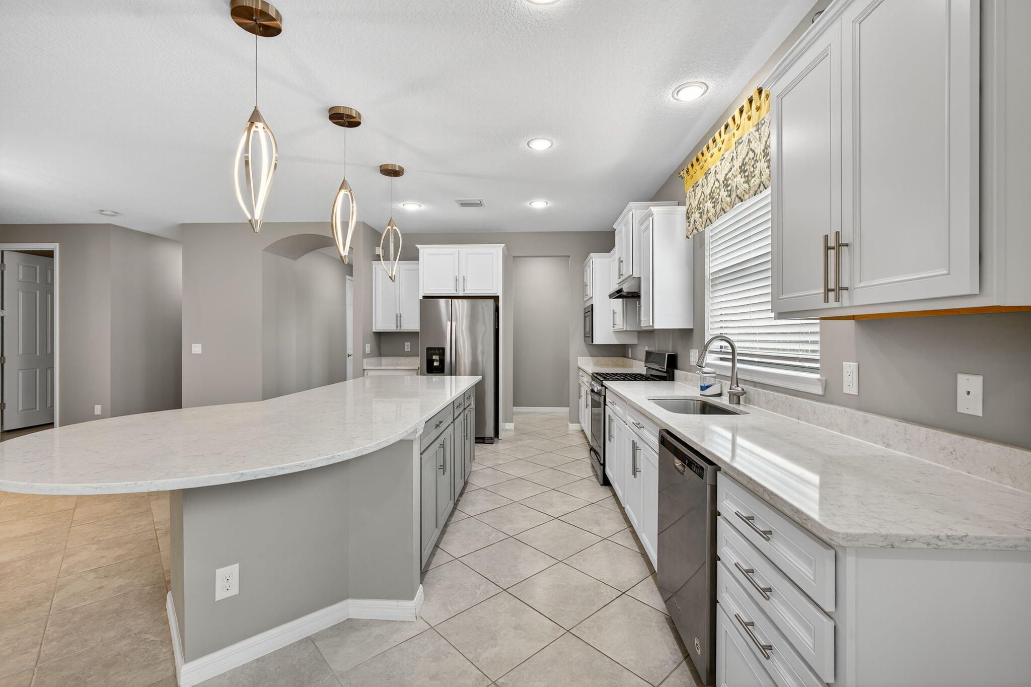 - Built-in Shelving, Closet Cabinetry, Kitchen Island, Split Bedrooms, Walk-In Closet(s), Home Office, Breakfast Area, Florida/Dining Room, Dual Sinks, Separate Shower