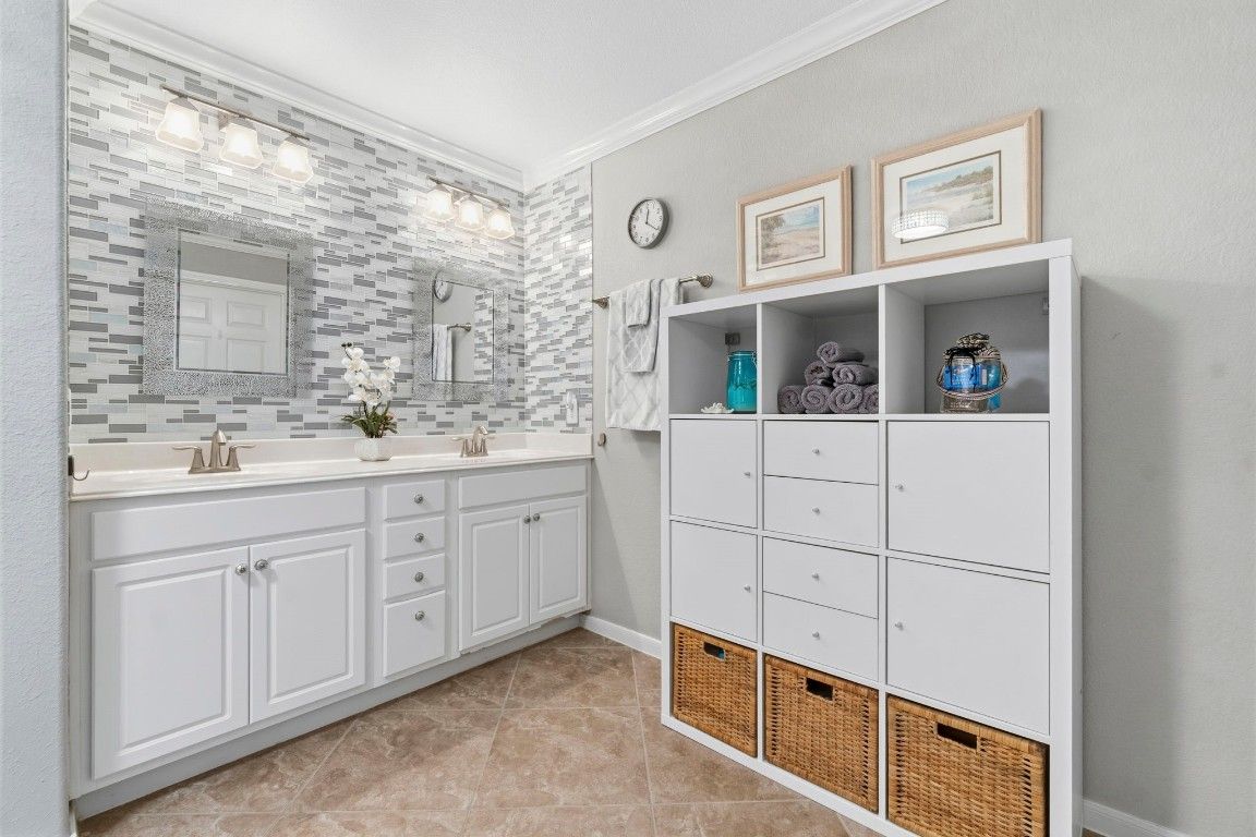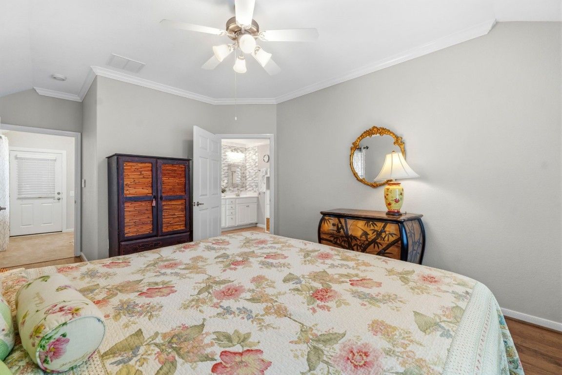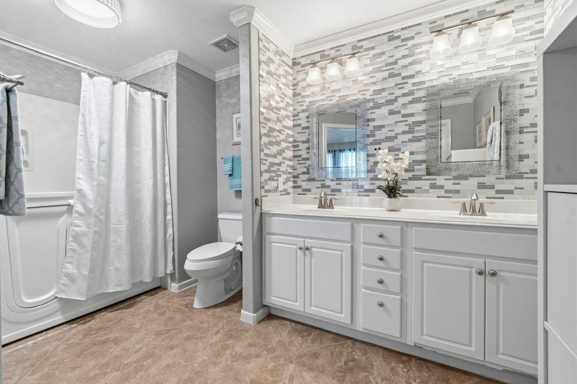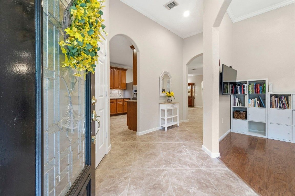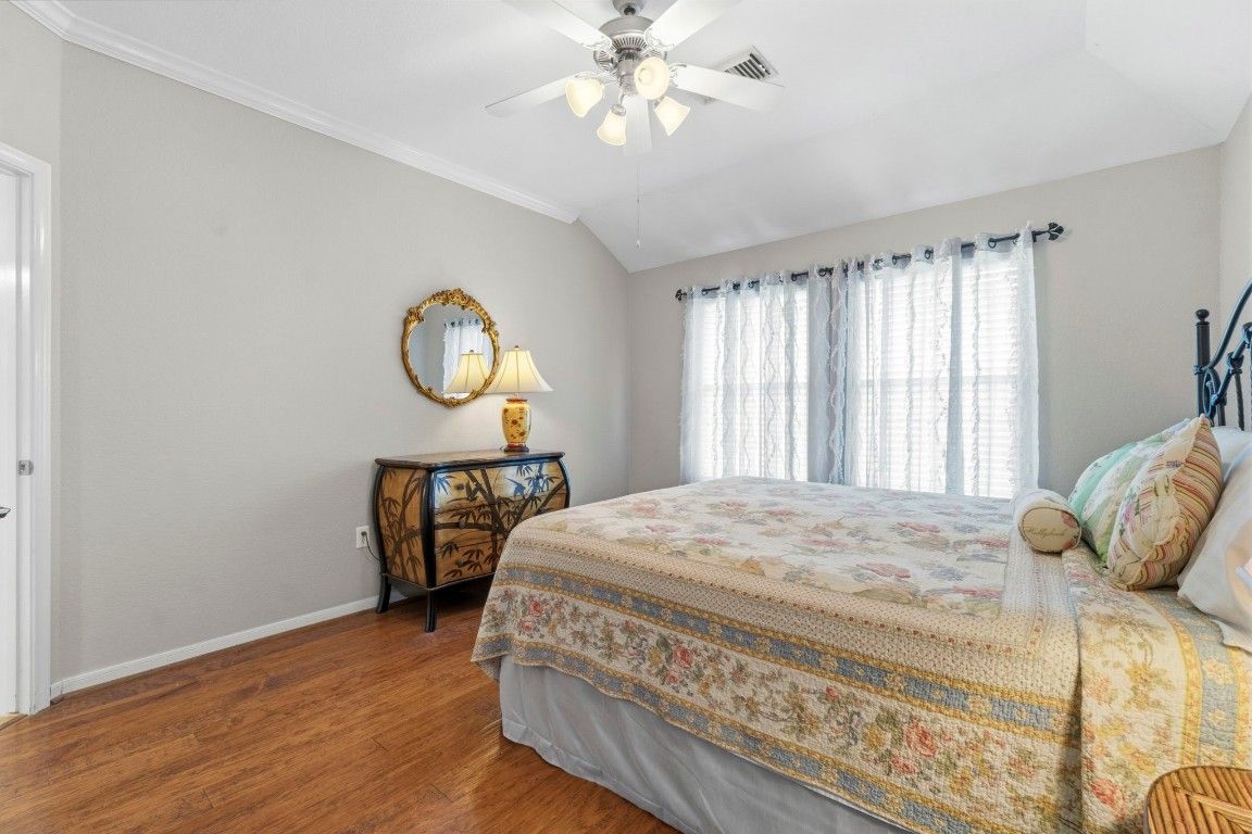Beautiful Village Builders Townhome in Gated Windsor Lakes 55+ Community. Welcome to this sought-after Chesapeake floor plan, perfectly situated on a quiet cul-de-sac in the gated Windsor Lakes community. This well-maintained home features hardwood floors, upgraded tile, crown molding, and an open layout ideal for comfortable living. The kitchen shines with granite countertops, upgraded cabinetry, tile backsplash, and a tubular skylight for added natural light. The spacious primary suite has been thoughtfully updated with quartz countertops, custom tile backsplash, new hardware, mirrors, and a walk-in tub with shower. Enjoy your private extended covered patio with glass roof, overlooking a peaceful greenbelt. Residents enjoy access to the impressive 12,000 sq ft Windsor Lodge clubhouse, featuring resort-style amenities, pool, fitness center, walking trails, and a vibrant social calendar. HOA covers, lawn, roof, siding & front door maintenance.