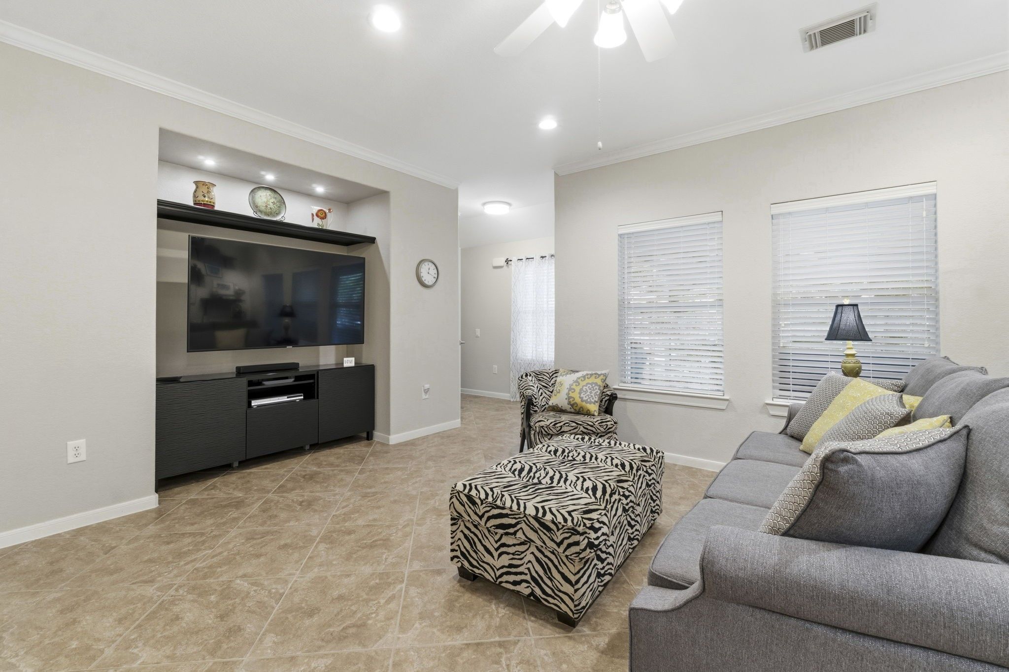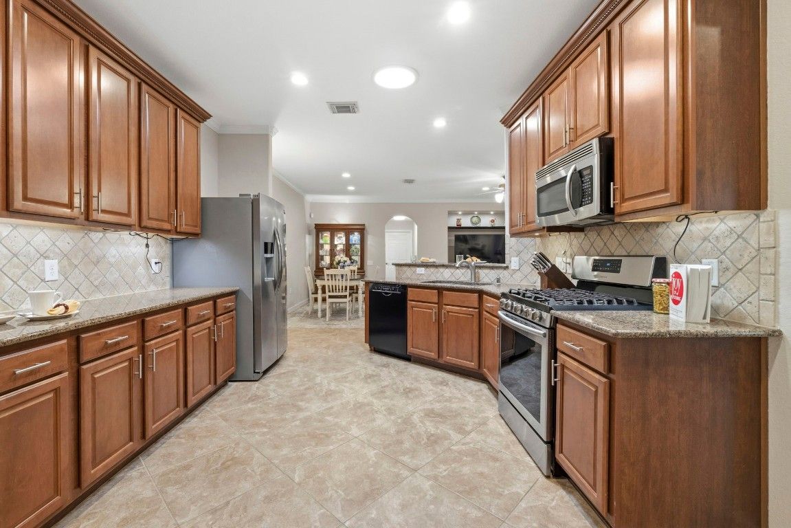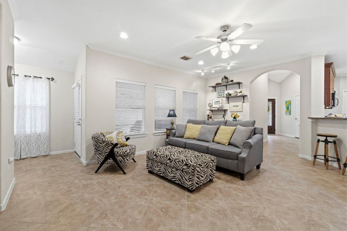 - Crown Molding, Granite Counters, Handicap Access, Kitchen/Family Room Combo, Pantry, Tub Shower, Ceiling Fan(s), Programmable Thermostat