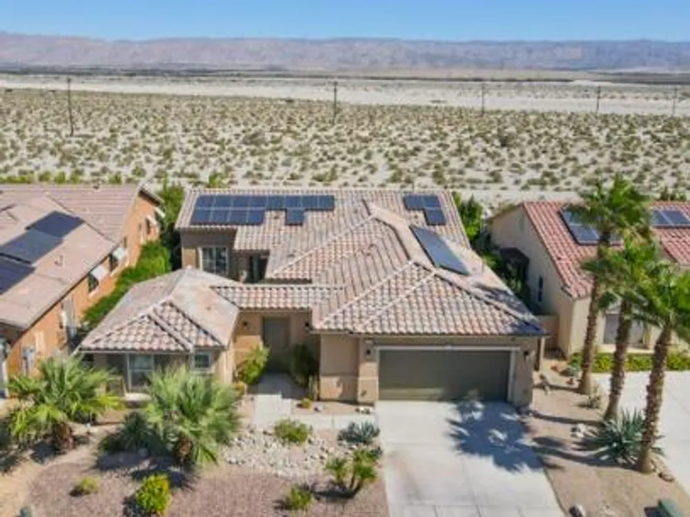 Welcome to your desert hideaway at 1940 Fan Palm Way, where the only thing missing is your creative touch! This spacious 2,637 square-foot abode in a lively 55-plus gated community is a rare gem, priced to please and ready for your TLC. Inside, you'll find 4 bedrooms and 3 bathrooms, including a separate casita that's practically begging for a guest or an office, The chef's kitchen is a culinary paradise, boasting stainless steel appliances, a breakfast bar, and a pantry that's hungry for your gourmet groceries. Step into the central courtyard and feel your stress melt away as you gaze at the mountain views around the fire pit, or dive into your fantasies with a backyard just perfect for a future private pool. High ceilings and ceramic floors provide a grand stage for your decor dreams. With a gym, pool, and more resort style community amenities, this home is a steal. So, bring your imagination and enjoy the best of desert living!