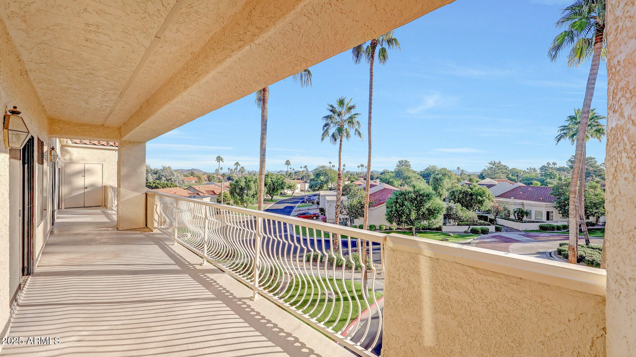 A rare larger penthouse now available in Village Square at Westbrook. This beautifully kept residence stands out with vaulted ceilings, wood look plank flooring, tile where it matters, and an impressive patio framed by windows that capture Arizona's signature skies and natural light. The split layout provides two generous primary suites, each with its own en suite, creating comfort and privacy for everyday living or hosting. The kitchen is finished with granite counters and stainless steel appliances, offering an easy, functional flow. You'll also enjoy the convenience of inside laundry, added storage, and the extended patio that invites relaxation and entertaining. Set within Westbrook Village, this home places you in a sought after community known for its welcoming lifestyle, two championship golf courses, recreation centers, pools, spas, dining, clubs, tennis, pickleball, fitness facilities, and miles of scenic walking and biking paths. A refined retreat in an exceptional location.