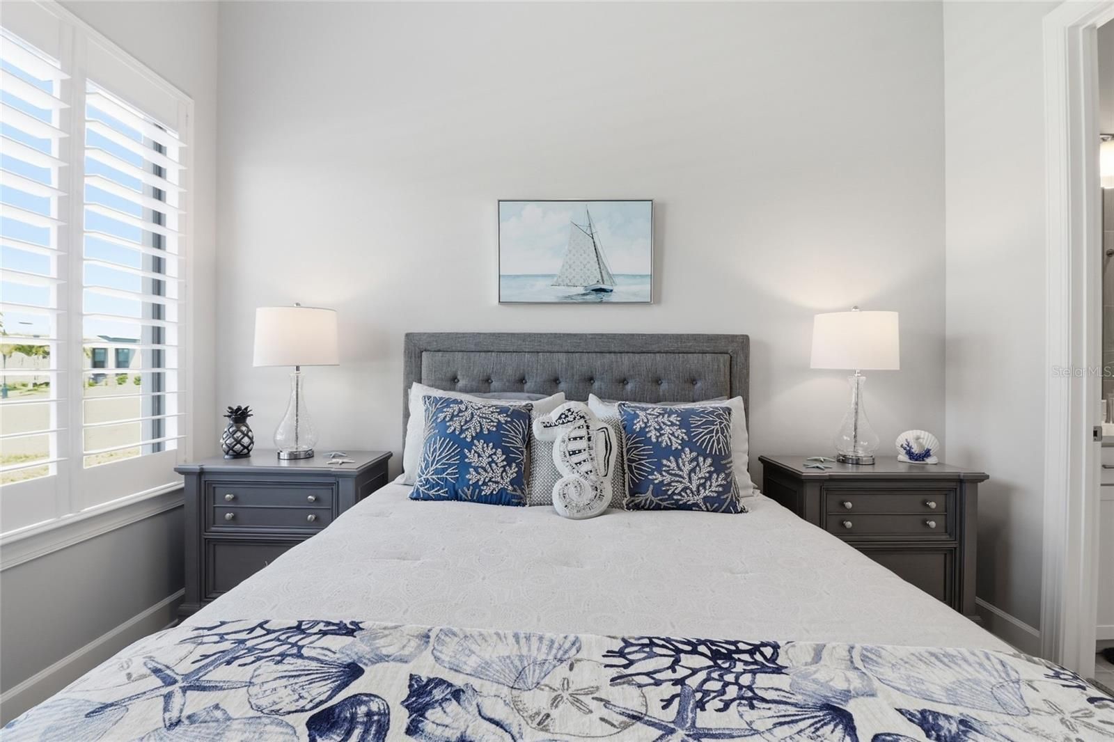 This stunning, fully updated home offers the perfect blend of modern luxury and serene waterfront living. Boasting 2 spacious bedrooms, 2.5 baths, and a versatile den/office—complete with a closet—this space easily transitions into a 3rd bedroom to suit your needs. Step through the decorative glass front door to find an interior that feels brand new, featuring a fresh, full-interior paint palette and elegant Luxury Vinyl Plank (LVP) flooring throughout. The heart of the home is the upgraded gourmet kitchen which flows seamlessly into the dining and great rooms. Here, triple sliding glass doors frame breathtaking views and bathe the home in natural light. An upgrade features custom soft-close cabinets and convenient roll-out shelves for maximum storage The primary suite is a private retreat, highlighted by a masterfully upgraded bathroom. Every detail has been considered, from the upgraded light fixtures and ceiling fans in every room to the custom plantation shutters found throughout the home. Even the utility spaces have been elevated, including an upgraded laundry room and a 2-car garage that features a 4-foot extension and a sleek epoxy floor. Outdoor living is equally impressive. Relax on the extended lanai or enjoy the privacy of your large, fenced backyard, all while overlooking a peaceful body of water. This home is a rare find, combining high-end finishes with a premium lot. The interior has been fully painted in a soft neutral gray and features ceiling fans in every room. Best of all? The owner will consider selling the furnishings, making this the ultimate turnkey move-in opportunity! Living in Del Webb Catalina will give you access to the largest amenity campus in Southwest Florida: Clubhouse & Dining: A 35,000 sq. ft. Grand Clubhouse featuring the Blue Harbor Grille restaurant and bar. Health & Wellness: State-of-the-art fitness center, aerobics rooms, and a wellness center with saunas. Pools & Sports: Resort pool, resistance pool, 5 tennis courts, and 12 pickleball courts (8 of which are covered). Active Lifestyle: Over 12 miles of walking trails, dog parks, community gardens, and a full-time Lifestyle Director. The amenity campus is currently under construction!