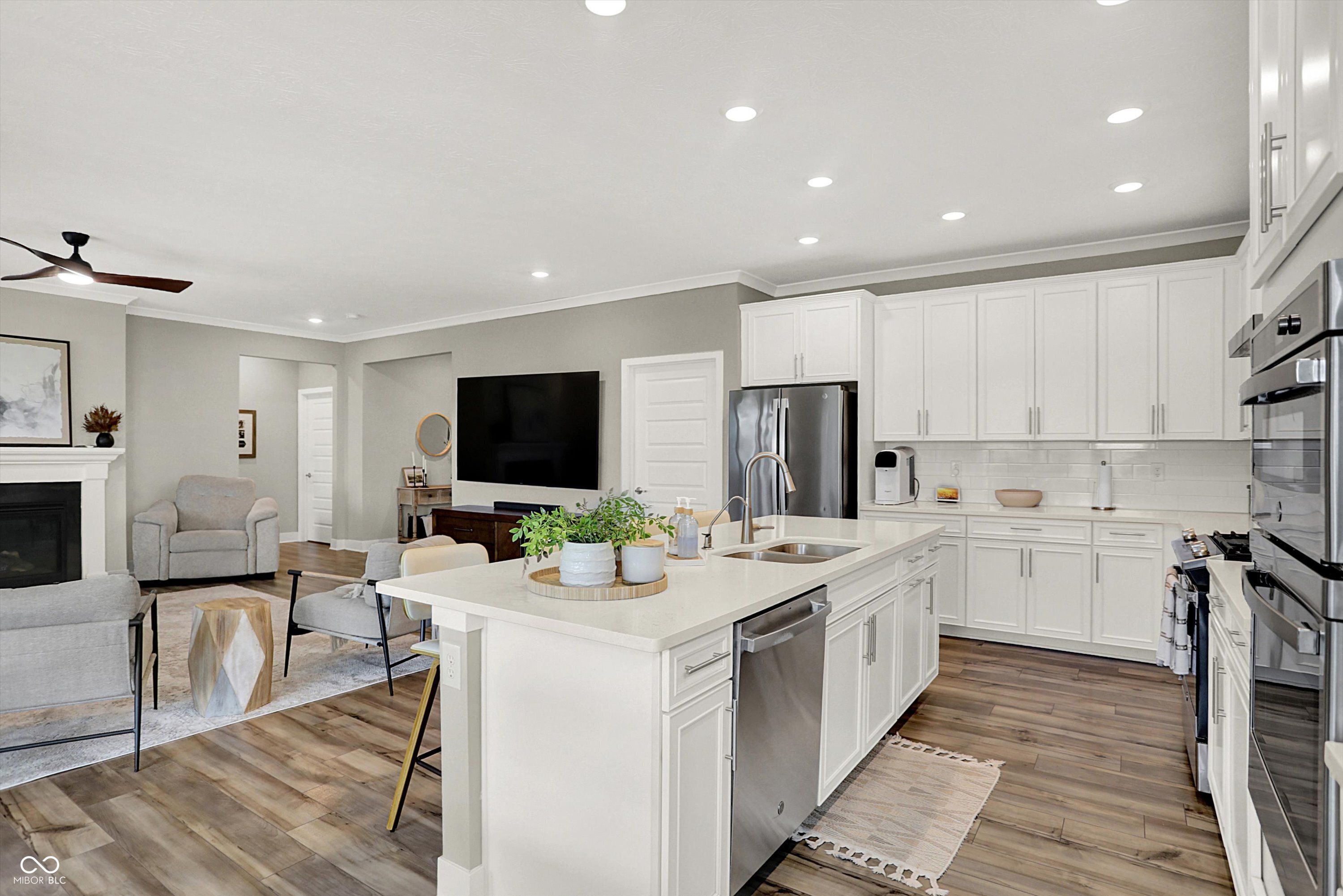 A Downsizers Dream Come True! Located in a 55 or better, active adult community, this well-built ranch home has a light, airy gourmet kitchen, two stainless steel ovens, a gas cooktop, an enormous entertainment island, and a pantry fit for the most discerning chef. The kitchen is open to the spacious living and dining rooms with high ceilings and the latest in lighting and floors. There's an upgraded owner's ensuite bath that will make you feel like you've arrived. You will also find here an entirely separate, private living suite with it's own sitting room, full bath, and two additional bedrooms to accommodate almost any hobby or guest. Check out the floorplan to see all 3 bedrooms, 3 bathrooms and the 3 car garage! Enjoy sunsets grilling on the extended patio or relaxing on the screen-porch. Your toys and cars will not have to be downsized, bring them to your supersized garage! With the low-maintenance lifestyle you will have time to enjoy all the amenities this community has to offer including a fitness center, fire pits, an outdoor kitchen and a full calendar of social events.