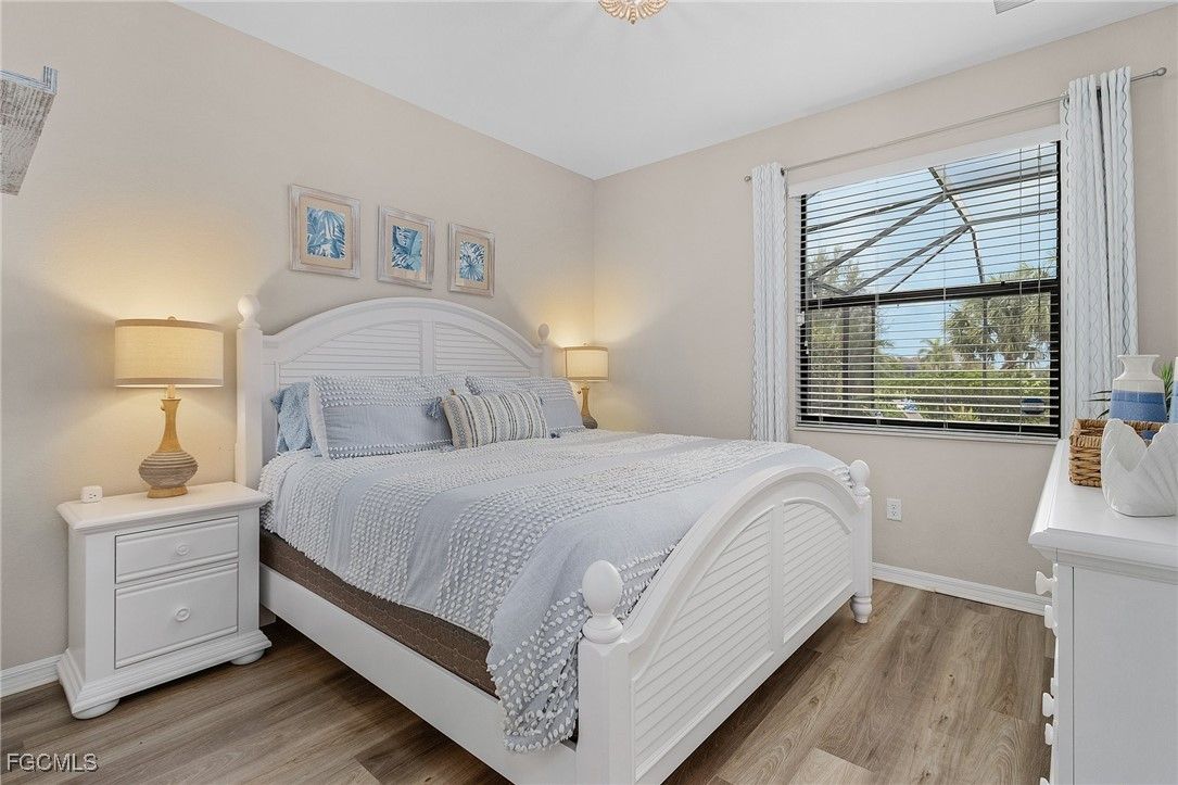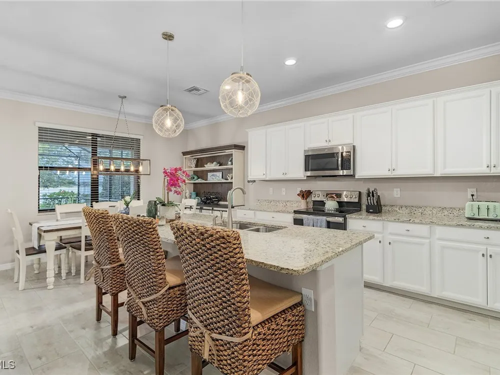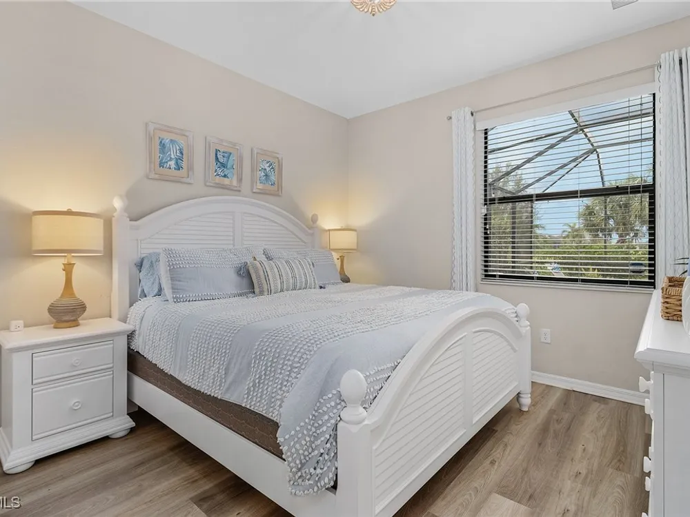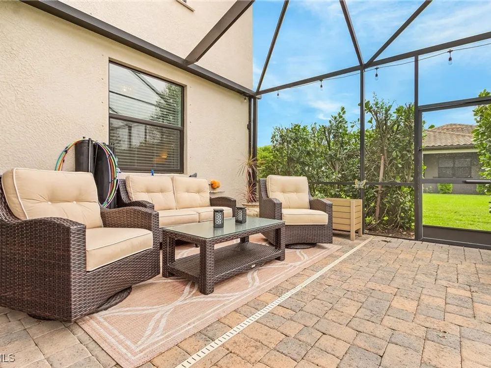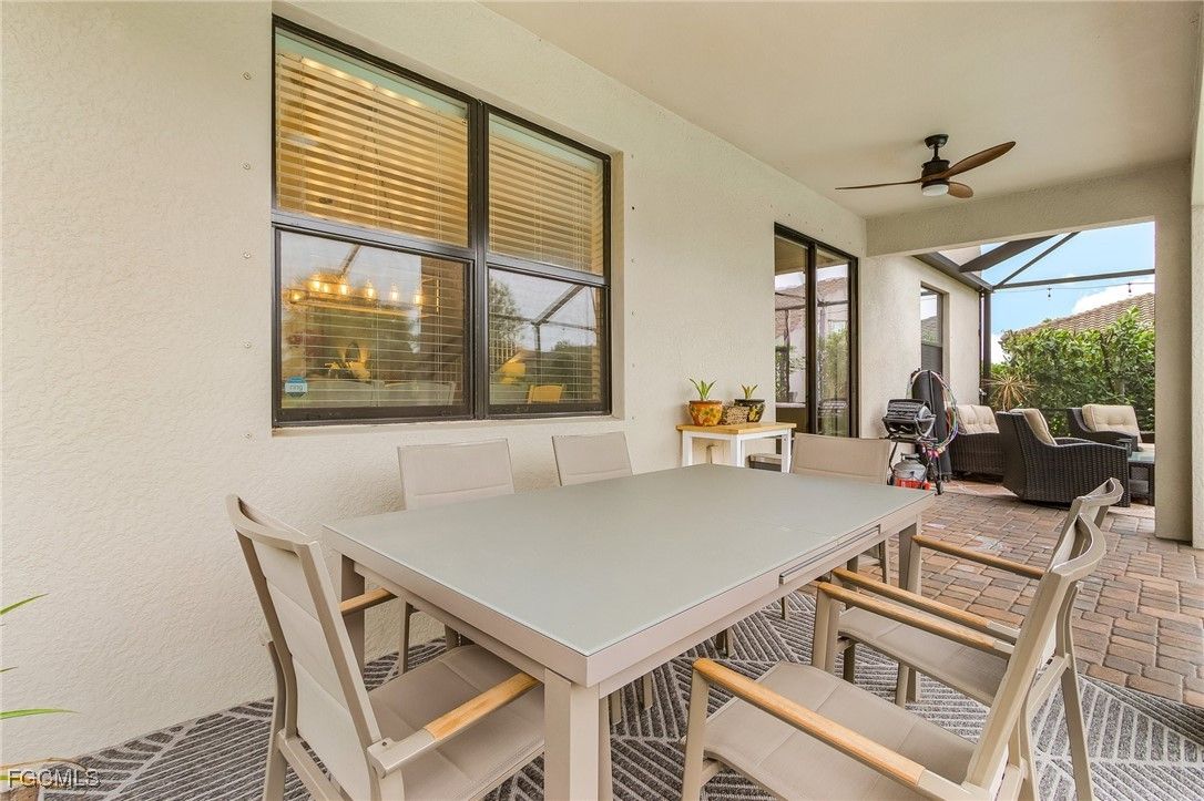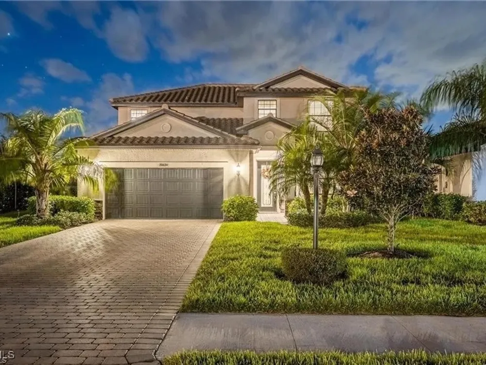 Your Florida oasis is ready! This TURNKEY fully-furnished home comes ready with everything you need to move in and enjoy- SELLER TO CREDIT FOR FIRST YEAR OF INSURANCE PREMIUM. This coastal style Amalfi model is a rare 2-story floor plan with over 2,600 sq ft of well planned living space. 5 bedrooms plus a spacious loft, 3 full baths, 2-car garage, screened lanai with pool and million-dollar direct Western sunset view over the water. Stainless appliances, custom window treatments, granite countertops, real wood cabinetry, oversized island, pantry, upgraded tile in main living areas, luxury vinyl plank (LVP) on stairs and entire upper level, crown molding, tiled showers, walk in closets. Owner's suite bathroom offers double sink vanities, a large soaking tub, and upgraded tempered glass walk-in shower. Relax on your private lanai with sun deck, seating area, dining area, and saltwater pool with hot tub, all controlled via mobile app including multi-color LED lights in the pool and around the screened lanai; new pool pump in January of 2025. Short few minute walk to The Place at Corkscrew (TPAC) amenities including resort pool with slide, splash pad, 24-hour 2-story fitness center, restaurant with bourbon bar, a coffee/sandwich/ice cream cafe, volleyball court, covered playground, bocce courts, tennis courts, pickleball courts, and basketball courts.
