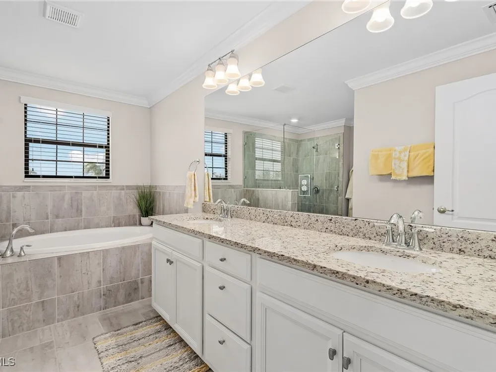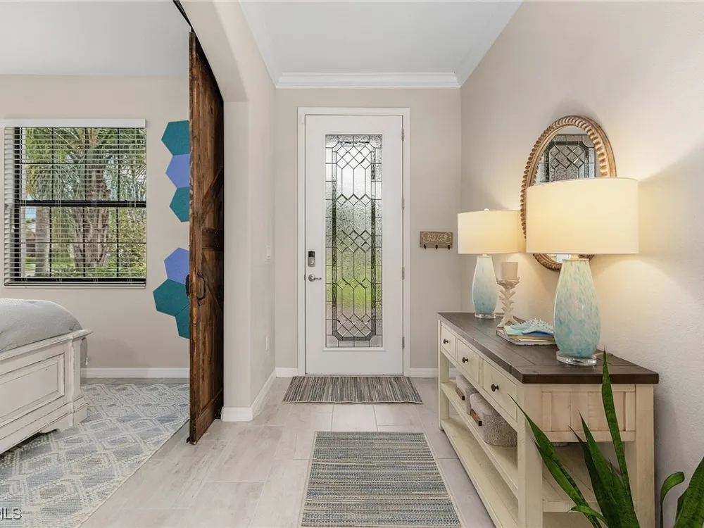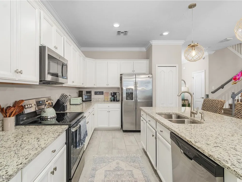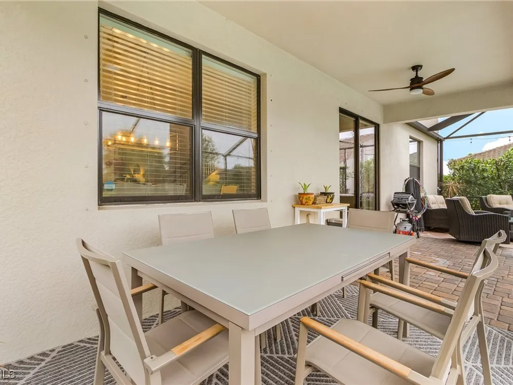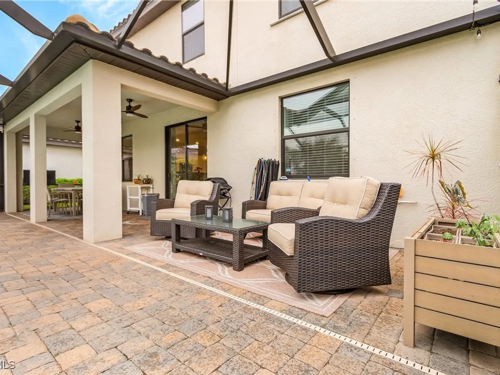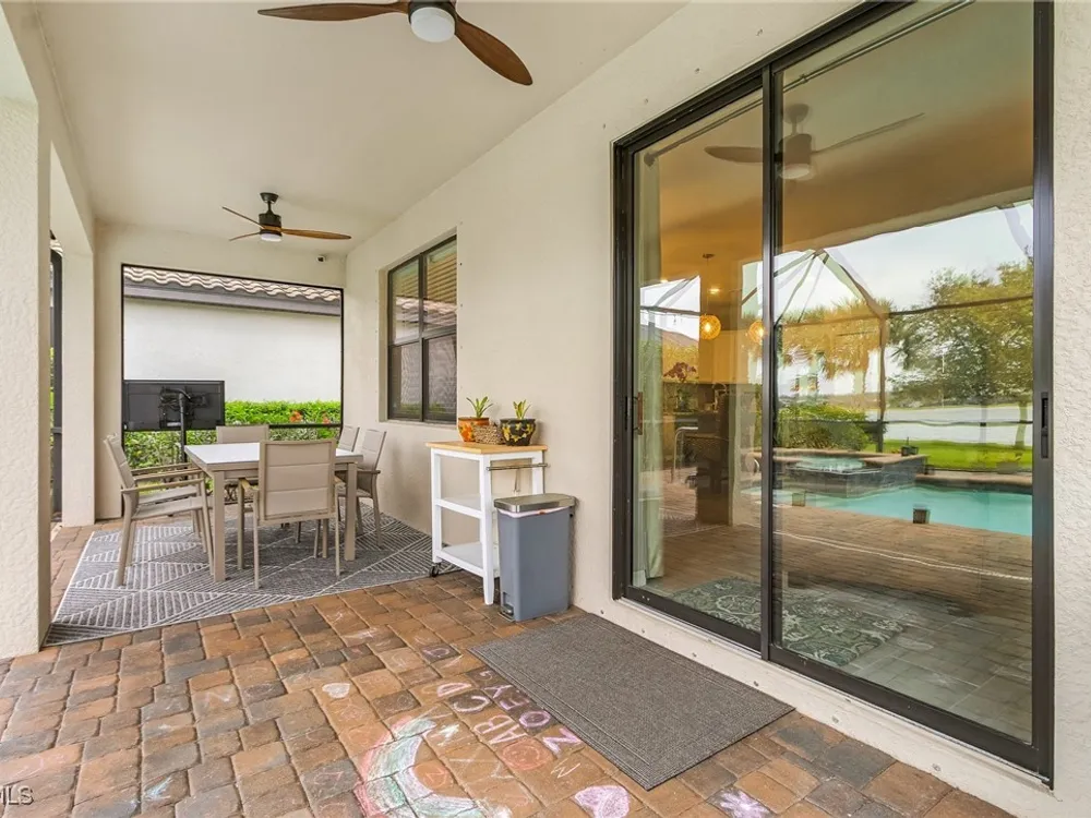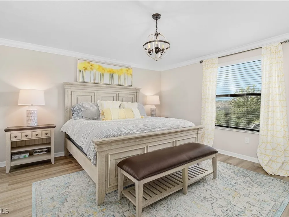 Your Florida oasis is ready! This TURNKEY fully-furnished home comes ready with everything you need to move in and enjoy- SELLER TO CREDIT FOR FIRST YEAR OF INSURANCE PREMIUM. This coastal style Amalfi model is a rare 2-story floor plan with over 2,600 sq ft of well planned living space. 5 bedrooms plus a spacious loft, 3 full baths, 2-car garage, screened lanai with pool and million-dollar direct Western sunset view over the water. Stainless appliances, custom window treatments, granite countertops, real wood cabinetry, oversized island, pantry, upgraded tile in main living areas, luxury vinyl plank (LVP) on stairs and entire upper level, crown molding, tiled showers, walk in closets. Owner's suite bathroom offers double sink vanities, a large soaking tub, and upgraded tempered glass walk-in shower. Relax on your private lanai with sun deck, seating area, dining area, and saltwater pool with hot tub, all controlled via mobile app including multi-color LED lights in the pool and around the screened lanai; new pool pump in January of 2025. Short few minute walk to The Place at Corkscrew (TPAC) amenities including resort pool with slide, splash pad, 24-hour 2-story fitness center, restaurant with bourbon bar, a coffee/sandwich/ice cream cafe, volleyball court, covered playground, bocce courts, tennis courts, pickleball courts, and basketball courts.