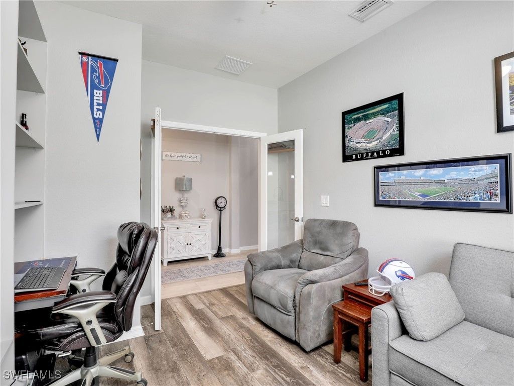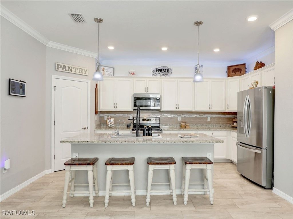 Back on the market due to buyer's financing falling through . A clean inspection report is attached for your review . This spacious 3-bedroom plus den, 3-bathroom home is a must see.. Located in the highly sought-after gated community of The Place at Corkscrew in Estero, this home is designed with both style and functionality in mind. It features an open floor plan with tile and LVP flooring throughout, meaning no carpet anywhere. Customizations include crown molding throughout, newly added wainscoting in the foyer, and a custom feature wall in the dining room. The kitchen is equipped with a deep farmhouse sink, stainless steel appliances, spacious pantry, and a large central island overlooking the dining and main living space. The fenced backyard and screened lanai offer the perfect setting for outdoor entertaining, boasting a large pool and ample outdoor space for grilling and relaxation, all surrounded by lush tropical landscaping and a serene preserve view. This home sits on a large corner lot close to the amenity center. The Place at Corkscrew redefines resort-style living with unparalleled amenities, including a state-of-the-art fitness center, aerobics studio, spa services, kids' club, smoothie bar, cafe/marketplace, Bourbon Bar, and Barefoot Bar & Grill. Outdoor amenities include a resort-style pool with a 100-foot waterslide, two rock waterfalls, beach entries, a splash park, spa, cabanas, fire pit, Har-Tru tennis courts, pickleball with an onsite tennis pro, bocce, beach volleyball, and a dog park. Perfectly located near Southwest Florida International Airport, Coconut Point Mall, and Gulf Coast Town Center, this home offers an unmatched combination of luxury, comfort, and convenience, and best of all, it is not in a flood zone.