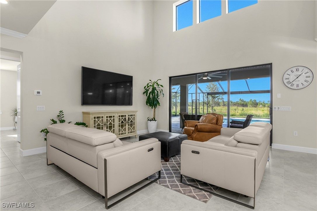 RARELY AVAILABLE “HEATHERTON MODEL” WITH 1ST FLOOR FRONT BEDROOM AND ENSUITE FULL BATH HOME WITH CUSTOM POOL/SPA, OUTDOOR KITCHEN AND PRIVATE, SERENE PRESERVE VIEWS IS NOW AVAILABLE IN THE PLACE AT CORKSCREW! This beautiful residence built in 2022 by Pulte Homes offers 5 Bedrooms + Den, 5 Full Baths (includes a Jack and Jill bath with separate vanities and shared tub/shower and a POOL BATH with shower), 3-Car Garage, 4,290sf of living area and sits on an ESTATE SIZED homesite with Northern rear exposure. Downstairs, you’ll find a first floor guest bedroom, oversized Den/Recreation Room, dining room, breakfast nook and a large living space. The heart of the home features a Chef's kitchen with White Shaker Style Dovetail Cabinetry with SOFT CLOSE DOORS AND DRAWERS, built-in stainless steel appliances, QUARTZ countertops, subway tile BACKSPLASH, a WET BAR with space for a new beverage refrigerator, and extra-deep walk-in pantry. The GRAND TWO-STORY GREAT ROOM showcases impressive soaring ceilings and open wooden railings. The glass sliding doors lead you out to the covered lanai spanning 36 feet. The lanai provides ample space for outdoor entertaining and lounging. The OUTDOOR KITCHEN with grill, beverage refrigerator and sink is a great addition to enhance your outdoor living experience. The lanai overlooks a SPACIOUS 50'W x 34'D POOL DECK with a gorgeous HEATED SALTWATER POOL, FLUSH SPA and SUNSHELF, all framed by a PICTURE WINDOW SCREEN and PRIVATE PRESERVE VIEWS. Inside the home, the stairs will lead you up to 3 guest bedrooms and the primary suite. The owner’s suite is a true retreat. This space offers a PRIVATE SITTING AREA (or space for a desk or a crib), DUAL WALK-IN CLOSETS, accompanied by a Luxurious Bath with a glass-enclosed shower, separate SOAKING TUB, and split vanities with granite countertops. The nice sized laundry room with natural light includes ample storage and a utility tub. Additional upgrades include a glass enclosed walk in shower in the upstairs ensuite bath, designer light fixtures/ceiling fans, crown molding, extended brick pavers on the side of the home, HEAVY FLAKE EPOXY Garage Floor and Garage Door Insulation. The home is equipped with a EV Charger, GENERATOR HOOK UP, PORTABLE GENERATOR and ACCORDION SHUTTERS on the 2nd floor windows. PROPERTY IS HIGH AND DRY AND LOCATED IN FLOOD ZONE X... NO FLOOD INSURANCE REQUIRED! Amenities at The Place include: Resort Pool w/100' Waterslide, Indoor Restaurant, Bourbon Bar, Cafe, Outdoor Bar, Fitness Center, Movement Studio, Tennis, Pickleball, Bocce, Basketball, Playground, Dog Park, Childwatch, Spa Services. For GOLF ENTHUSIASTS, the highly rated Jack Nicklaus designed OLD CORKSCREW GOLF CLUB is open to the public and located directly across the street from the community entrance! PUBLIX GROCERY STORE... JUST 1.4 MILES AWAY... IS OPEN along with DUNKIN DONUTS, UPS STORE, LEGNO ITALIAN RESTAURANT, NAIL AND HAIR SALON, HEARTLAND DENTAL, and more to come!