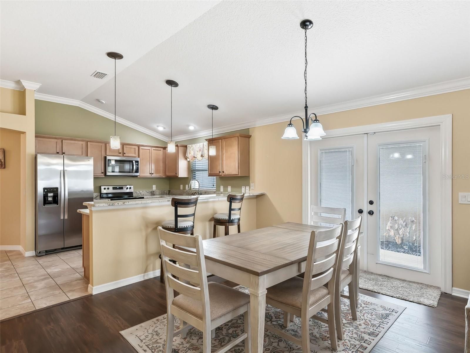YOU DON’T WANT TO MISS THIS BEAUTIFULLY MAINTAINED, FURNISHED CORNER-LOT ANAHEIM VILLA in the highly desirable Village of St. James! This 3-bedroom, 2-bath villa features added living space and tasteful upgrades in a prime location close to everything The Villages lifestyle provides. A standout feature is the extended enclosed lanai under heat and air, perfect for relaxing, entertaining, or enjoying year-round Florida living. Inside, the home showcases granite countertops in the kitchen and bathrooms, stainless steel appliances, crown molding, arched doorways, and pendant lighting. The primary suite features a tray ceiling, spacious walk-in closet, and an en-suite bath with a frameless glass shower door. You will love how one of the secondary bedrooms transforms into a private guest en-suite feel, ideal for visitors. The garage includes pull-down attic stairs for additional storage. Outside, the painted concrete side yard provides extra usable outdoor space, and the easy-care landscaping keeps maintenance simple. Conveniently located near golf, pools, and recreation centers, with a short golf cart ride to Brownwood Paddock Square or Lake Sumter Landing. Trailwinds Shopping Center is about a mile away, providing convenient access to shopping, dining, and everyday essentials. Move-in ready and perfectly positioned to enjoy The Villages lifestyle.