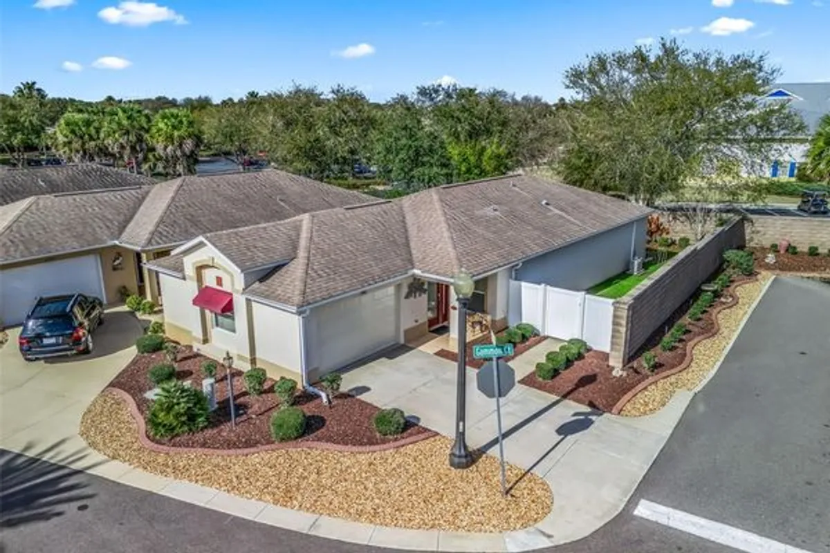 LOOK WHO'S GETTING A NEW ROOF(2026), YOU ARE! YOU DON’T WANT TO MISS THIS BEAUTIFULLY MAINTAINED, FURNISHED CORNER-LOT ANAHEIM VILLA in the highly desirable Village of St. James! This 3-bedroom, 2-bath villa features added living space and tasteful upgrades in a prime location close to everything The Villages lifestyle provides. A standout feature is the extended enclosed lanai under heat and air, perfect for relaxing, entertaining, or enjoying year-round Florida living. Inside, the home showcases granite countertops in the kitchen and bathrooms, stainless steel appliances, crown molding, arched doorways, and pendant lighting. The primary suite features a tray ceiling, spacious walk-in closet, and an en-suite bath with a frameless glass shower door. You will love how one of the secondary bedrooms transforms into a private guest en-suite feel, ideal for visitors. The garage includes pull-down attic stairs for additional storage. Outside, the painted concrete side yard provides extra usable outdoor space, and the easy-care landscaping keeps maintenance simple. Conveniently located near golf, pools, and recreation centers, with a short golf cart ride to Brownwood Paddock Square or Lake Sumter Landing. Trailwinds Shopping Center is about a mile away, providing convenient access to shopping, dining, and everyday essentials. Move-in ready and perfectly positioned to enjoy The Villages lifestyle.