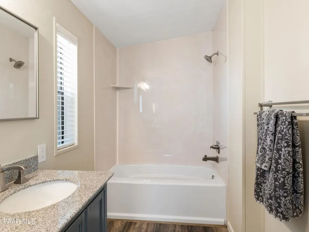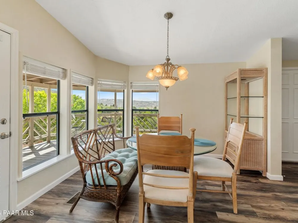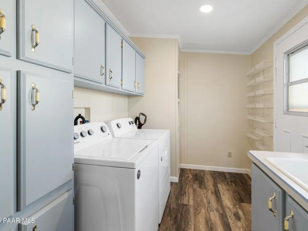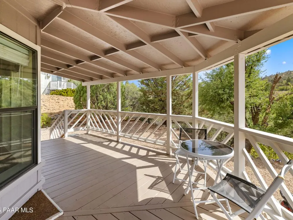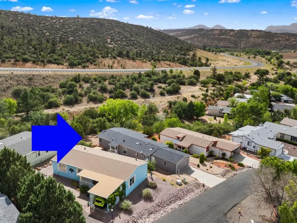 This manufactured home has undergone an extensive transformation since 2022. Now boasting a modern Kitchen while showcasing stunning mountain vistas. Most recently the exterior and deck were painted and a new roof with a transferable warranty was installed. Upgraded main suite bath with double sinks, plush carpeting in the bedrooms and luxury vinyl plank flooring elsewhere. Vaulted Ceilings in all rooms. Large windows allow one to fully appreciate the surrounding scenery. Wrap around covered deck facilitates outdoor living and enjoyment of the views. Large backyard provides additional privacy. Two Car Garage w/storage space and walkway to the side Laundry/Pantry Entry. Furnishings are available for purchase outside of Escrow. This is a quite 55 & Older Community centrally located in Prescott.