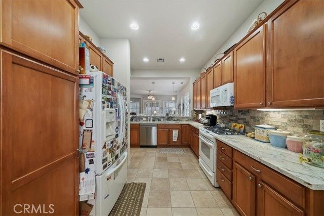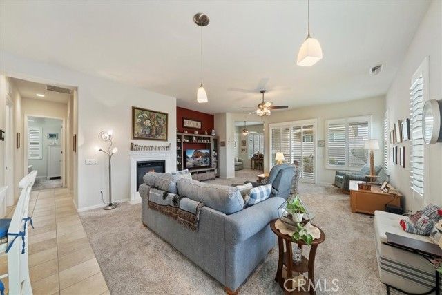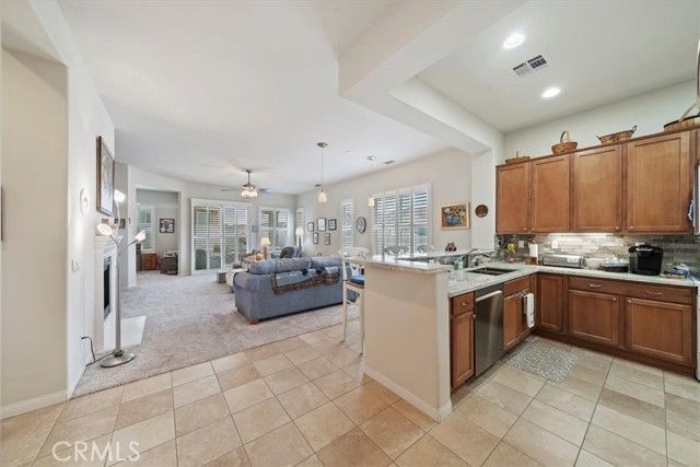 Welcome to your new home!!! This home has everything you need to enjoy within a well-maintained, gated, Senior community with countless activities and events to participate in or relax and enjoy the peaceful comforts of being home! Enjoy entering this beautiful home with an open floor plan featuring spacious rooms and an updated kitchen equipped with newer granite countertops, full backsplash, abundant cabinetry with pull-out drawers, pantry, a dining area with a view, and a large bar counter providing additional space for entertaining. Additional features include lovely plantation shutters, recessed lighting, ceiling fans, a beautiful fireplace, and an indoor laundry room with wash basin and ample storage cabinets. The primary bathroom offers a walk-in closet, walk-in shower, and a dressing area with generous counter space, double sinks, and lighting options. This is a must-see property, full of lovely spaces, beautiful windows, finished two-car garage and spacious driveway, surrounded by professional landscaping and flatwork. Make your appointment today!
