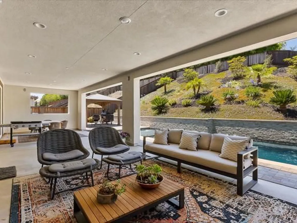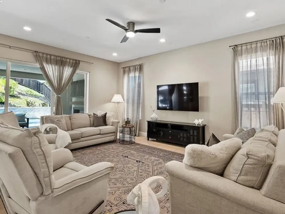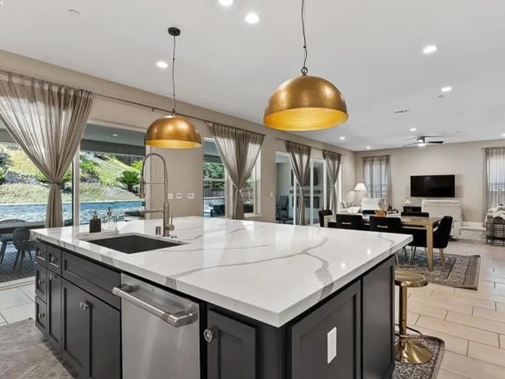 Pure Luxury in Lark Hill! Discover modern elegance in Brentwood’s prestigious gated community of Lark Hill. Built in 2020, this highly upgraded home blends impeccable design with resort-style living. Step into a chef’s dream kitchen featuring sleek white cabinetry, floating shelves, a bold dark-gray island, gold-accented backsplash and hardware, and dramatic pendant lighting. Upstairs, a spacious bonus room offers endless options for work, play, or relaxation. Retreat to the spa-inspired primary suite, complete with a freestanding soaking tub, dual shower heads, and serene finishes that rival a five-star resort. The California room with fireplace and mounted TV extends your living space outdoors—perfect for year-round entertaining. The luxury pool steals the show with multiple lounging shelves and an endless swim system for both fun and fitness. An attached in-law/ADU unit with its own kitchen and bath provides ultimate flexibility for multigenerational living, guests, or rental income. Located in the scenic Brentwood hills, this home is the epitome of elegance, comfort, and the California lifestyle you’ve been dreaming of.