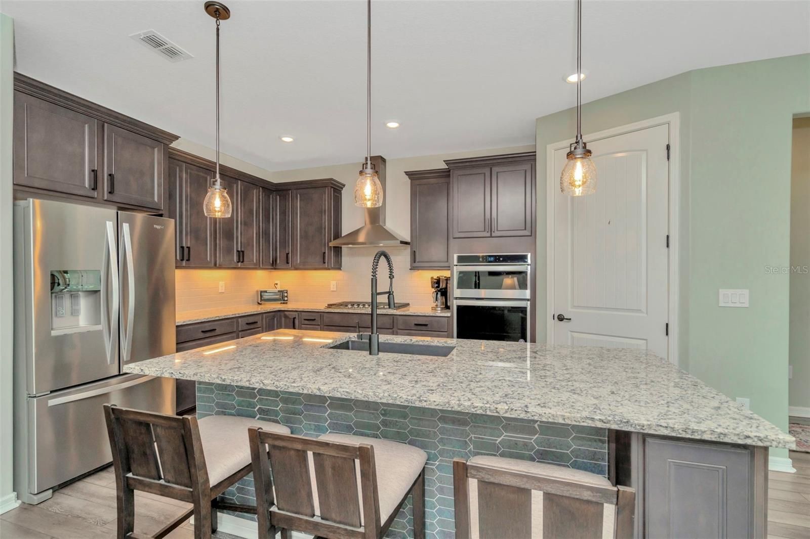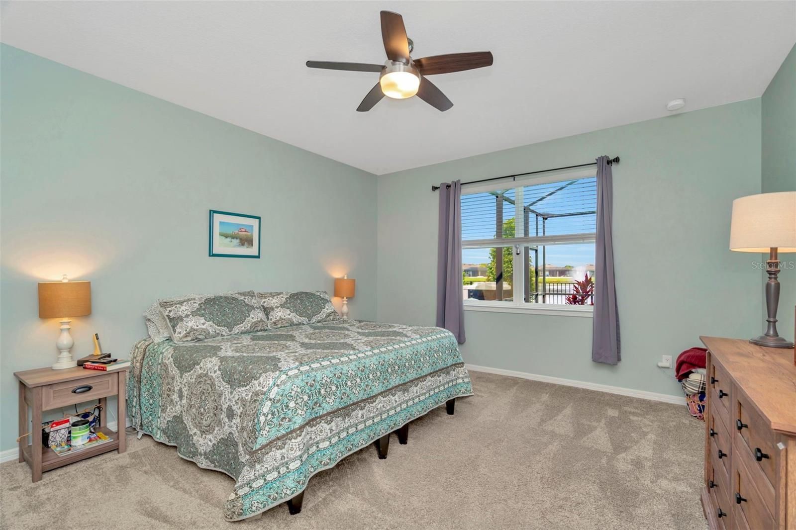 PRICE IMPROVEMENT! Welcome home! This beautiful 4-year-old 3 Bedroom, 2 Bath + Office pool home is perfectly positioned on a premium pond-view lot in the highly sought-after Del Webb Bexley 55+ community. Enjoy low monthly electric bills thanks to solar panels and take in serene pond and fountain views from your own backyard oasis. Experience true Florida resort-style living with a custom solar-heated pool overlooking peaceful water and wildlife, where sandhill cranes and storks often visit. The screened-in lanai features brick pavers, an outdoor kitchen area, breakfast nook, and plenty of room for relaxing or entertaining. Dual sliding glass doors bring abundant natural light inside, allowing the breeze to flow through the leaded-glass front door and screened entry. The backyard is enclosed with a 4-foot black aluminum fence—perfect for pets and added peace of mind. Inside, the home offers luxury vinyl plank flooring, granite countertops, pendant lighting, and stainless steel appliances, including a built-in oven and gas stove. The flexible floor plan includes a 3-bedroom layout plus a versatile flex room ideal for an office, craft room, or guest space. The 2-car garage provides convenient overhead storage. The spacious primary suite includes a custom-tiled shower and a well-designed walk-in closet. Guests will enjoy a private bedroom and full tiled bath. The laundry room includes upgraded-style cabinetry for added storage and organization. Residents of Del Webb Bexley enjoy incredible amenities just moments away. The 19,000 sq. ft. Meridian Clubhouse features a resort-style pool, pickleball and tennis courts, fitness center, community garden, dog park, classes, social events, and more—coordinated by a full-time Lifestyle Director. And you’re just minutes from beaches, entertainment, shopping, hospitals, parks, and everything Tampa Bay has to offer. This home is a must see!