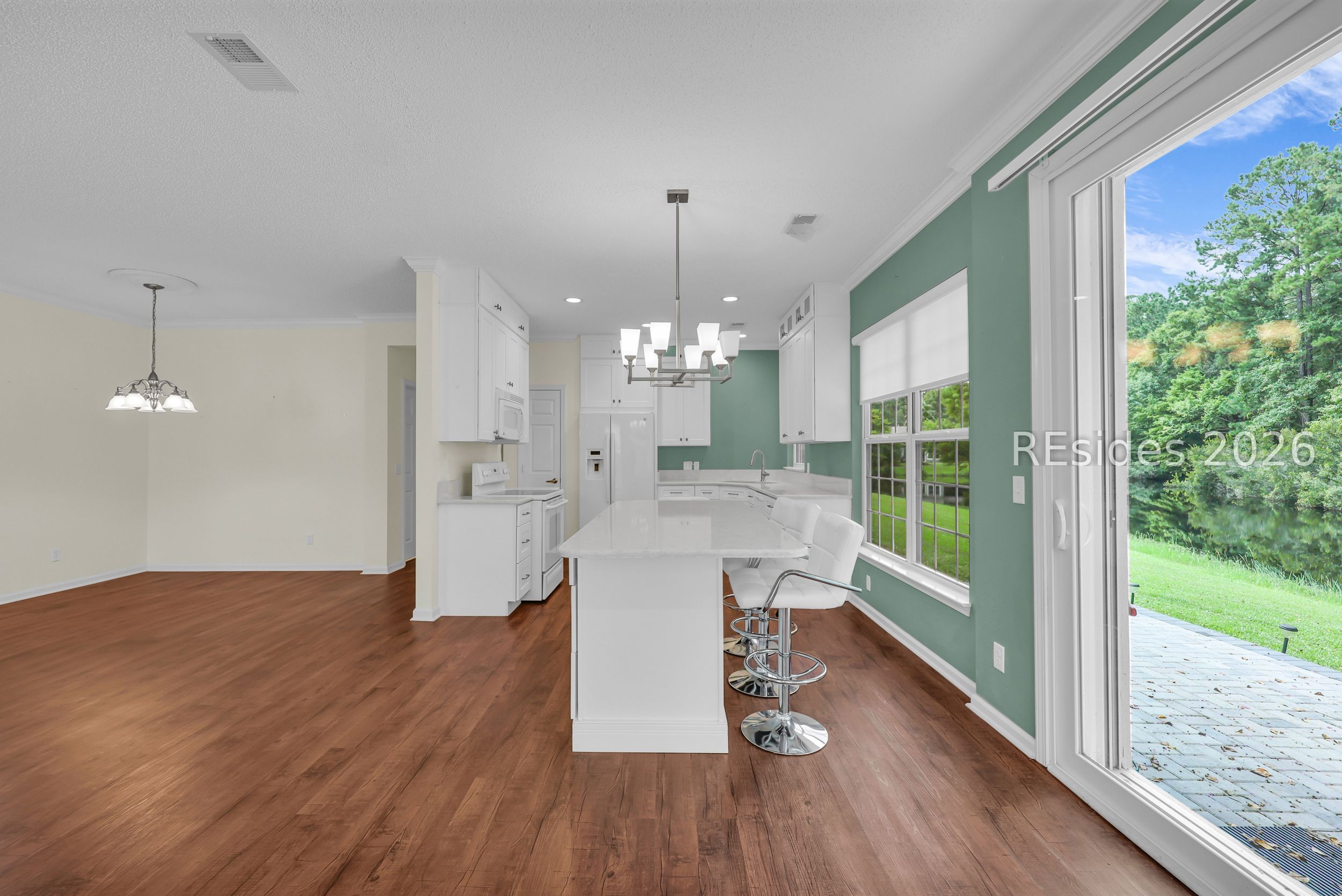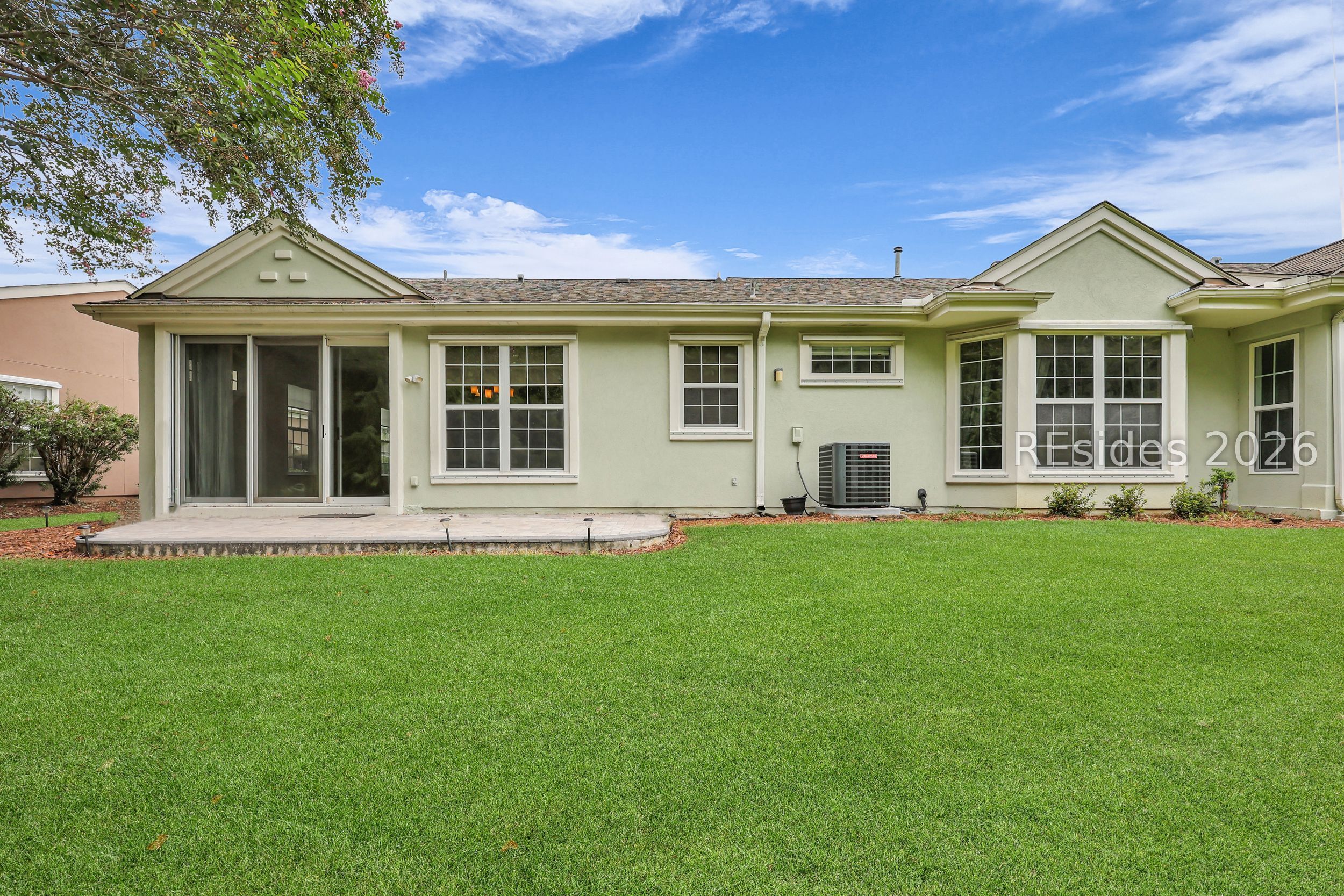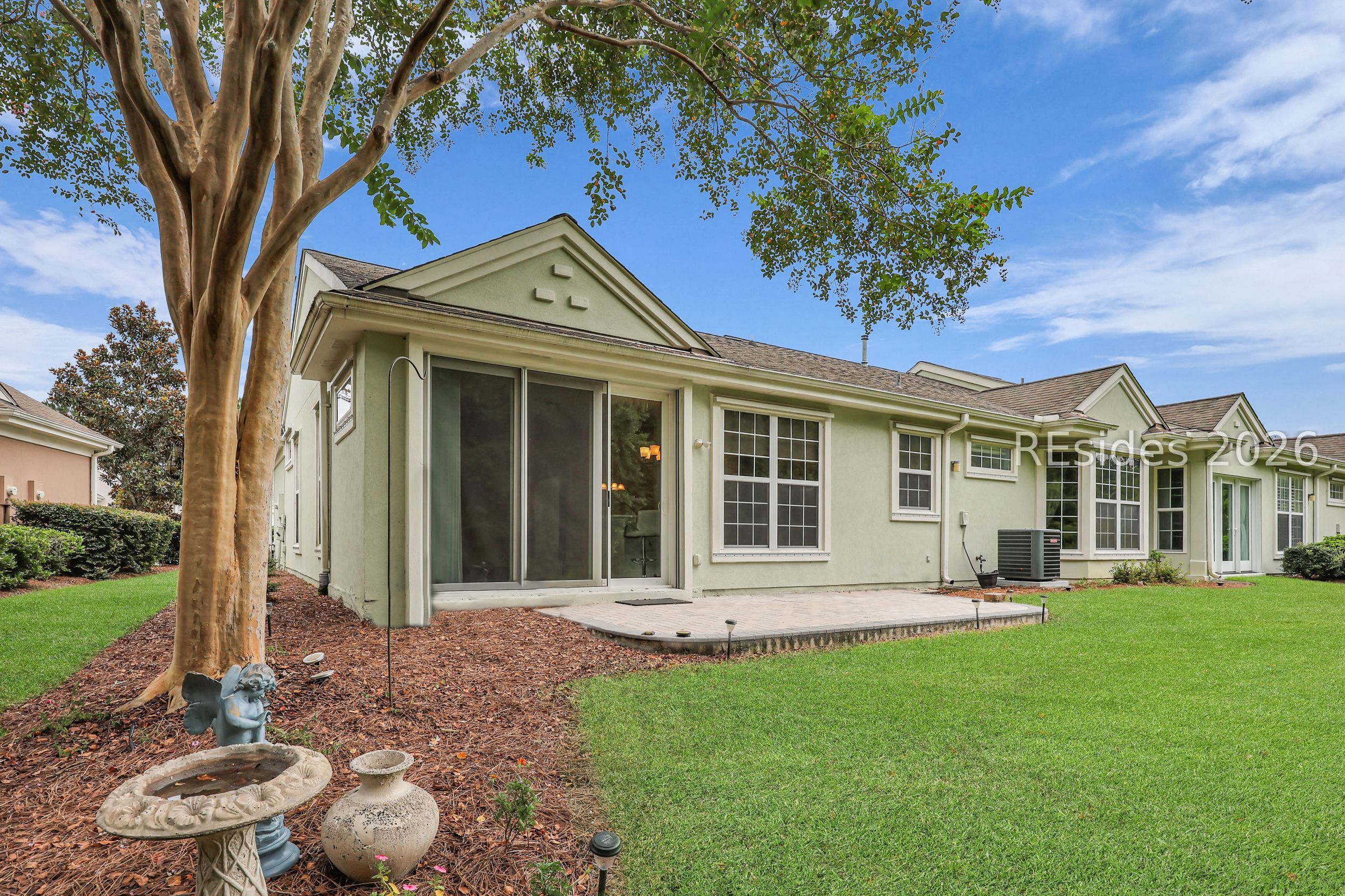 Welcome to this expanded Wren model in Sun City Hilton Head, thoughtfully designed to capture the beauty of its serene natural setting. Overlooking a peaceful lagoon and protected wooded preserve, this home offers a true nature lover's paradise, where mornings begin with birds chirping and evenings unwind with tranquil water and forest views. Expanded to include additional square footage, the home seamlessly extends the living space, along with a kitchen island that anchors the open, light-filled layout. Large shade trees provide natural comfort from the afternoon sun, enhancing everyday enjoyment. Step outside to the newly added patio, perfect for relaxing, entertaining, or welcoming frequent visits from local birds and wildlife. Located just across from the golf course, this home offers a rare blend of privacy and lifestyle. Recent updates include newer HVAC, water heater, water softener, washer (2023), upgraded blinds, vent cleaning, improved drainage, and refreshed landscaping. A unique opportunity to enjoy peaceful, scenic Lowcountry living just moments from Sun City's world-class amenities.