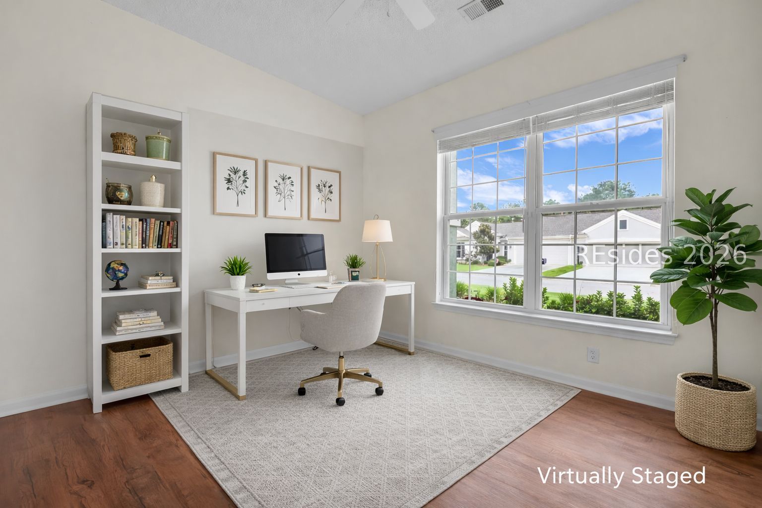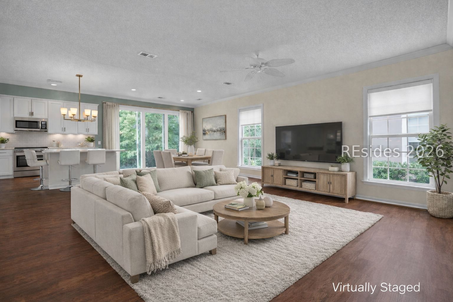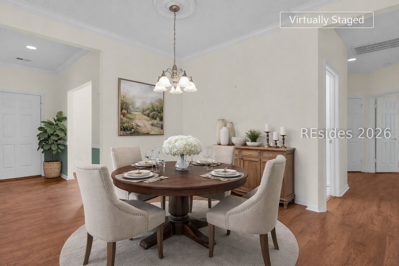 Welcome to this expanded Wren model in Sun City Hilton Head, thoughtfully designed to capture the beauty of its serene natural setting. Overlooking a peaceful lagoon and protected wooded preserve, this home offers a true nature lover's paradise, where mornings begin with birds chirping and evenings unwind with tranquil water and forest views. Expanded to include additional square footage, the home seamlessly extends the living space, along with a kitchen island that anchors the open, light-filled layout. Large shade trees provide natural comfort from the afternoon sun, enhancing everyday enjoyment. Step outside to the newly added patio, perfect for relaxing, entertaining, or welcoming frequent visits from local birds and wildlife. Located just across from the golf course, this home offers a rare blend of privacy and lifestyle. Recent updates include newer HVAC, water heater, water softener, washer (2023), upgraded blinds, vent cleaning, improved drainage, and refreshed landscaping. A unique opportunity to enjoy peaceful, scenic Lowcountry living just moments from Sun City's world-class amenities.
