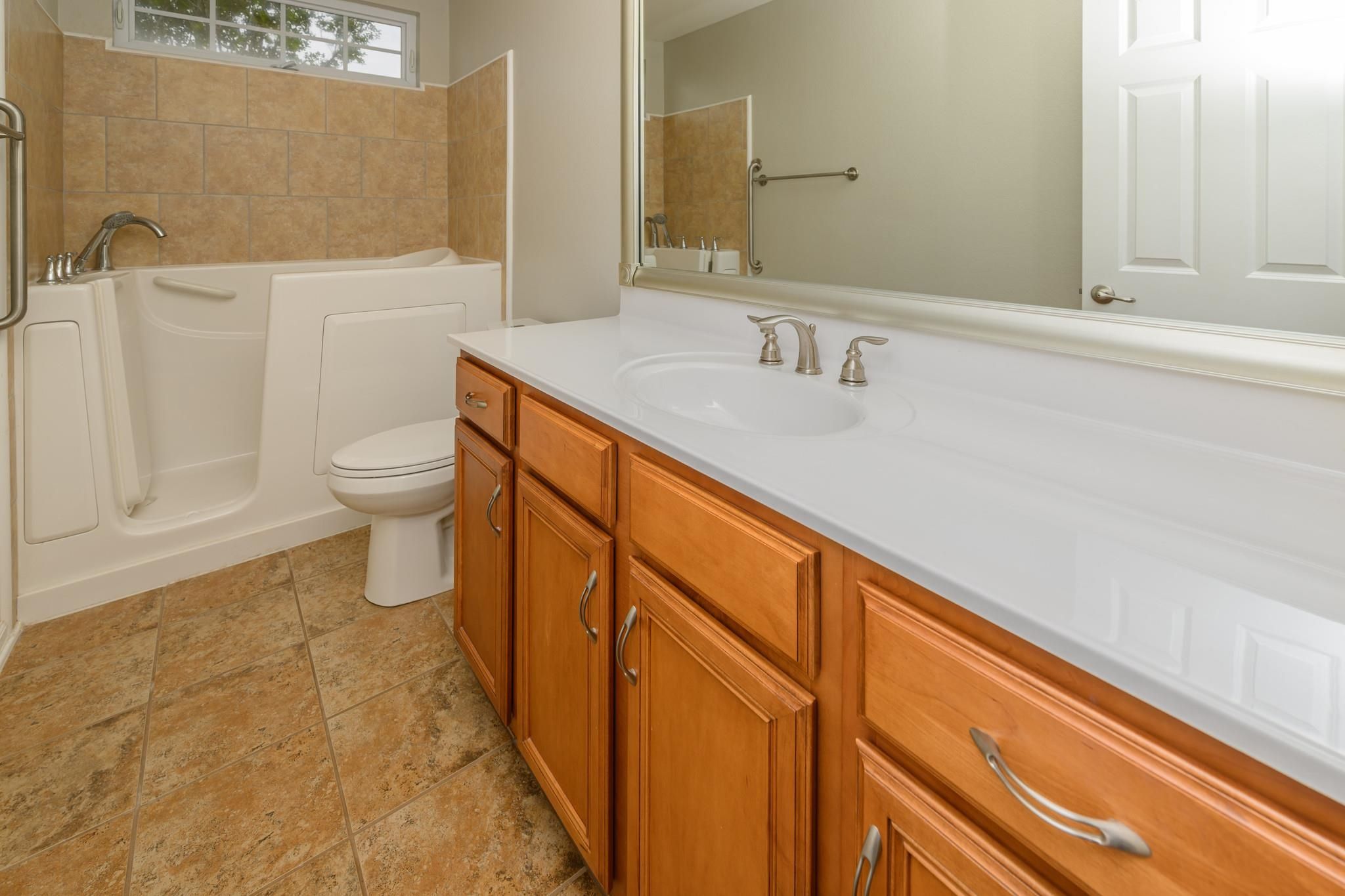 - Ceiling Fan(s), Dual Sinks, Accessibility Features, Separate Shower, Vaulted Ceiling(s), Walk-In Closet(s), Window Treatments, Stainless Steel Appliances, Solid Surface Counters