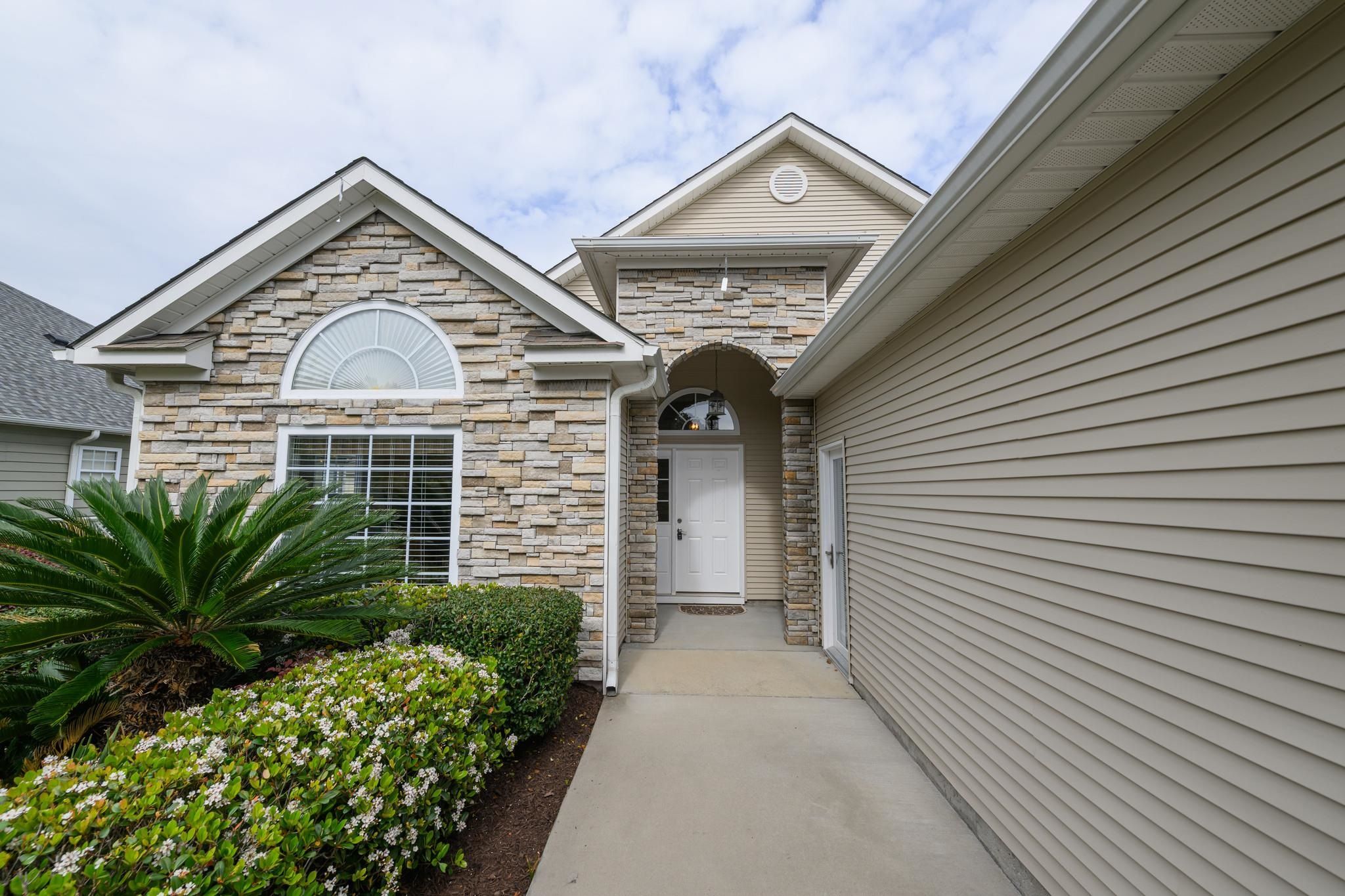 Welcome to this stunning lakefront home located in the exclusive Surfside Beach Club, a premier gated community less than two miles from Surfside Beach. This property combines elegance, comfort, and convenience—ideal for enjoying coastal living. Step inside to find vaulted ceilings and elegant archways that create an open, airy atmosphere throughout the living and dining areas. The home features award-winning design, recognized in the 2008 "Parade of Homes," and includes upgraded finishes such as Level-4 hardwood and tile flooring, granite countertops with a waterfall edge, and custom paint. The spacious kitchen offers abundant cabinetry, perfect for both everyday cooking and entertaining. Additional highlights include a tray ceiling in the foyer, crown molding, upgraded lighting, and high-end bath fixtures with 34" vanities, and satin nickel finishes. This home is equipped with surround sound, whole-house audio, a security system, and a 4-zone lawn irrigation system. The exterior showcases unique architectural touches, including a metal roof entry and barrel roof over the dining room window. Living in Surfside Beach Club means access to top-tier amenities like a clubhouse with community pool within a secure gated setting, all just minutes from the sandy shores of Surfside Beach. Move in ready for your coastal lifestyle. This home will not last long!!!
