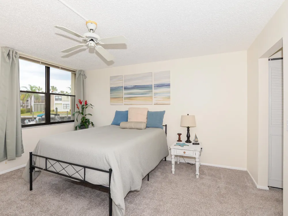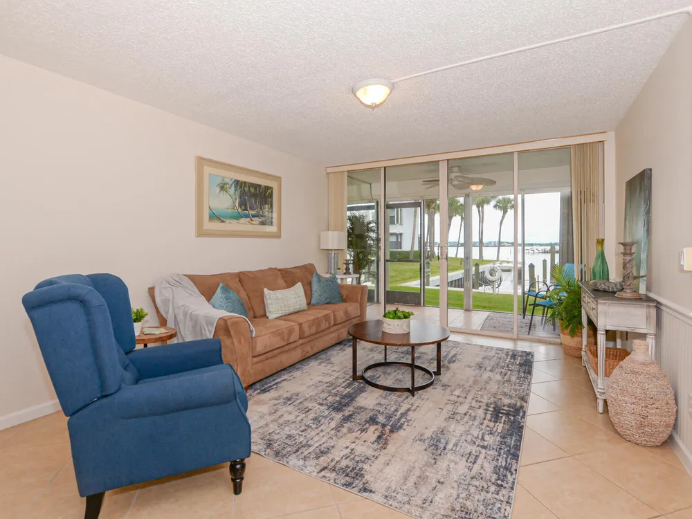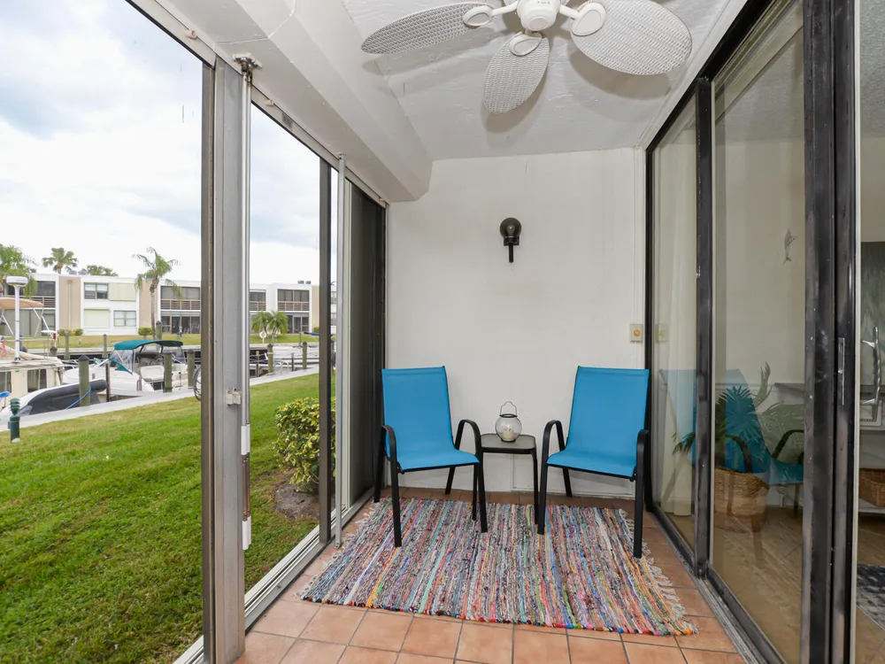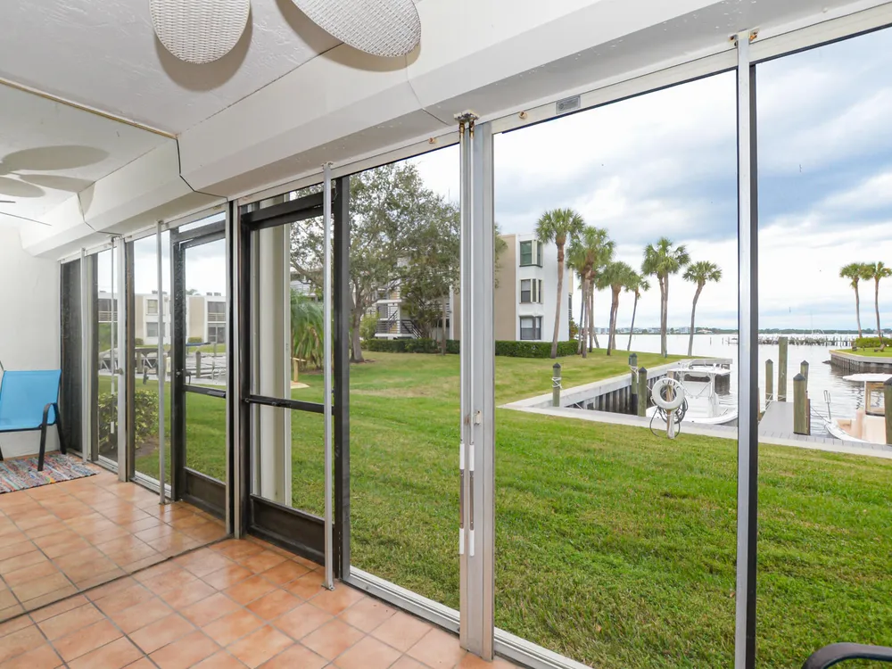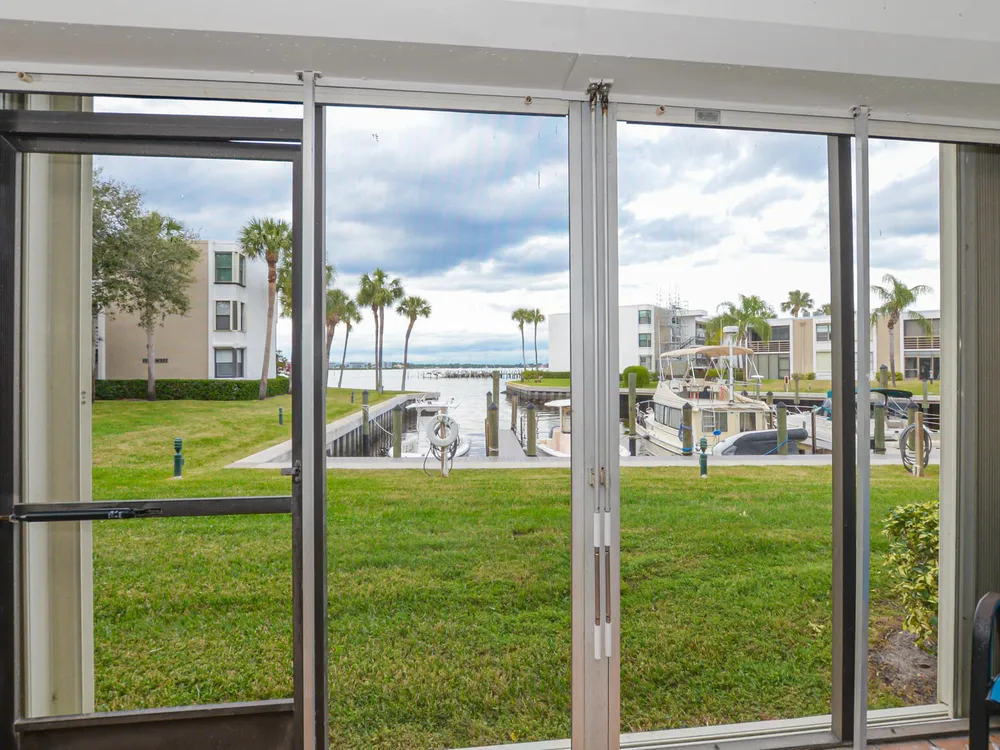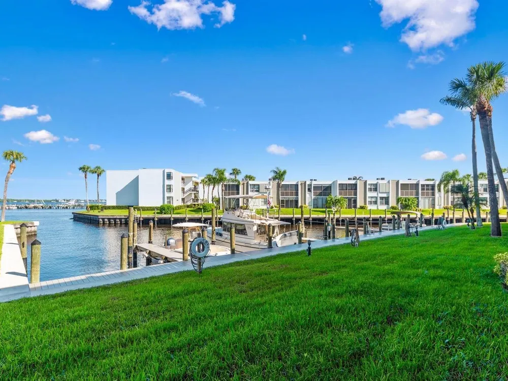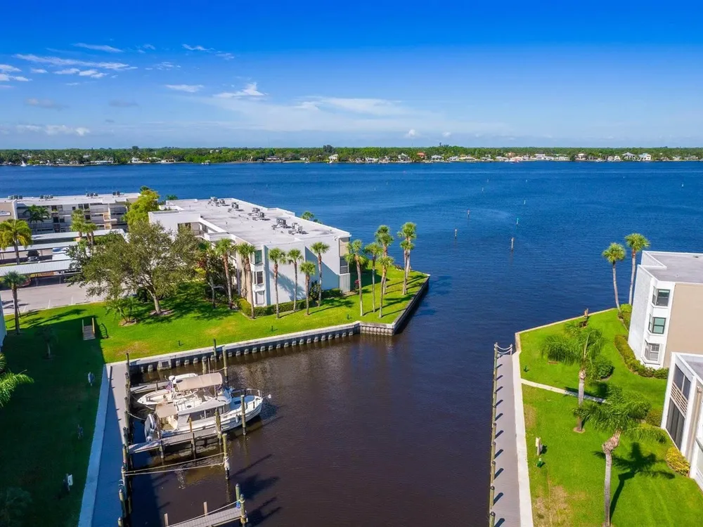 Calling all boaters and lovers of the water! Enjoy wide water views and dockage at just $1.50/ft per month for vessels up to 36ft--no fixed bridges! Just outside the door you have access to your boat or to fish or just be near the FL waterway. Located in a 55+ community, this 2 bed, 2 bath unit features a remodeled shower in the primary suite, washer/dryer in-unit, new A/C (2025), and a 1-year-old water heater. Recent upgrades include 2-year-old seawalls, piers, dock walkways, fresh exterior paint, and a new roof being installed. No special assessments pending. Your blank canvas awaits--bring your vision and enjoy the waterfront lifestyle!