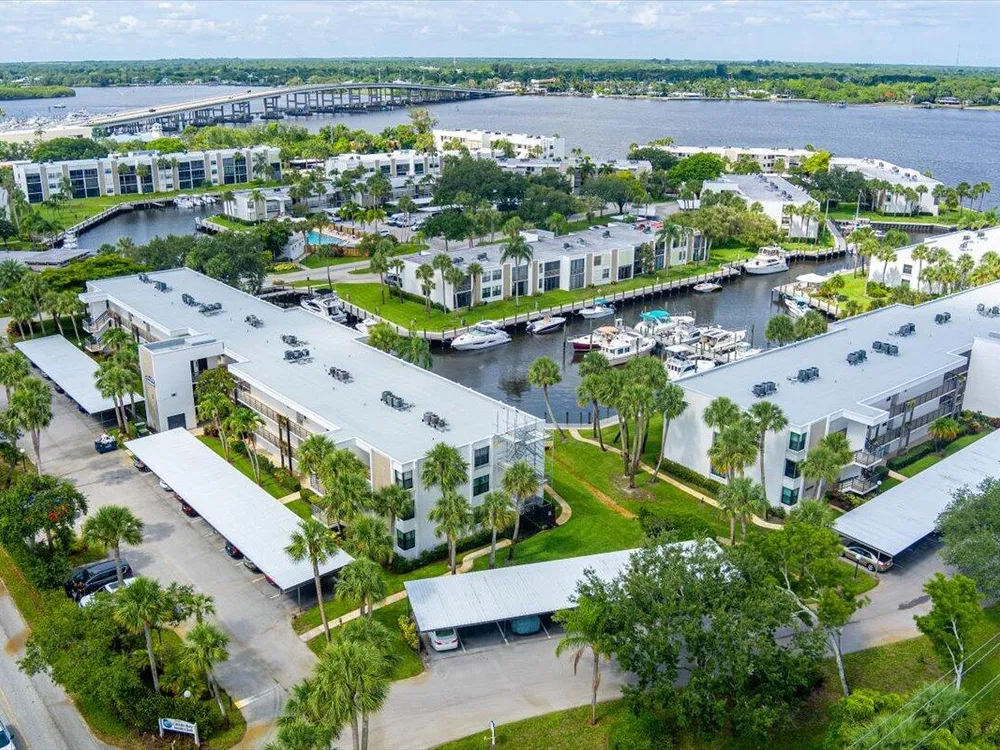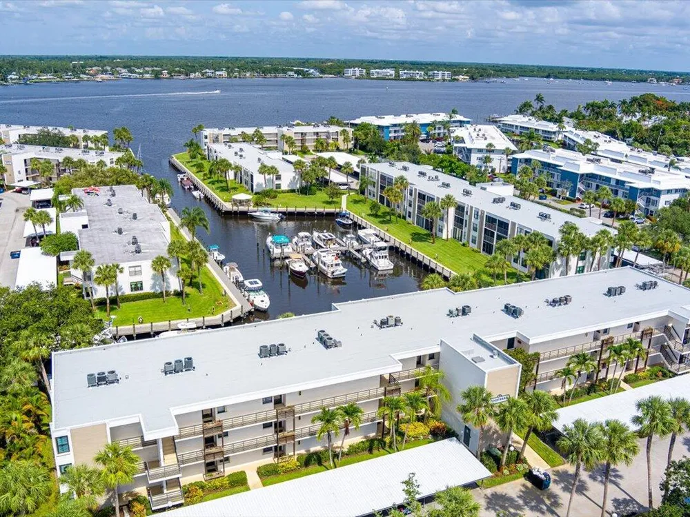 OPEN HOUSE 11-2 - Boaters Paradise! Beautiful 2 Bedroom 2 Bath Condo on the 1st floor in a premiere waterfront community in the Heart of Stuart! Come enjoy Active Resort Style Living! Jump on your boat out back for sunset cruises, river fun, sandbar action or waterfront restaurants within minutes! Or day fishing on the ocean to catch dinner to cook on the grill with friends! HOA includes building insurance & roof maintenance, reserves cable, water, sewer, trash, exterior pest control, lawn, recreational facilities, pool, hot tub, clubhouse, fully equipped workshop, shuffleboard, billiards, game room, large ice makers-great for boating /parties, BBQ grills & picnic area. Dockmaster said boat slips are $1.50 per foot. Behind workshop is a garden area. Roof Was Replaced in 2019!