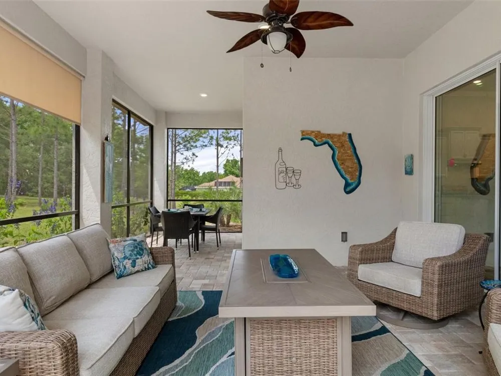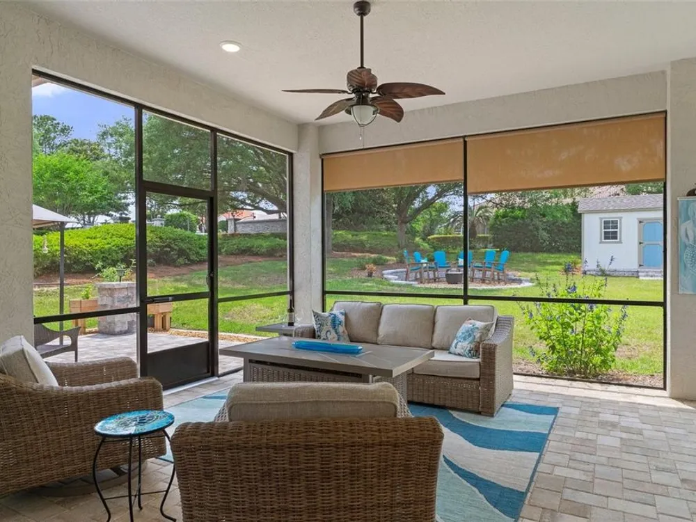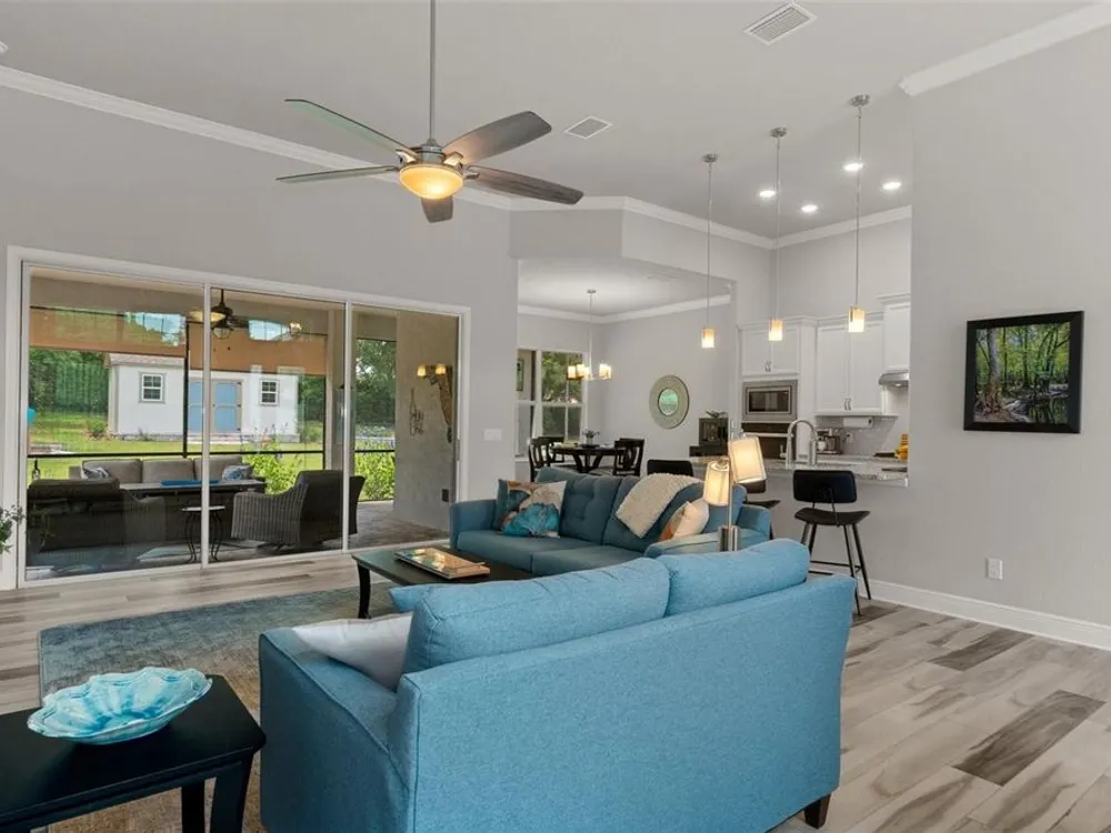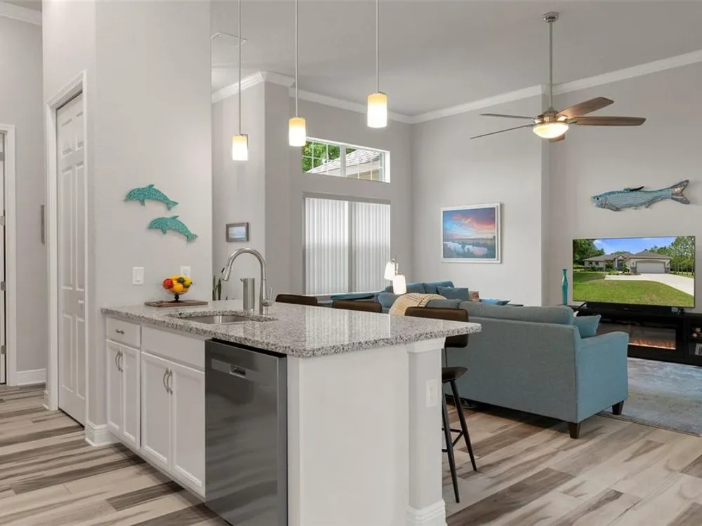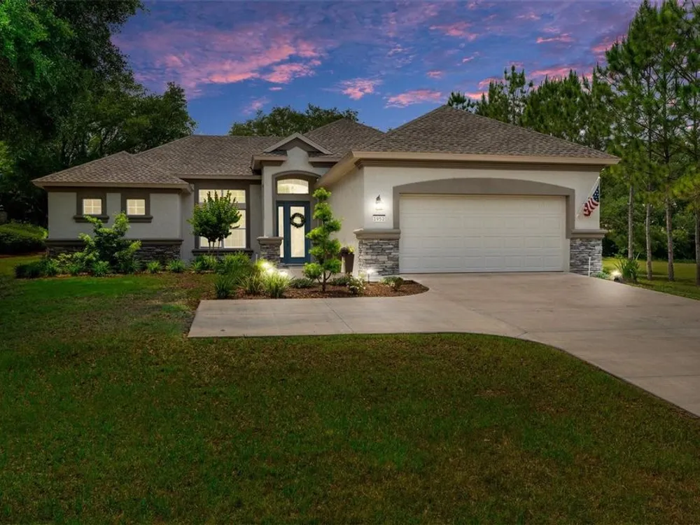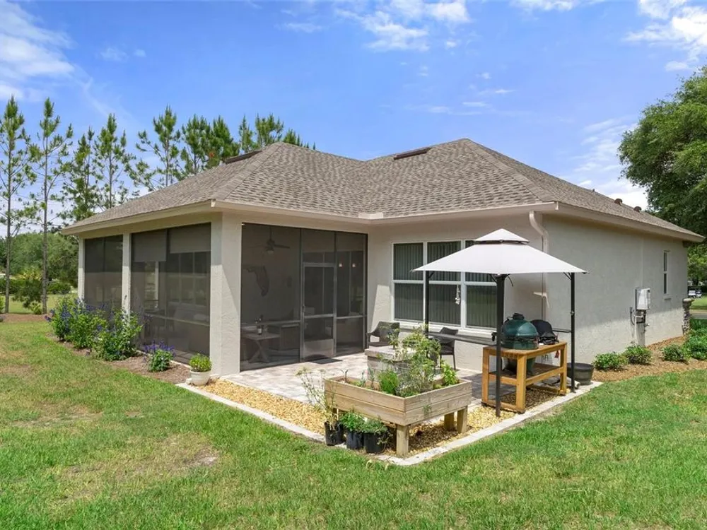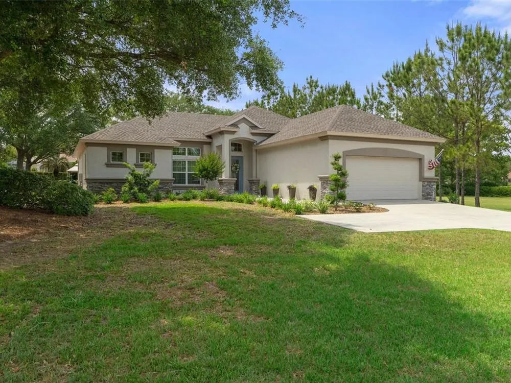 THE BEST OF BOTH WORLDS awaits in this beautifully upgraded 3-bedroom, 2-bath “Regina” model in Citrus Hills, complete with coveted membership to Citrus Hills Golf & Country Club. Ideally located just outside Terra Vista, this nearly new home offers easy access to all community amenities—without the premium of living inside Terra Vista. Designed to impress today’s discerning buyer, this home features luxury vinyl plank (LVP) flooring, crown moulding, granite countertops, subway tile backsplash, stainless steel appliances, a generous pantry, and upper cabinet crown toppers. The energy-efficient design is complemented by charming exterior stone accents and high-impact, thermal windows. Enter through a leaded glass front door into a light-filled open concept layout with current neutral tones—an inviting canvas ready for your personal touch. The split floor plan ensures privacy, placing the primary suite on one side and two additional bedrooms and a full bath on the other. The spacious laundry room includes a utility sink, storage, and space for a second fridge or freezer. (Note: the current laundry room fridge from 2024 will be moved to the kitchen and is included with the sale. Kitchen fridge does NOT convey, but is negotiable.) Enjoy Florida living in the landscaped backyard featuring a covered lanai, paver patio, and firepit—ideal for relaxing or entertaining. An added bonus: the backyard shed offering extra storage. Take in golf course views of the Meadows across the street, and reach the Pro Shop and Tiki Bar by golf cart. The Activity Center—with pool, pickleball, and more—is even closer. Located just 15 minutes from the Gulf, safe from storm surge, and perched 104 ft above sea level, this home requires no flood insurance. Enjoy peace of mind with its hurricane-ready construction, including an anchored roof, reinforced garage door, and impact-resistant features. Experience modern comfort, world-class amenities, and the unmatched charm of Citrus Hills living in Florida’s Nature Coast.