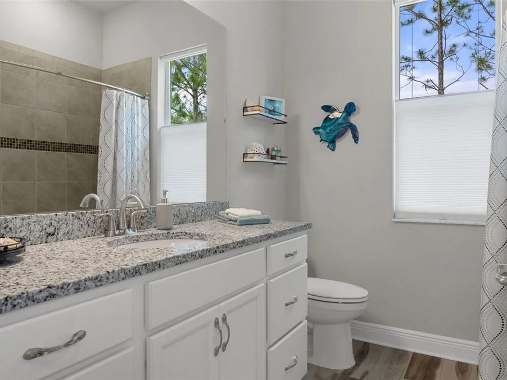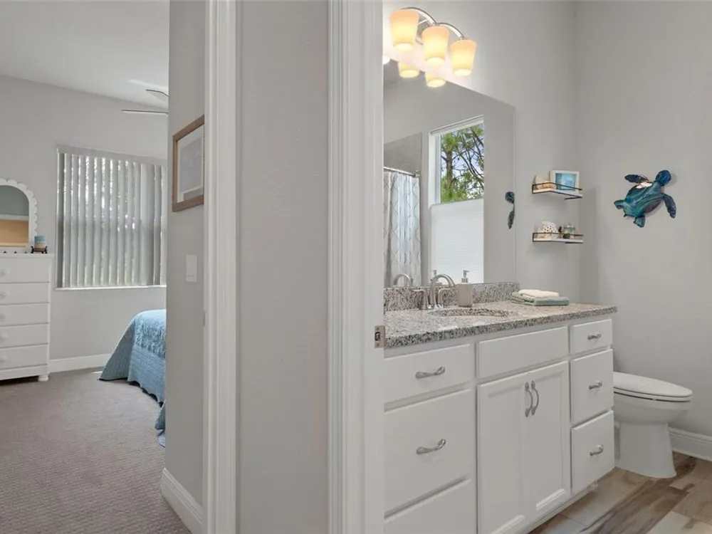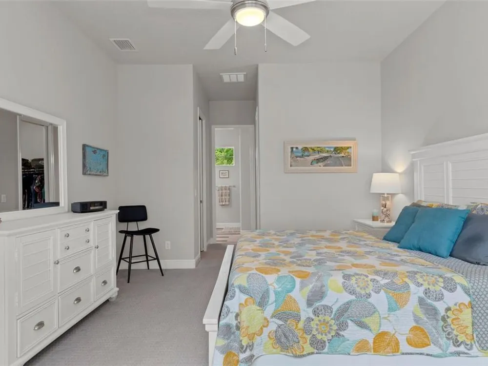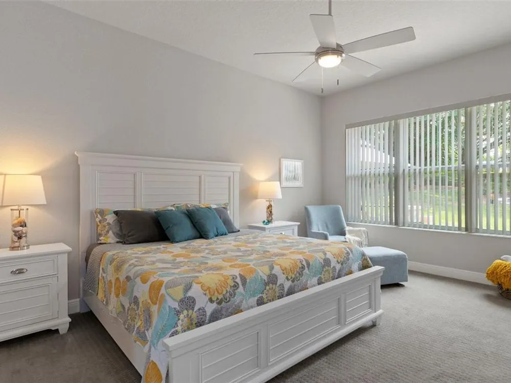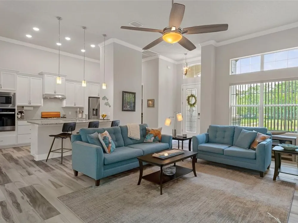 - Ceiling Fan(s), Crown Molding, High Ceilings, Living/Dining Room, Open Floorplan, Main Level Primary, Split Bedrooms, Stone Counters, Walk-In Closet(s), Window Treatments