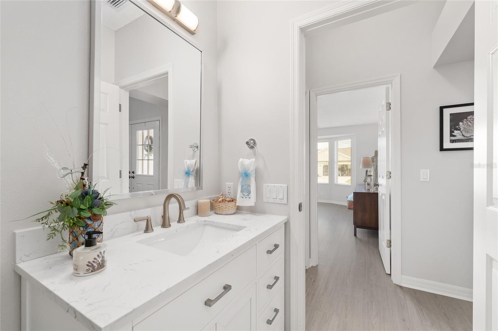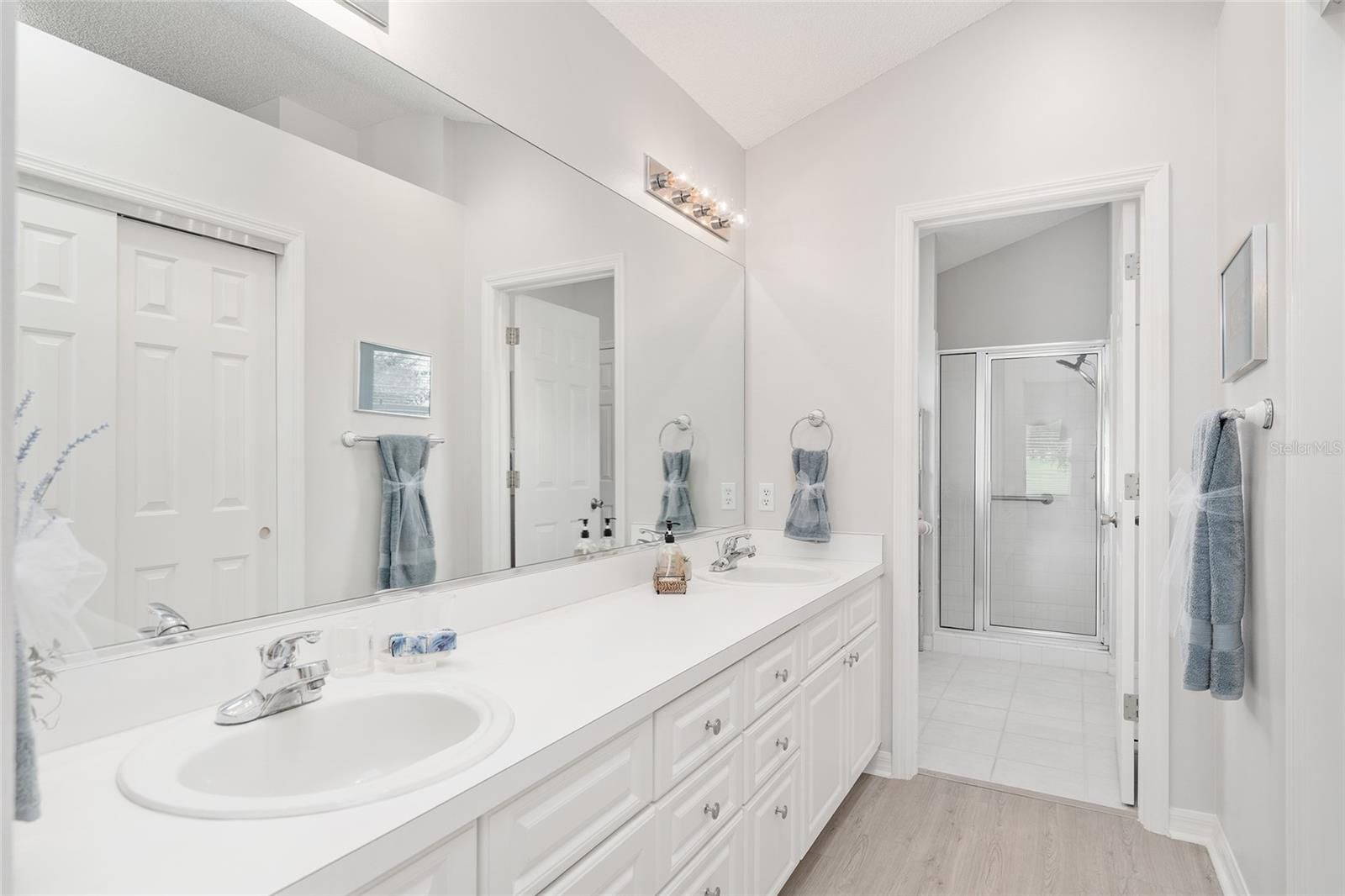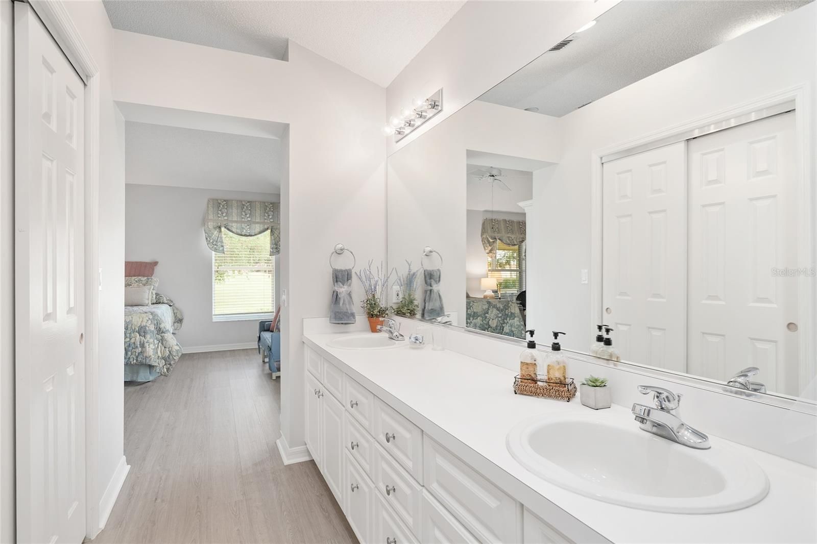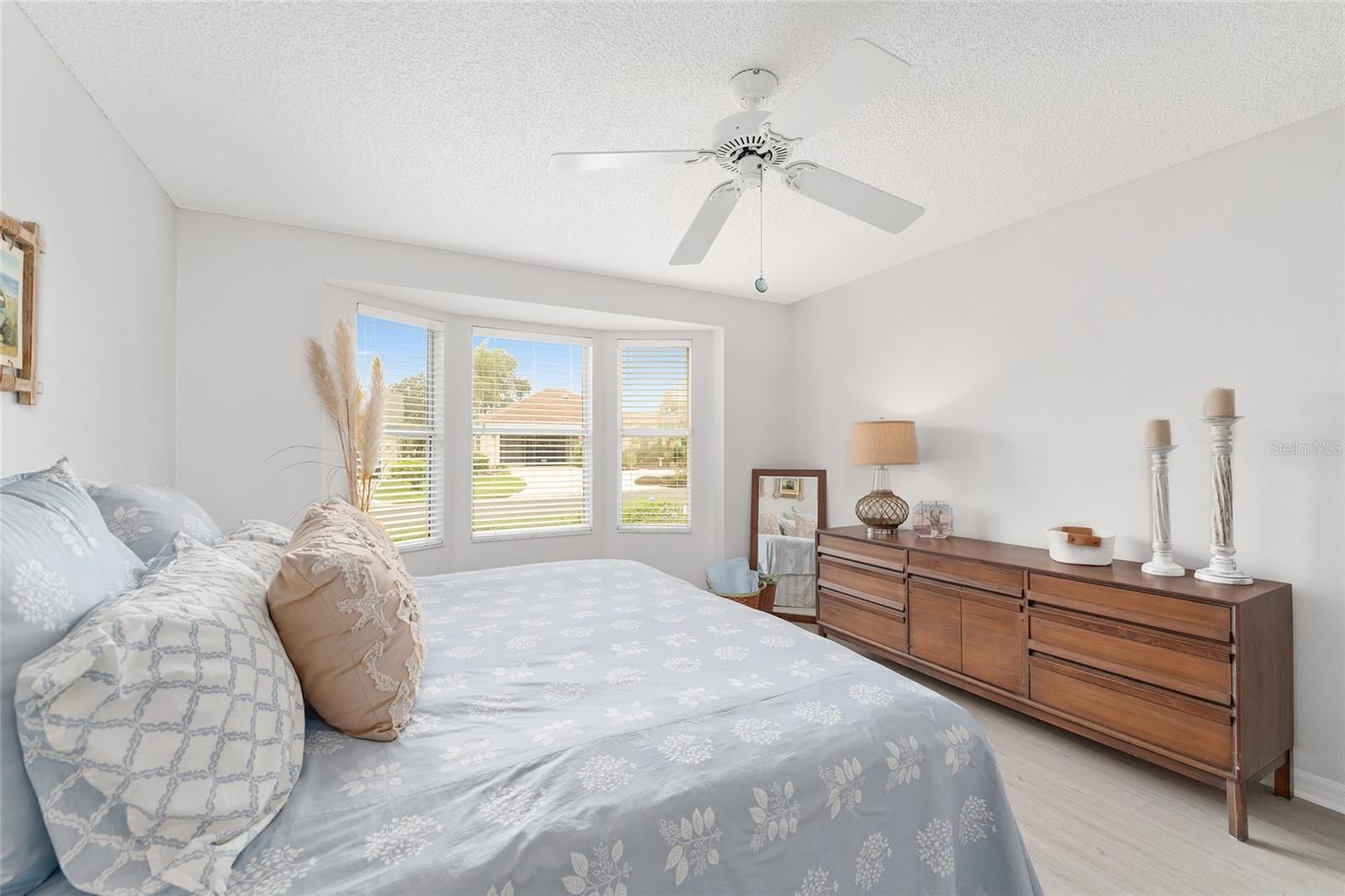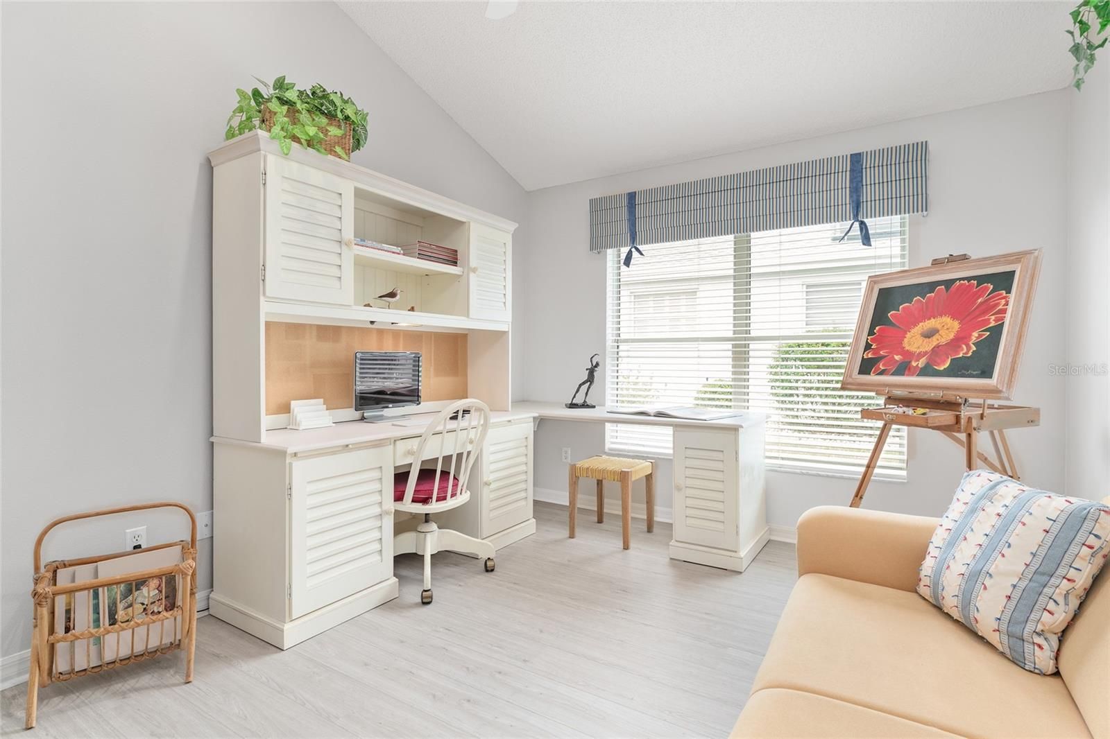 Stunning Golf Front Home on the ninth hole of Tierra Del Sol Championship Golf Course. As you arrive notice the covered front entry and double doors. Stepping inside, be prepared to be Wowed. High ceilings and lots of windows help create a bright and welcoming space. Newly painted walls and high-end luxury vinyl plank flooring add to the elegance. The large living room shares space with a bonus area currently being used as a home office/den. This area could easily be partitioned off as an additional separate room. The kitchen area is also bright and airy with white cabinets and tiled floor. The breakfast table is versatile with a great view. It's time to step into the sun room. The panoramic views of the golf course are exceptional. The open floor plan lends itself to entertaining. Whether you are relaxing, playing a game or mixing drinks, this space has it all. This area faces east offering morning sunshine and afternoon shade. It also includes a separate split system AC unit. Notice the outdoor paver patio area that helps capture the beautiful views of being outdoors. As we continue through the home visit the primary suite complete with walk-in closet, dual sinks and shower area. The guest suite is located in the front of the home providing maximum privacy. This area includes a generous closet and a full bath. Another feature of this home is the inside laundry with cabinet storage and utility sink. The location of the home can't be beat. The oversized corner lot has plenty of room for expansion, including a pool/birdcage, (see site plan). It is also a short stroll to the Tierra Del Sol Country Club offering fine dining or a fun lunch. Also, take advantage of all of that this area has to offer, which includes pools, tennis, pickleball, Recreation Centers and Town Squares. Please take a look at the pictures and professional video and then call to schedule a private showing. Bond is Paid