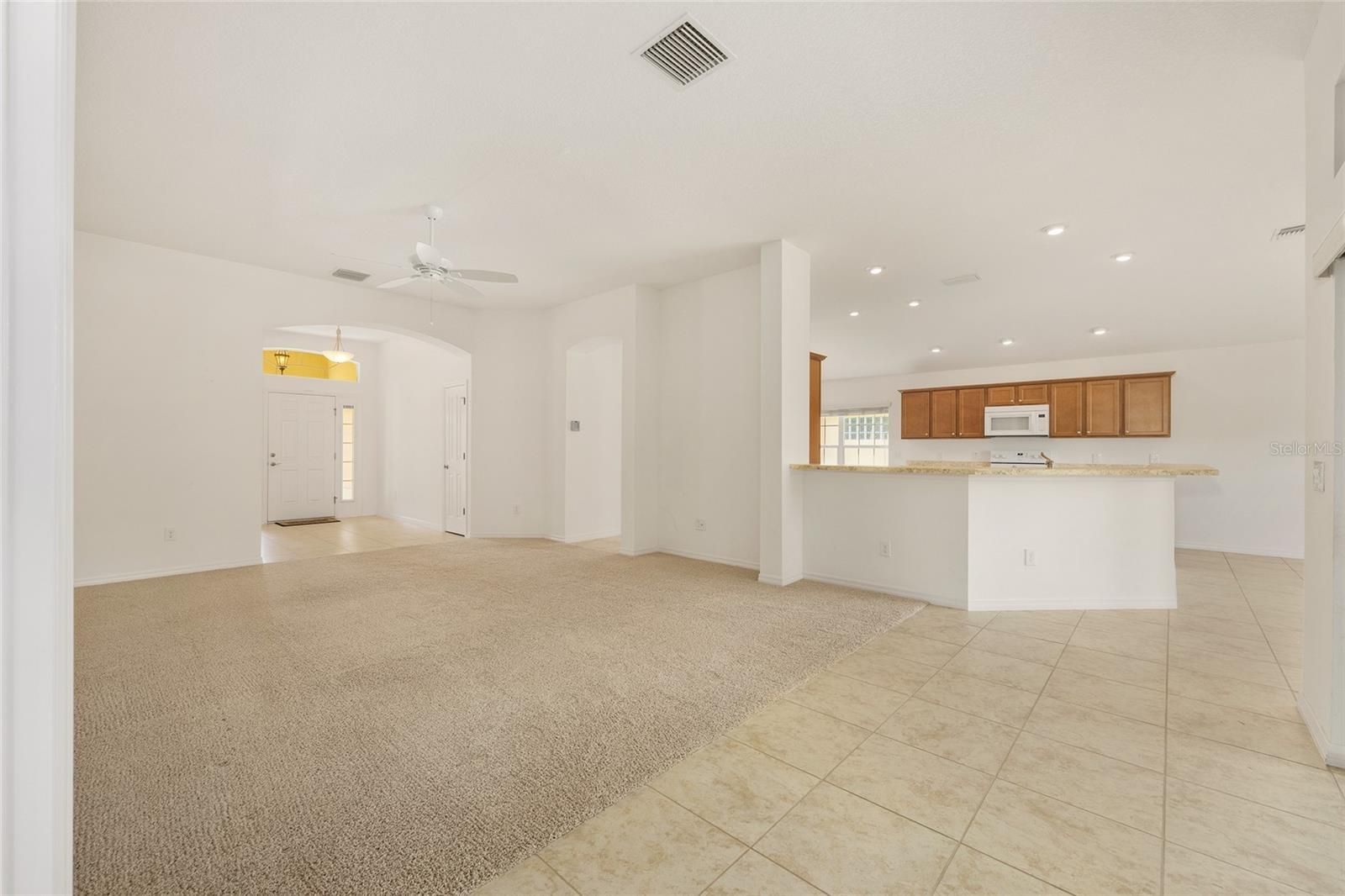 Village of Pinellas – Unique HOLLY DESIGNER MODEL!! – HVAC 2023 - Home Built in 2013 – The Holly Floor Plan flows so nicely with a Pocket Door from the Foyer for your Guest Wing!! – Rock mulch in Landscape Beds, Gutters & Downspouts, Garage with Keyless Entry and Covered Front Porch – Foyer Entry with Tile Flooring, Arched Window over Front Door with 2-Side Lites (with internal blinds), Coat Closet & Pocket Door to Guest Wing – Living Room with Slider Glass Doors to Covered-Screened Rear Lanai – Kitchen with Stationary Center Island (with Breakfast Bar), Double-Door Pantry, Cabinets with Crown Molding, Pull-out Shelving, Pot Drawers, Pull-Out Trash Bin, Peninsula with Over-hang, Stainless Sink & Garbage Disposal. Whirlpool Appliances. – Dinette/Breakfast Nook area with Built-in Buffet/Workstation – Dining Room with 3 Windows to Back Yard and 1 Window to Screened Lanai – Primary Bedroom with Tray Ceiling, Ceiling Fan, 2 Walk-in Closets & En Suite Bath. Primary Bath with “L-Shaped” Vanity, 2 Sinks, Private Privy and Walk-in Tiled Shower with Listello Accent – Guest Wing with Linen Closet, Bath 2 with Tile & Tub/Shower Combo, Bedroom 2 with Walk-in Closet, Tray Ceiling & Ceiling Fan. Bedroom 3 with Vaulted Ceiling & Ceiling Fan – 2-Car Garage with Window and Pull-down Attic Stairs - *** This DESIGNER GEM is in a GREAT LOCATION, close to 466A with plenty of Shopping, Restaurants, Eisenhower Regional Rec Center, Brownwood Paddock Square®, Lake Sumter Landing Market Square®, Evans Prairie Championship Course & Country Club. ** Please make sure to watch our Walk-through Video Tour!!
