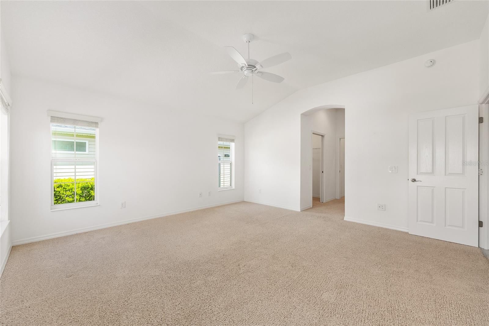 - Built-in Features, Ceiling Fan(s), Eat-in Kitchen, High Ceilings, Open Floorplan, Main Level Primary, Thermostat, Tray Ceiling(s), Vaulted Ceiling(s), Walk-In Closet(s)