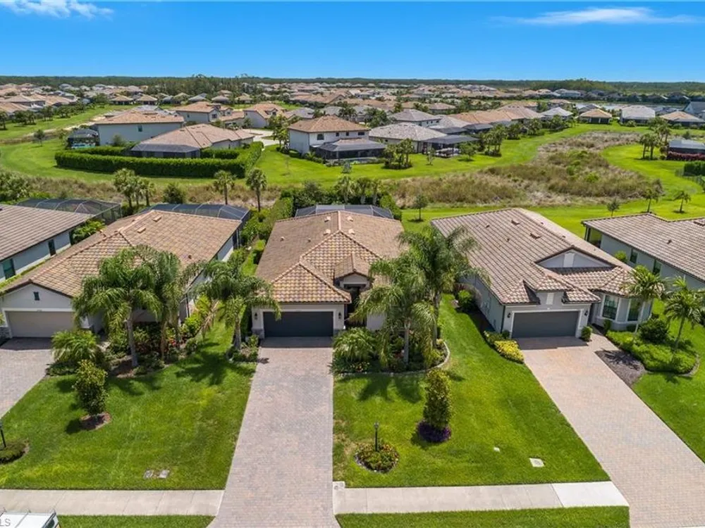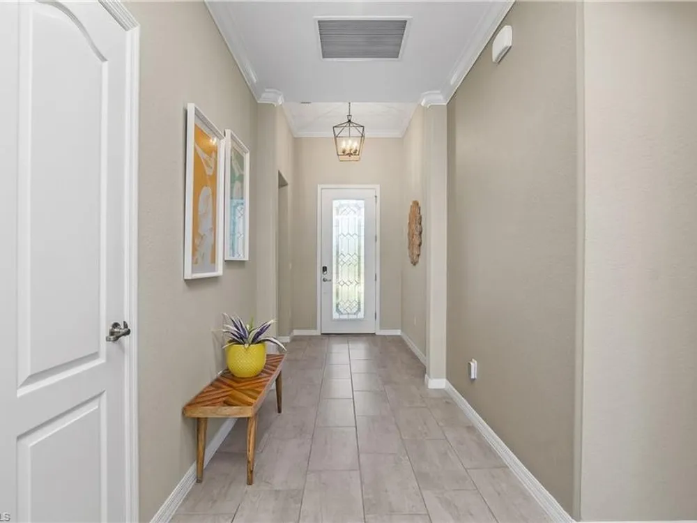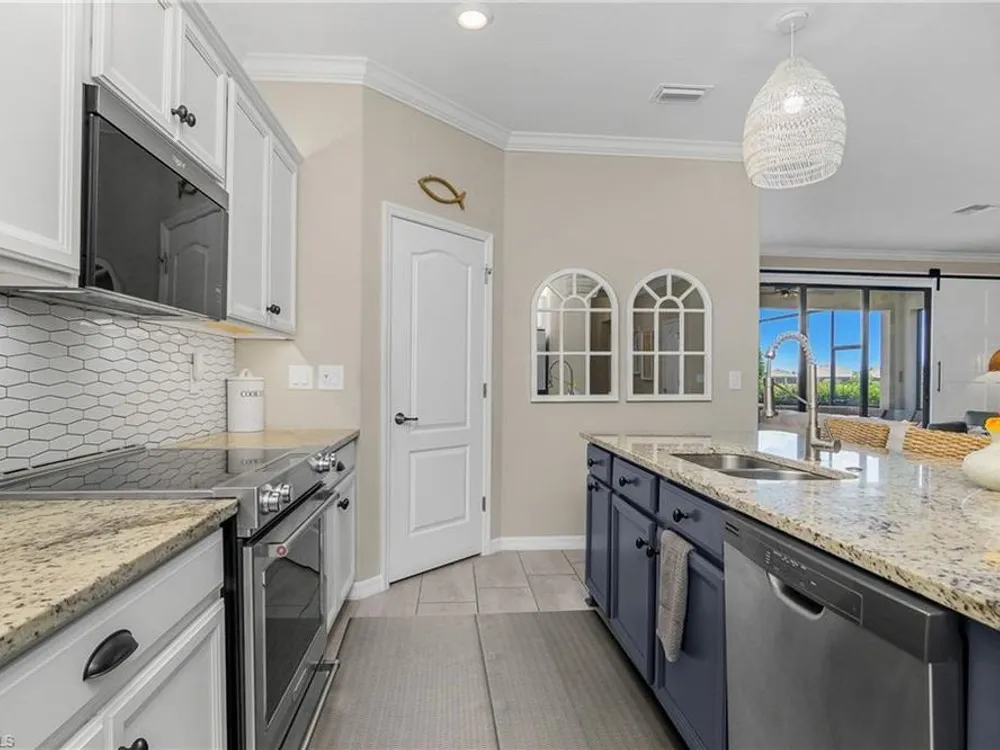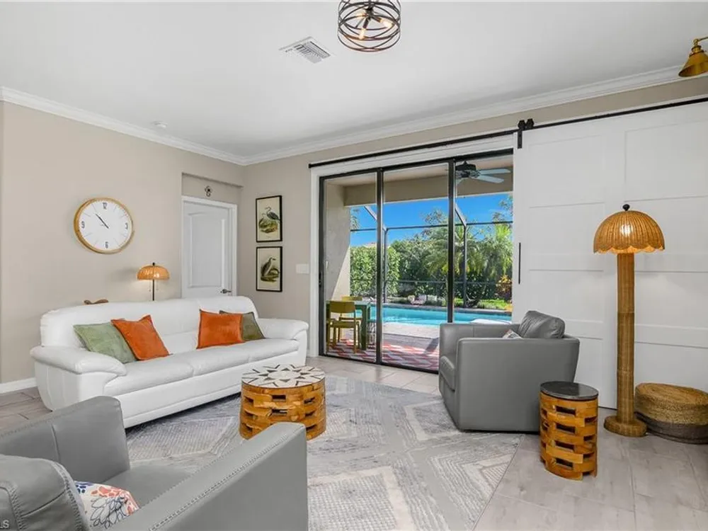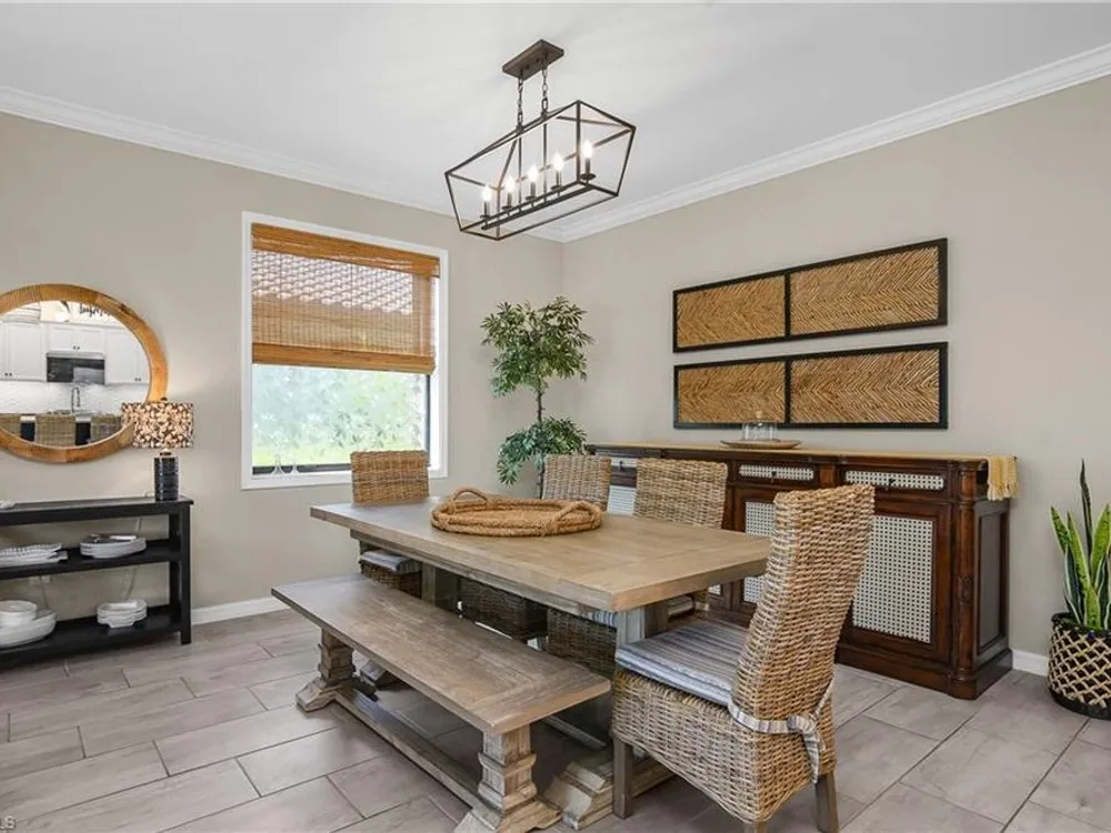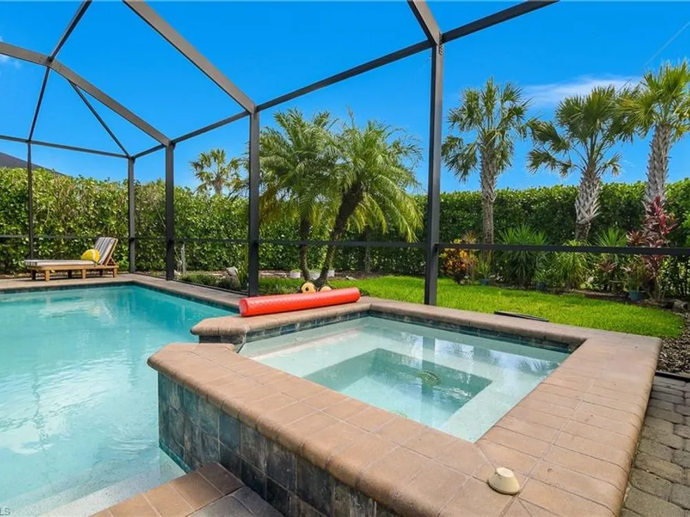 Step into refined comfort with this meticulously designed and fully furnished 4-bedroom, 3-bathroom residence located in one of Southwest Florida’s most sought-after gated communities. The open-concept living area features a custom-built entertainment center with floating shelves, tile throughout with no carpet, and crown molding that add architectural interest. The kitchen is both stylish and functional, showcasing tile backsplash, upgraded stainless steel appliances, over-cabinet and under-cabinet lighting, and a large island that provides ample prep and seating space. The primary suite offers a peaceful escape with a custom shiplap accent wall and a luxurious ensuite bath complete with a frameless glass rain shower, dual sinks, and designer finishes. Secondary bedrooms are generously sized, and all three full bathrooms have been upgraded with modern vanities and tilework. Outdoors, enjoy a private oasis within the screened lanai, where a heated pool and spa are surrounded by lush tropical landscaping. The covered patio provides the perfect space for shaded relaxation or outdoor dining. Additional upgrades include accordion hurricane shutters for added storm protection, a UV light system installed in the AC for enhanced air quality, and a full suite of stylish furnishings, making this home truly move-in ready. As a resident of The Place at Corkscrew, you'll enjoy access to a remarkable array of amenities that cater to your every need. Dive into the resort-style pool featuring a thrilling 100' waterslide, relax in the expansive spa, or let the kids splash around in the dedicated splash pad. Socialize around the firepit or enjoy delicious meals at the Barefoot Bar & Grill, the Bourbon Bar, or the poolside martini bar. For those who prioritize fitness, the fitness center is equipped with exercise equipment and a movement studio, along with a variety of sports courts, including tennis, pickleball, and basketball. Enjoy the sugar-sand volleyball court, let the kids play at the playground, or take your furry friend to the dog park.
