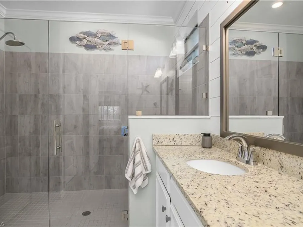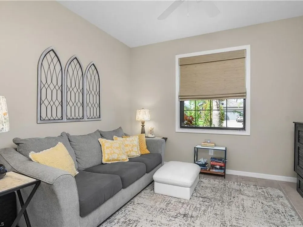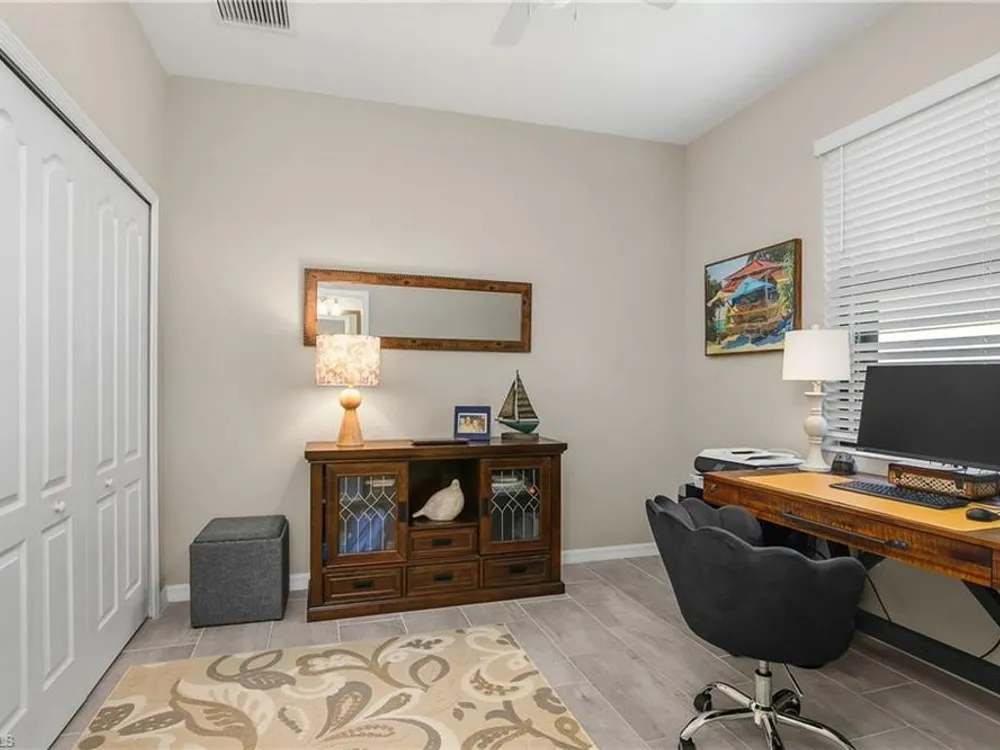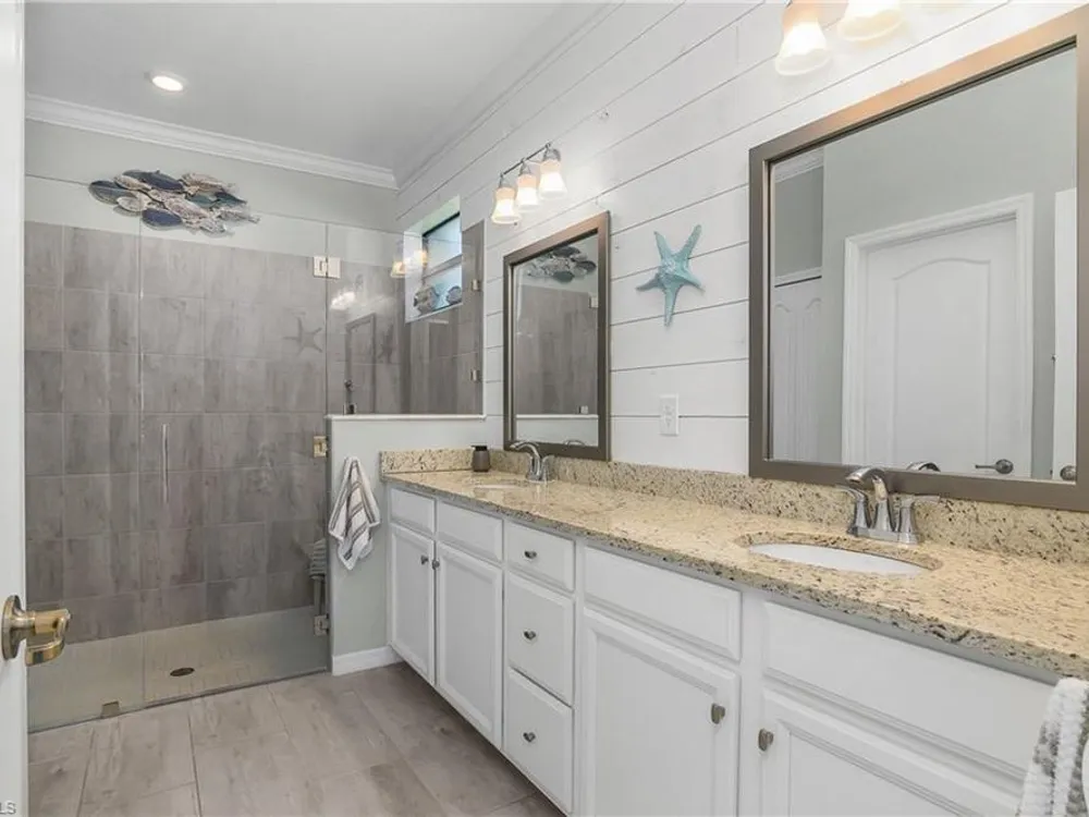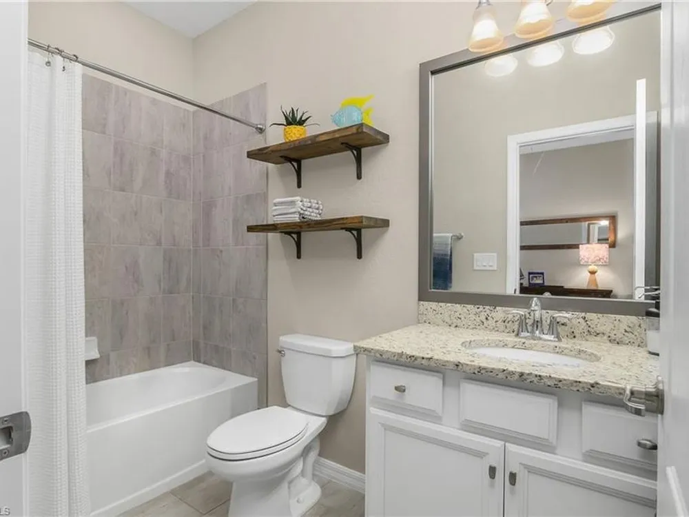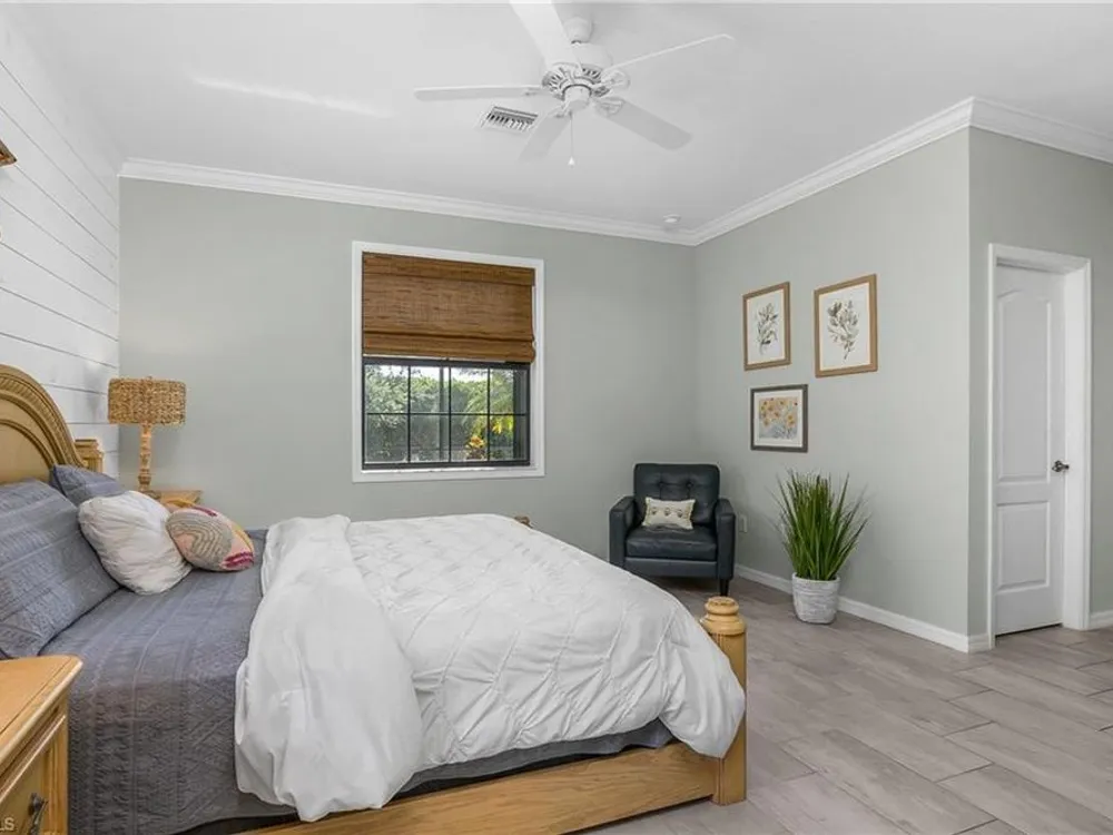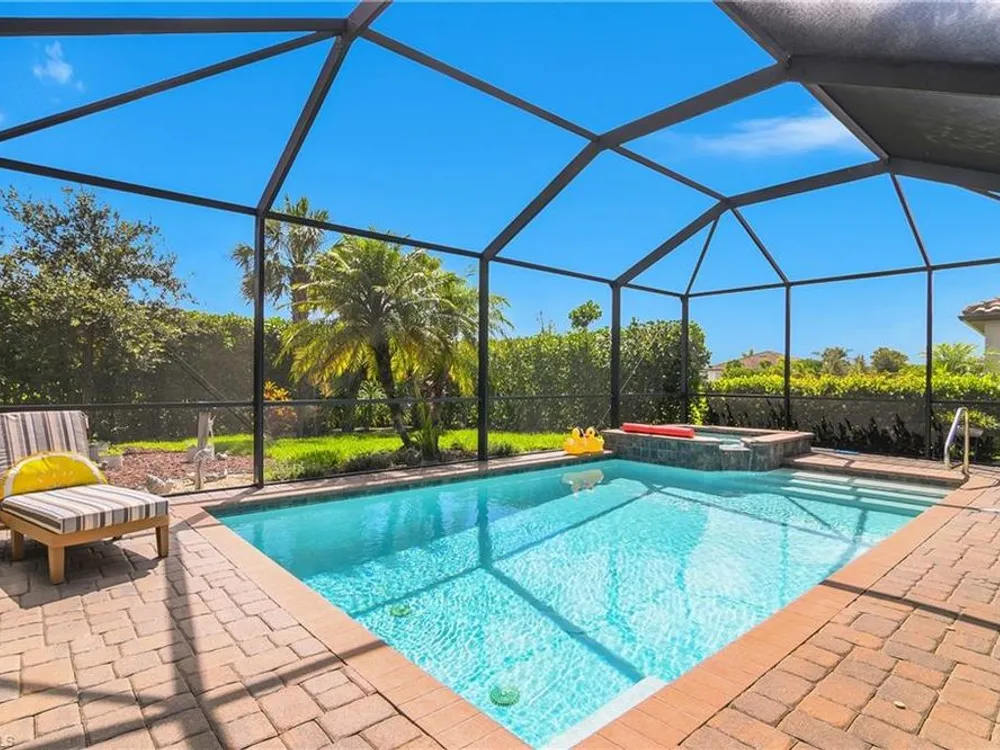 Step into refined comfort with this meticulously designed and fully furnished 4-bedroom, 3-bathroom residence located in one of Southwest Florida’s most sought-after gated communities. The open-concept living area features a custom-built entertainment center with floating shelves, tile throughout with no carpet, and crown molding that add architectural interest. The kitchen is both stylish and functional, showcasing tile backsplash, upgraded stainless steel appliances, over-cabinet and under-cabinet lighting, and a large island that provides ample prep and seating space. The primary suite offers a peaceful escape with a custom shiplap accent wall and a luxurious ensuite bath complete with a frameless glass rain shower, dual sinks, and designer finishes. Secondary bedrooms are generously sized, and all three full bathrooms have been upgraded with modern vanities and tilework. Outdoors, enjoy a private oasis within the screened lanai, where a heated pool and spa are surrounded by lush tropical landscaping. The covered patio provides the perfect space for shaded relaxation or outdoor dining. Additional upgrades include accordion hurricane shutters for added storm protection, a UV light system installed in the AC for enhanced air quality, and a full suite of stylish furnishings, making this home truly move-in ready. As a resident of The Place at Corkscrew, you'll enjoy access to a remarkable array of amenities that cater to your every need. Dive into the resort-style pool featuring a thrilling 100' waterslide, relax in the expansive spa, or let the kids splash around in the dedicated splash pad. Socialize around the firepit or enjoy delicious meals at the Barefoot Bar & Grill, the Bourbon Bar, or the poolside martini bar. For those who prioritize fitness, the fitness center is equipped with exercise equipment and a movement studio, along with a variety of sports courts, including tennis, pickleball, and basketball. Enjoy the sugar-sand volleyball court, let the kids play at the playground, or take your furry friend to the dog park.