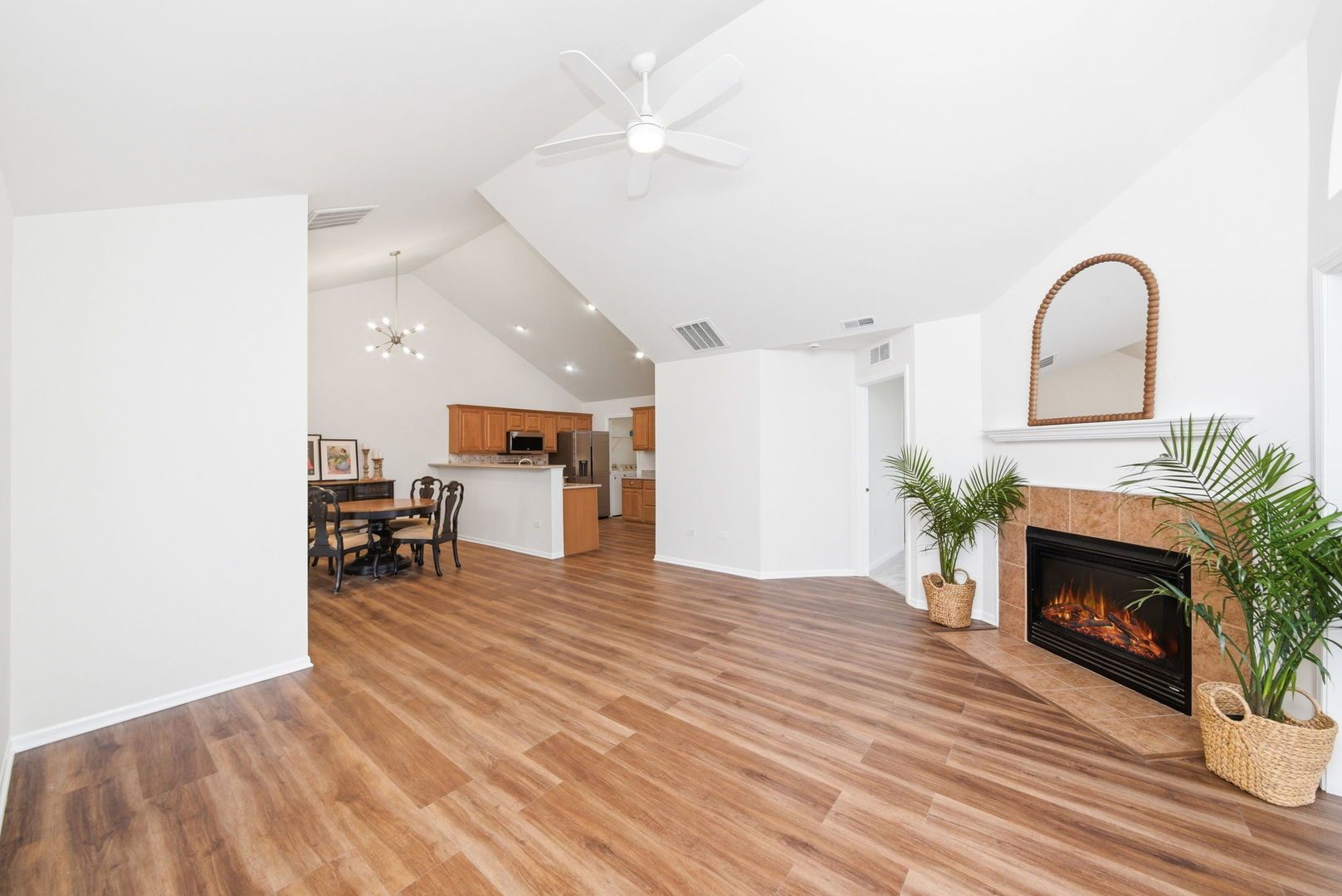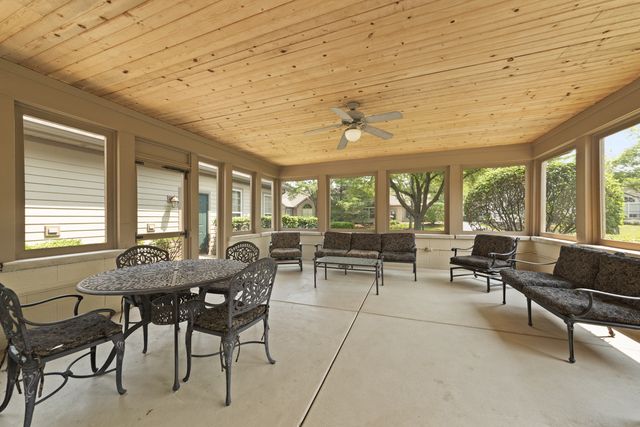 Welcome to 1959 Timberview Dr., Joliet-an absolutely stunning ranch-style villa in Timbers Edge Villas, one of West Joliet's most sought-after communities. Perfectly positioned at the very end of the street, this home offers the BEST LOCATION in the subdivision with no through traffic and one of the most private, peaceful settings available. Designed with both comfort and flexibility in mind, the layout features TWO master suites-ideal for related living or accommodating guests with ease. Step inside and you'll immediately feel the impact of the extensive professional remodeling that has elevated this home into a true magazine-style showpiece. If you've been searching for a home where everything is already done for you-this is it. The seller spared no expense, with both the home and garage freshly and professionally painted, new luxury vinyl flooring throughout the main living areas, and brand-new carpet in the bedrooms. Both bathrooms have been beautifully updated with new toilets, vanities, light fixtures, and refreshed shower details. The maple kitchen is as functional as it is beautiful, featuring abundant cabinetry, granite countertops, a new dining light fixture, a new kitchen faucet, and a full suite of brand-new stainless steel appliances including stove, refrigerator, microwave, and dishwasher. The welcoming 25x25 living room impresses with its vaulted ceiling and a cozy gas fireplace. The expansive DREAM SUNROOM-wrapped in windows-offers a peaceful retreat where you can unwind and take in views of nature, from deer passing by to birds in the distance. Step outside to your private patio, perfect for morning coffee or relaxing evenings. Timbers Edge Villas is a rare, all-ages, maintenance-free community of 114 ranch-style villas, offering resort-style amenities including a private pool, fitness center, clubhouse with billiards, and beautifully landscaped grounds with scenic ponds. The roof was replaced in 2023. STELLAR LOCATION: Ideally located just minutes from I-80, I-55, Route 30, Louis Joliet Mall, and multiple grocery stores, this home delivers the perfect blend of tranquility, convenience, and effortless living.