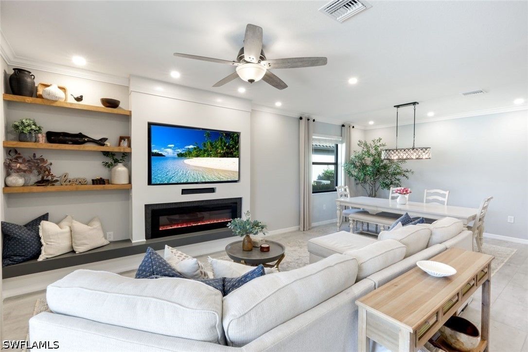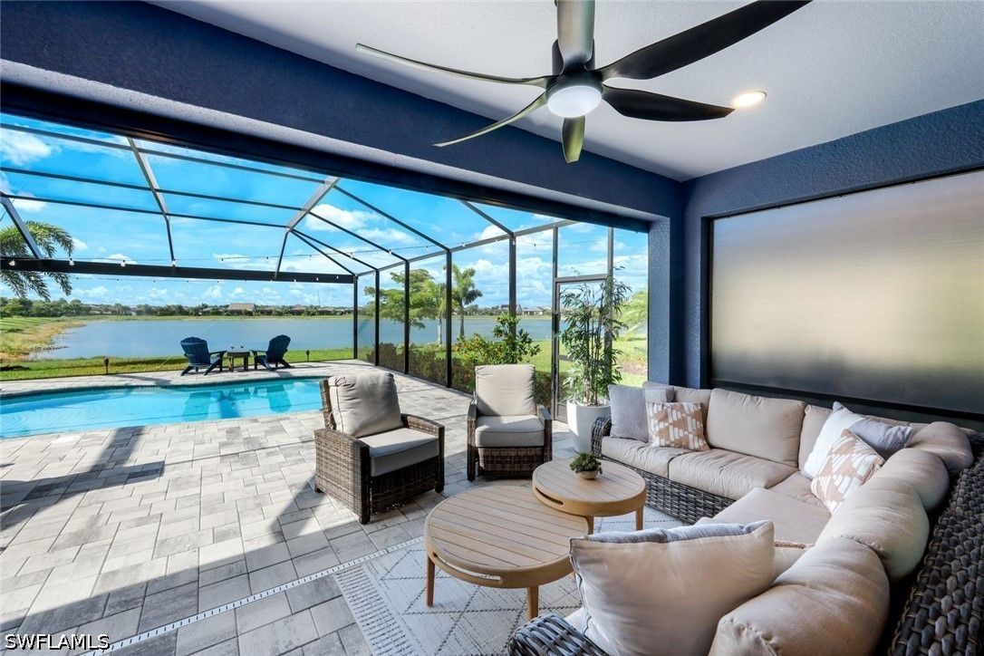 Resort Style living at The Place at Corkscrew is the place to be! This beautifully upgraded 4-bedroom, 3-bath residence offers the perfect blend of luxury, comfort, and Florida lifestyle living. Step inside to an open-concept floor plan designed for both everyday living and entertaining, featuring a spacious living area enhanced by a custom-built fireplace and elegant built-in shelving. The home is thoughtfully upgraded throughout, including custom closets for optimal organization and professionally sealed flooring for a polished, move-in-ready finish. The kitchen and main living spaces flow seamlessly to the outdoor retreat, where you’ll find your own private oasis. Enjoy the extended lanai complete with a custom kidney-shaped pool and spa, perfect for relaxing or hosting guests. A picture window screen enclosure frames the stunning lake view, creating a serene and unobstructed backdrop. The outdoor space is elevated even further with a custom mini bar featuring cabinetry and a mini refrigerator—ideal for entertaining Florida-style. Additional highlights include a mini-split air conditioning system in the garage, adding comfort and versatility to the space, as well as upgraded cabinetry in the laundry room for added functionality. Located in the highly sought-after community of The Place at Corkscrew, residents enjoy world-class amenities and a vibrant lifestyle in the heart of Estero. This is more than a home—it’s a lifestyle. Schedule your private showing today!