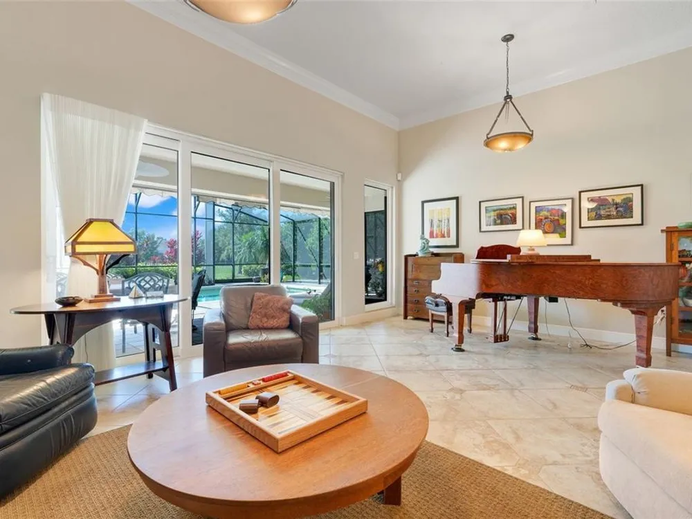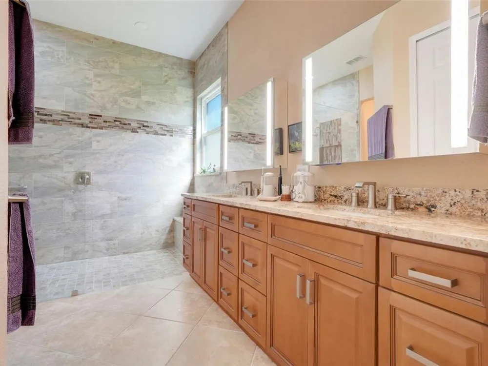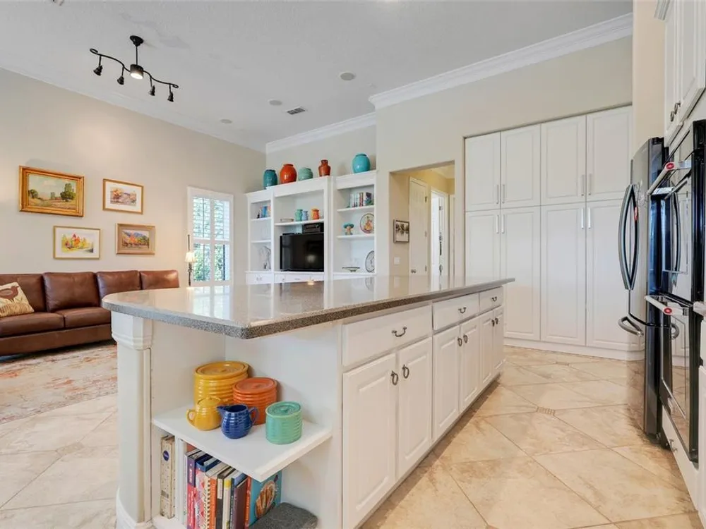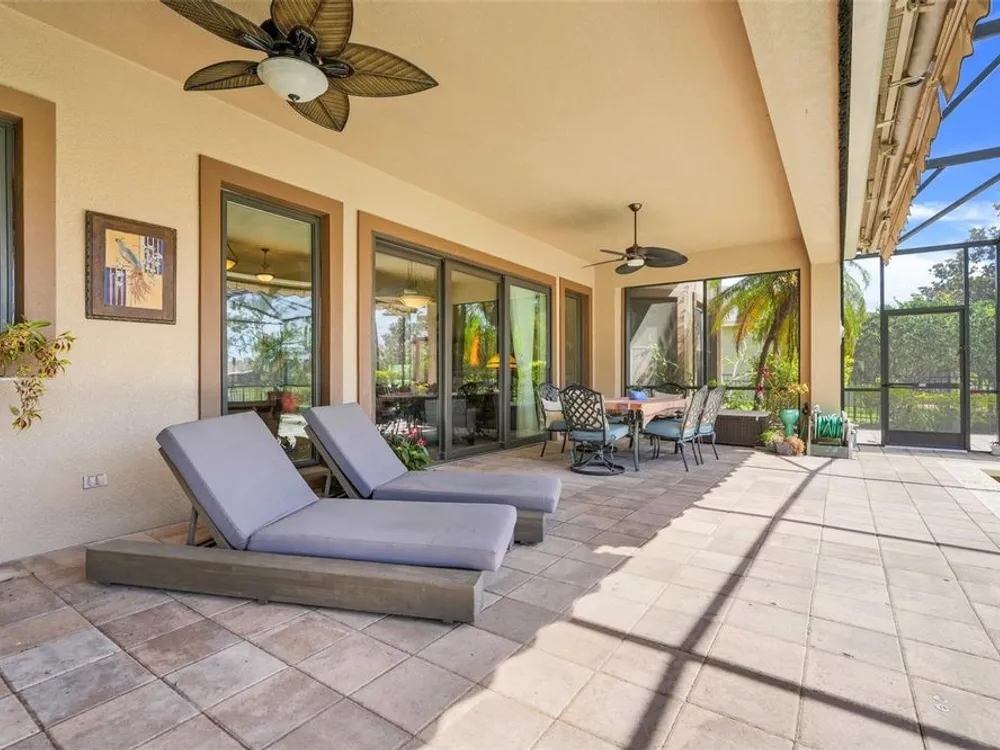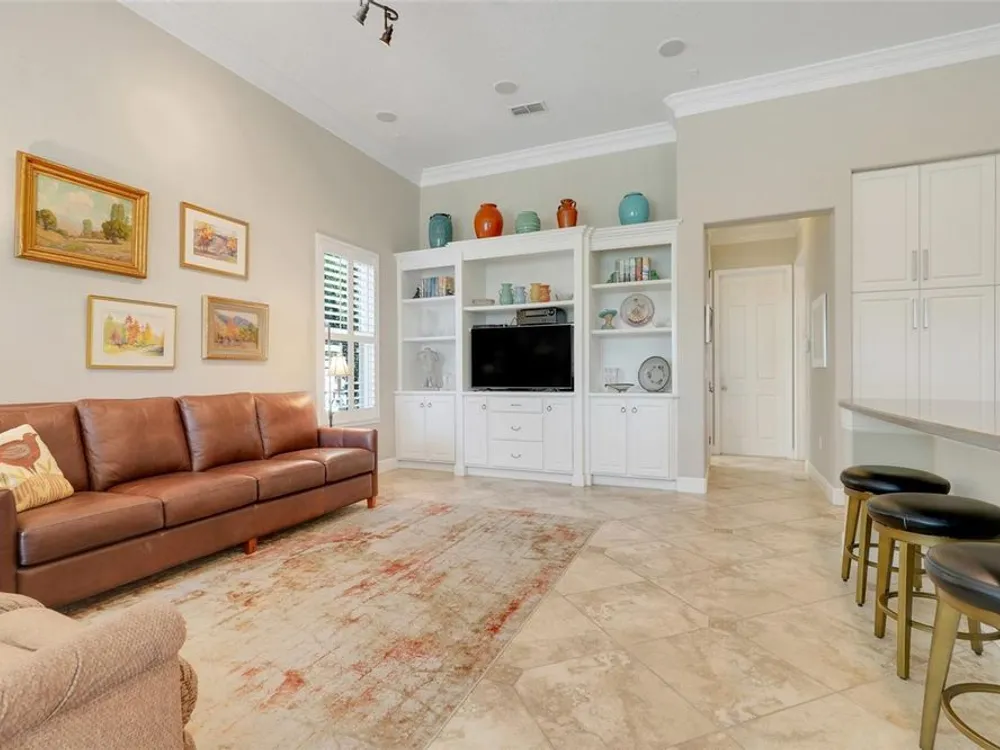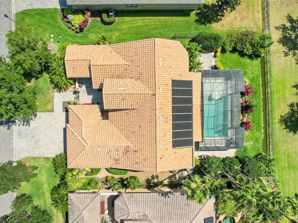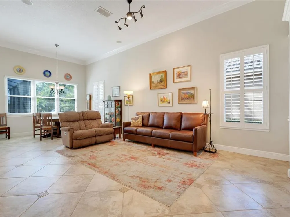 Fabulous Biscayne model with a Large Pool on the Golf Course in the Lago Vista subdivision of Solivita. The Home is located within walking distance to the Village Town Center on one of the few brick paver streets in Solivita. As the former model home for AV Homes, this home has so many upgrades including a Front Entryway that includes a Courtyard with automatic plant watering system, French Leaded Glass Insert Front Doors and a 7.5’ x 6’ Custom Tile Medallion in the Foyer. Upon entering the Home, there is 20 Inch Tile laid on the diagonal in all main living areas, Owner’s Suite & 2nd Bedroom Suite with Bamboo in the Third Bedroom. Eight Foot doors, Rounded corners and & 5 ¼ inch Baseboards throughout. Upgraded Crown Molding in the Living, Dining & Family Rooms, Kitchen, Hallways & Foyer. Gourmet Kitchen features a Double Oven, Cooktop, 42 Inch Upper Cabinets with Crown Molding and Under Mount lights, Pull-out Drawers in the lower Cabinets, Corian Countertop and Backsplash, a Large Island, Recessed Lights and a Pantry with Custom pull out Drawers. The Breakfast Room adjoins the kitchen. The purchase includes all Kitchen Aid appliances. The Family Room has Plantation Shutters, a single Door leading to the Lanai with built-in Blinds. There is a built-in Entertainment Center with Surround Sound. The Owner's Suite has a Bay Window, Tray Ceiling, Large Walk in Closet with custom built-in shelves. The Owner's Bathroom has Dual Vanities and Large Walk in Shower. The second bedroom has a Sitting Area with French Doors that open to the Front Courtyard, so it has its own Private Entrance. It also has its own Ensuite Bathroom with raised Vanity and Tub/Shower. The Third Bedroom is being used as an Office with a Murphy Bed; its bathroom has a Pocket Door leading to the 3rd Full Bathroom. The Center Piece of this home is the Large Screened Enclosed Solar Heated Pool with Walk out Entry and in Pool Beverage Table. The Pool also has automatic pop-up cleaners to make pool maintenance care-free. Enjoy the Peaceful and Private Covered Lanai that facing East, Overlooking the First Hole of the Stonegate Cypress Golf Course. The entire Lanai Screen Enclosure was new in 2013, including Brick Pavers with plenty of space to relax under the covered portion of the Lanai. The Lanai has a Remote- Controlled Sunesta Motorized Retractable Awning and a Remote-Controlled Solar Shade. There are Pavered Open Patios on either side of the lanai & pool for BBQ and Sun-Bathing. The Back Yard is Fenced with a Astro Turf Dog Track along the back fence line. The Laundry Room includes a Wash Basin, Built-in Cabinets and Ironing Board. 2 Car Garage plus Golf Cart Addition includes Overhead Storage Racks & a Built-in workbench and the floor is painted with Epoxy and Confetti Chips. HVAC with a healthy climate filter was new in 2017. Front doors and slider leading to the lanai and all windows were new in 2013. This is the Top-of-the-Line Luxury Home in Solivita and its Ready to be yours! Call the listing agent for a private tour!