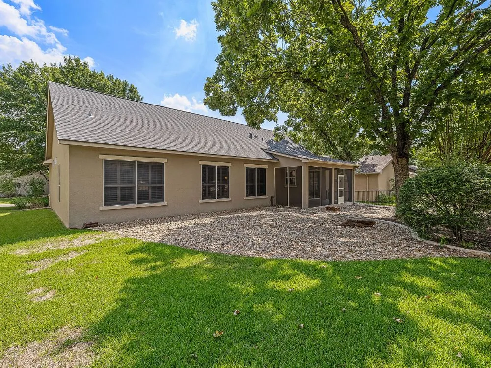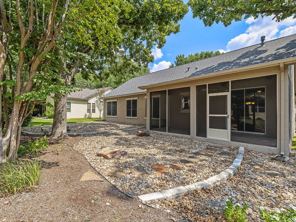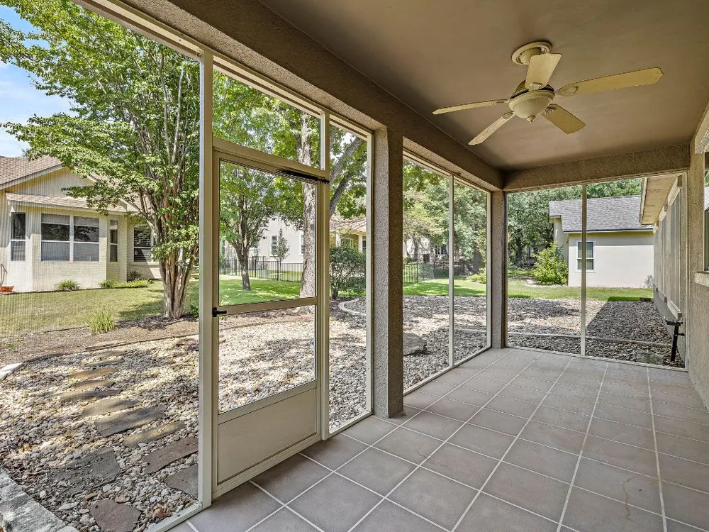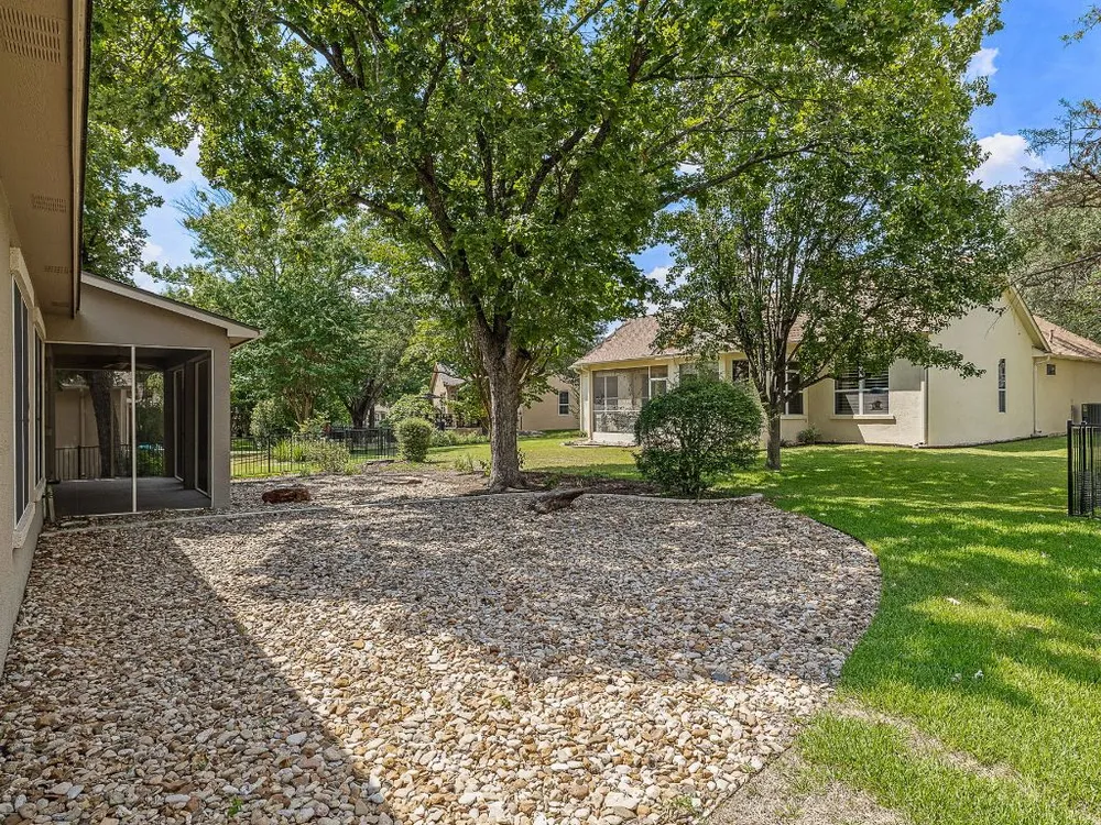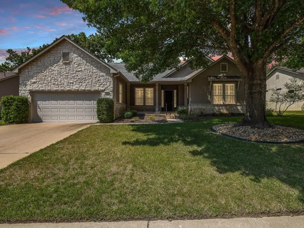 Welcome to this 3-bedroom, 2-bath San Gabriel model in the highly desirable Sun City community of Georgetown. This single-story home offers 2,046 sq ft of thoughtfully designed living space with high ceilings, plantation shutters, and abundant natural light. The flexible layout includes two living areas and two dining spaces. The kitchen features custom cabinetry, granite countertops, stainless steel appliances, and a large island, opening seamlessly to the casual living room with fireplace. The spacious primary suite offers dual vanities, soaking tub, walk-in shower, and oversized closet. Additional highlights include a large laundry room with built-in storage, a screened back porch with ceiling fan, and a welcoming front porch overlooking the greenbelt. The garage provides ample space plus room for a golf cart. Enjoy all that Sun City has to offer, including golf, swimming, fitness centers, walking trails, and more—all just minutes from shopping, dining, and historic downtown Georgetown.