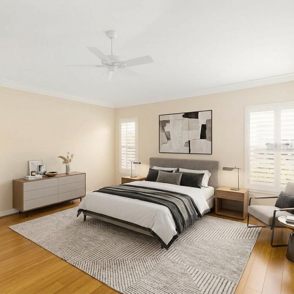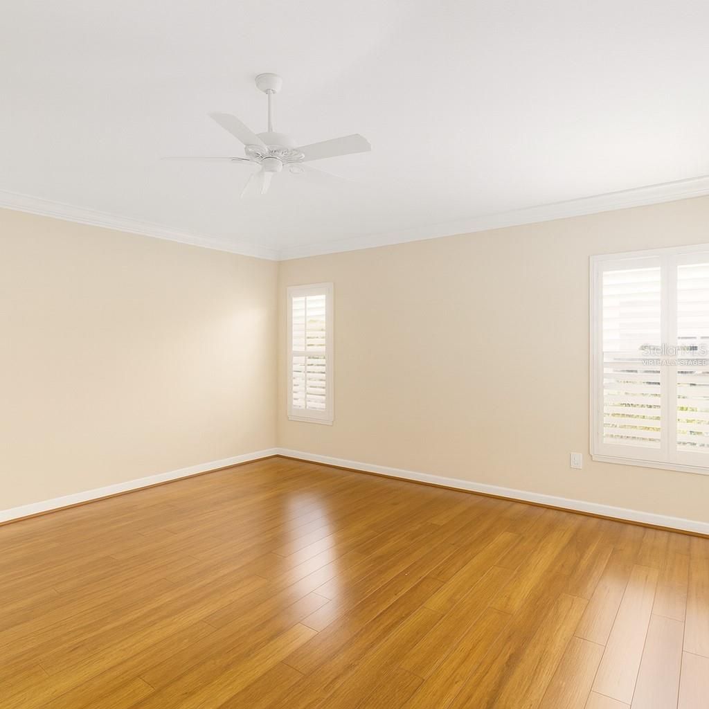 - Ceiling Fan(s), Crown Molding, Eat-in Kitchen, High Ceilings, Living/Dining Room, Open Floorplan, Solid Surface Counters, Thermostat, Vaulted Ceiling(s), Walk-In Closet(s)