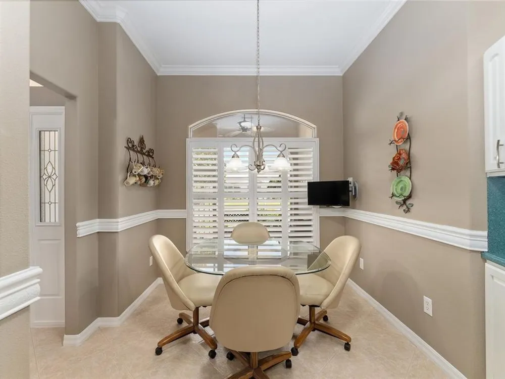 - Ceiling Fan(s), Crown Molding, Eat-in Kitchen, High Ceilings, Living/Dining Room, Thermostat